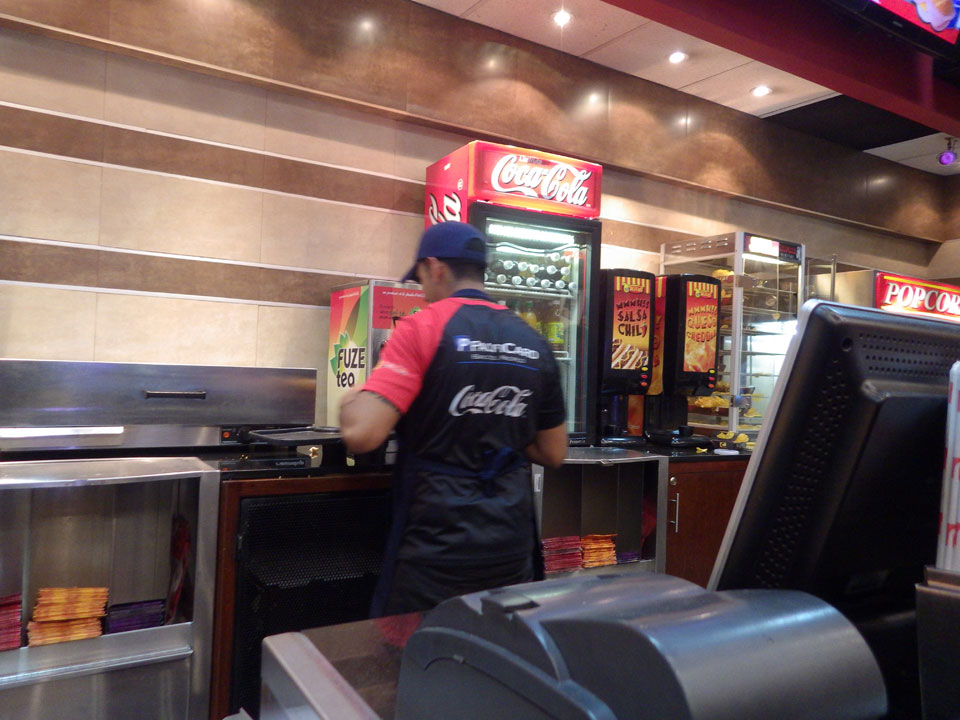 Guter Dinge ging der Tag weiter. Abends vor Sonnenuntergang ein Abstecher in’s Juan Valdez Café. Weiter plaudern und der Plan, später in’s Kino zu gehen. Ich hatte erst Noah im Visier aber nach desaströsen reviews auf IMDB entschloss ich mich für Captain America. Der Film sollte zwar dumm ein und ging erst 21:40 los.