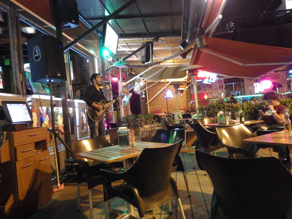 Ich musste mal raus und so gingen wir zum Plaza Foch. Ein Batido de Maracuja für mich, ’nen Kakao für sie bei Live Music nach 22:00.