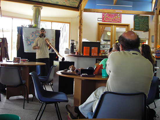 Der Fahrer und Guide war ein Spaßvogel. Der erste Stopp war ein Aboriginal Cultural Center. Man bekommt da etwas Bitterkeit der Ureinwohner ab. Zum Ausgleich gab es Kekse und Café. Bissel heißes Wasser hatte ich noch auf der Hand, Müdigkeit. Nett war dagegen ein wenig Didgeridoo Musik. Der Typ hatte auch gleich die passende CD zum Erwerb bereit. Man wurde natürlich auch gern durch den Souvenir-Shop gelotst. Zum Glück reizen mich solche Sachen gar nicht. Eine Didge-CD aus deren Sammlung wäre für den morgigen Trip sicher ganz gut gewesen aber ich war erst mal zu geizig.