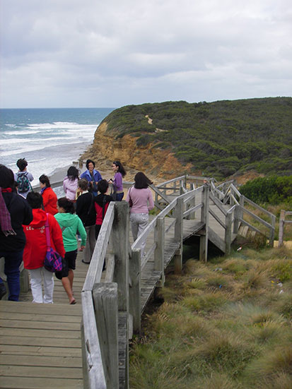 Zunächst mussten noch ein paar Leute eingesackt werden. Eine besonders große Gruppe bestand aus wohl 8 thailändischen Frauen, die ein junges Mädel zum Abschluss ihres Studiums in Melbourne besuchte. Der kleine Bus war bis auf den letzten Platz besetzt. Ca. 20 Leute also on the road.