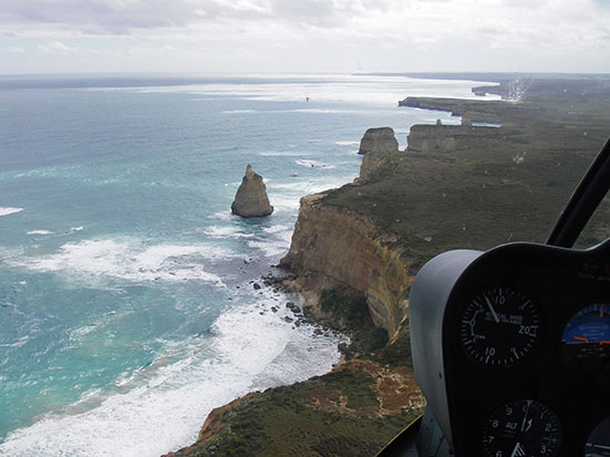 Diese Steinformationen im Meer sind auf vielen Postkarten zu finden. Ich entschloss mich zu einem Helicopter Flug. Noch nie im Hubschrauber gewesen und dann hier, warum also nicht? Noch 4 andere wollten auch. Für AU$50 sollte es einen 7 Minuten Flug geben. Nicht gerade spottbillig aber dafür gut.