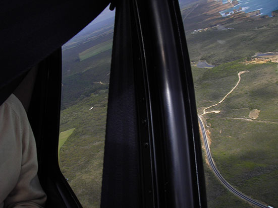 Die restliche Gruppe stieg schon mal auf den Aussichtsplattformen herum, waähren wir zum Heliport aufbrachen. Kreditkarte gezückt, ich mit einem älteren Engländer in einer Gruppe und dann mal kurz warten. Es kreisten um die 4 Hubschrauber über der Küste. Der Wind pfiff ordentlich. Dann gab’s eine Kurze Einweisung. Ich durfte vorne sitzen, Headset auf und Liftoff.