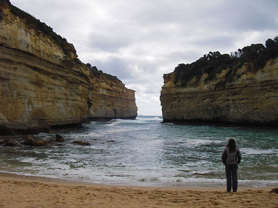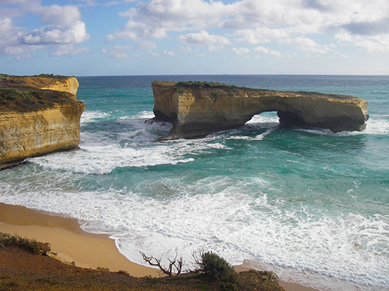 Wieder zurück holte uns der Bus ab. Wir gingen zu einer Bucht, in der sich mal ein Seedrama abspielte. Ein Schiff sank, von über 50 Leuten überlebten nur 2. Unten am Wasser sah es dort auch beeindruckend aus. Der letzte Stopp im 12 Apostel Park sollte folgen: London Bridge.