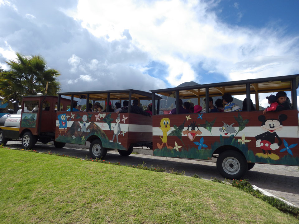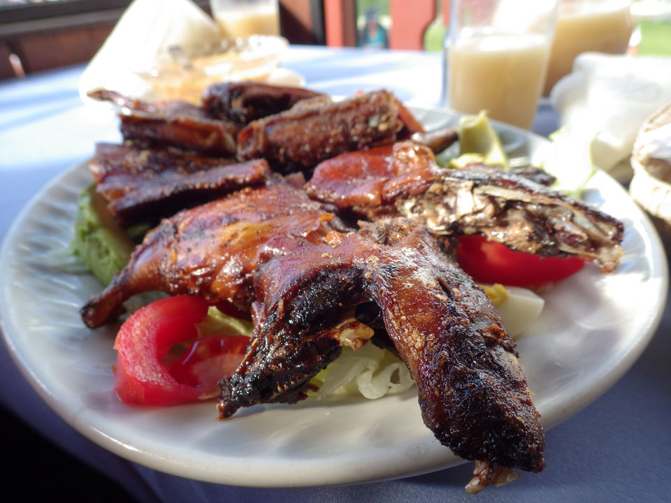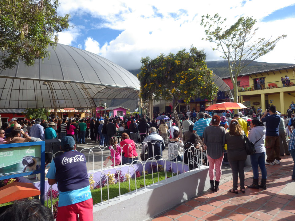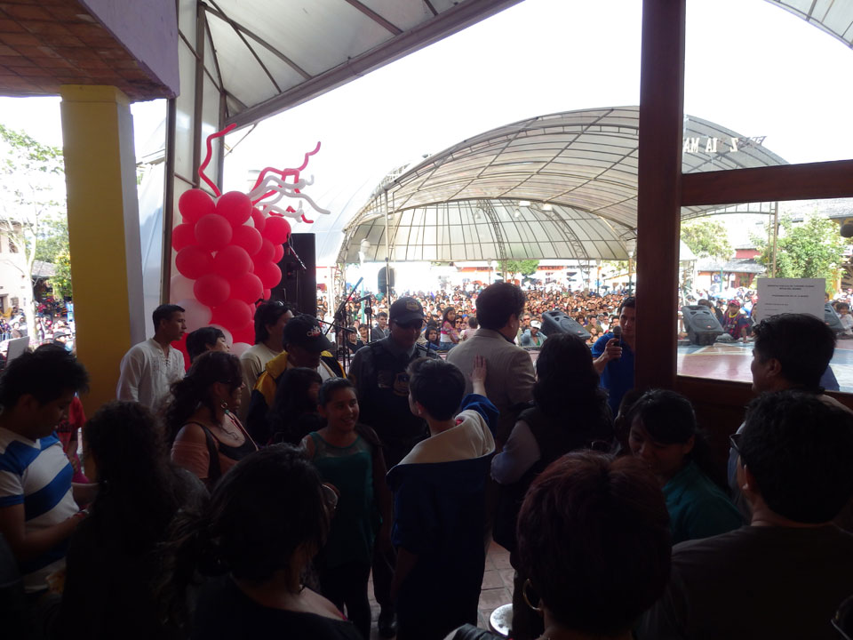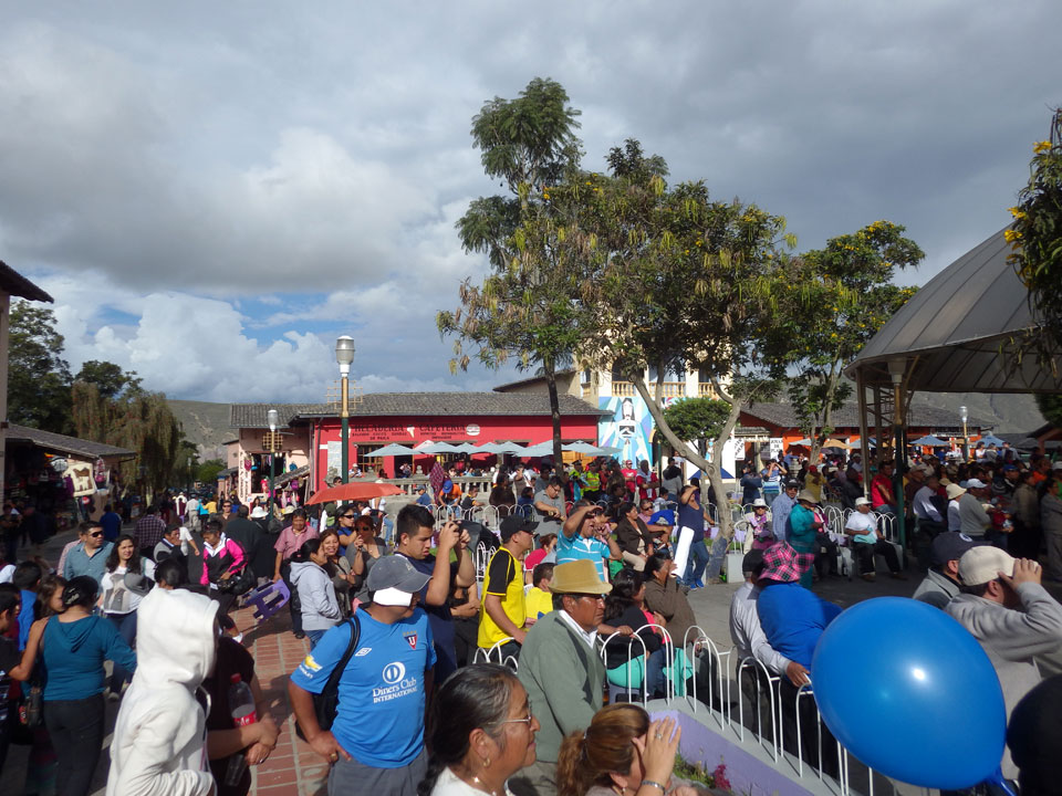 Dort war alles ganz nett. Musik und viele Leute. Wir drehten eine Runde, eine zwete für ’ne Zeitraffer-Aufnahme und hatten eine nette Zeit. Jemand freute sich schon seit Tagen auf Cuy – Meerschweinchen, was eben hier als Delikatesse gilt. Am Eingang hatten sie einige auf dem Grill. Dann als wir nach Hause gehen wollten, kehrten wir doch in einem Restaurant dort ein. Das Essen ist nicht gerade preiswert. Das Cuy kostete $25, reicht zwar für zwei. Dazu noch Chicha und die Steuern. Meine $80, die ich mit hatte wurden so mit dem ganzen Taxi, Eintritt und eben essen fast aufgebraucht. Zurück fuhren wir deshalb mit dem Bus – über eine Stunde für $0.40 pro Nase. Den Rest dann mit dem Taxi.