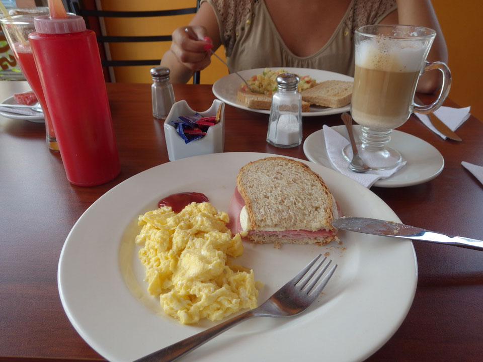 Die Nacht konnte ich kaum schlafen. Kein Wunder. Früh dann fertig musste ich aber raus und mich um den Rest kümmern. Wir gingen vor 12 Frühstücken in einem Café nebenean – Coffe & Cacao war geschlossen. Danach die Wäsche abholen und packen.