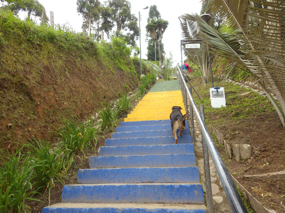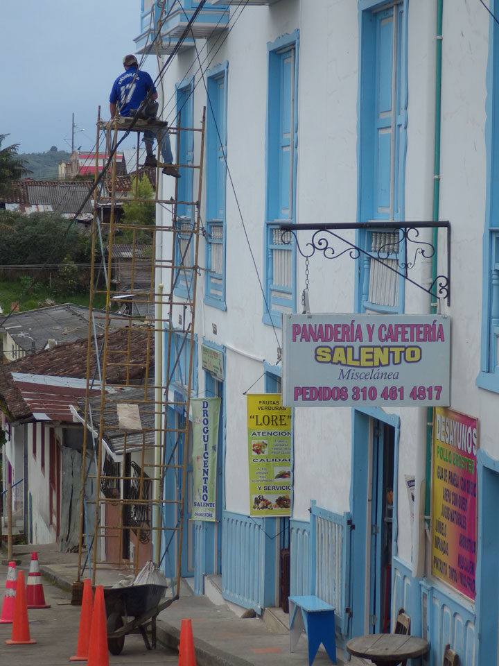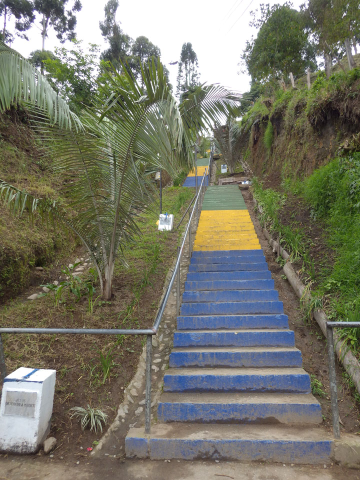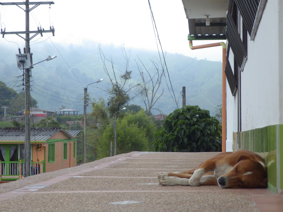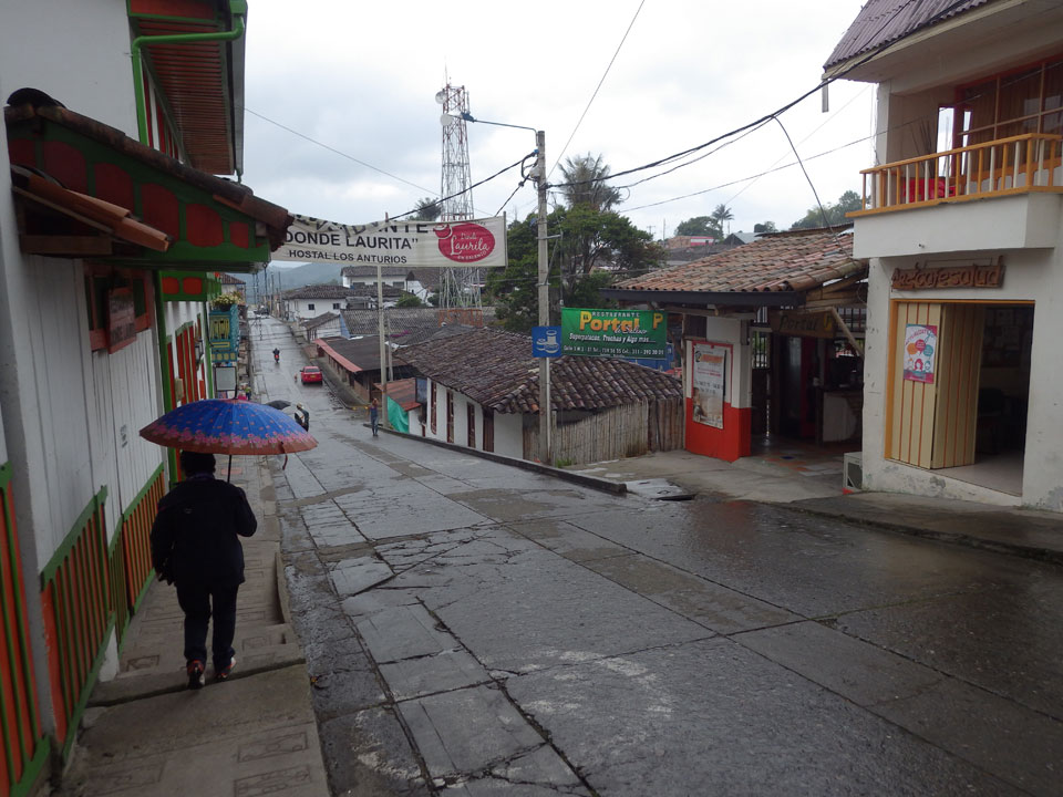 4 1/2 h nach Armenia, dann nochmal eine Stunde etwa nach Salento. Alles in allem eine ca. 6h Fahrt und gegen 19:00 in Salento. Ich kam’s in’s Hostel, wo ich schon erwartet wurde. So freundlich war der Empfang selten. Mit offenen Armen da. Ein Bekannter aus Cali war auch da.