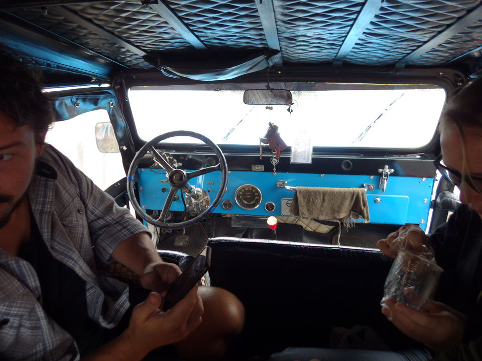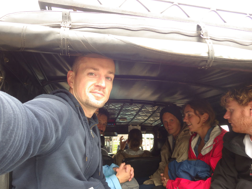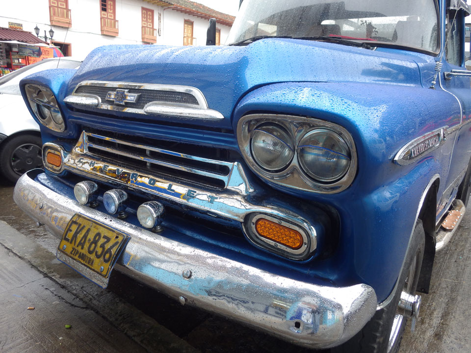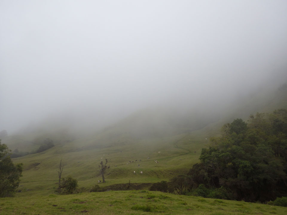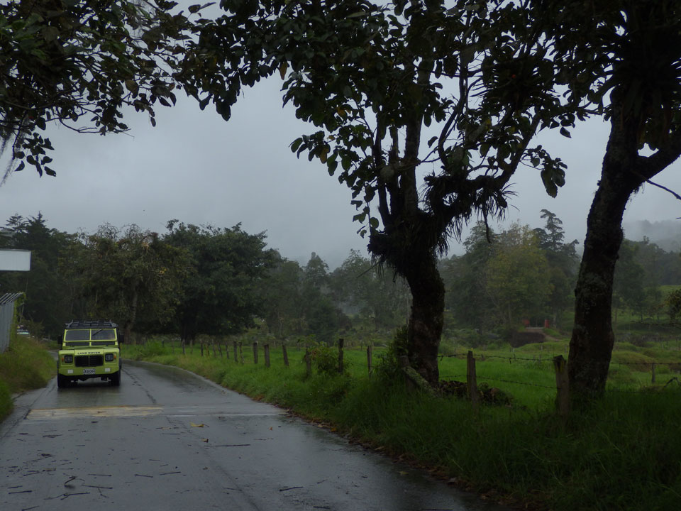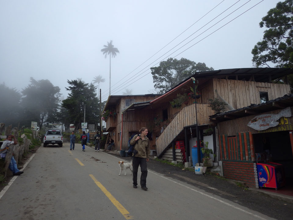 Das Valle de Cocora stand an. Um 9:30 fuhren die Jeeps und nach 9 bekam ich noch schnell ein Frühstück. Sehr gut und dann zum Plaza, wo schon die Touristen in den Jeeps standen. Das Wetter heute nieselig. In einem der letzten Jeeps dann mit 4 Leuten pro Reihe war es eng aber die Fahrt auch recht kurz.