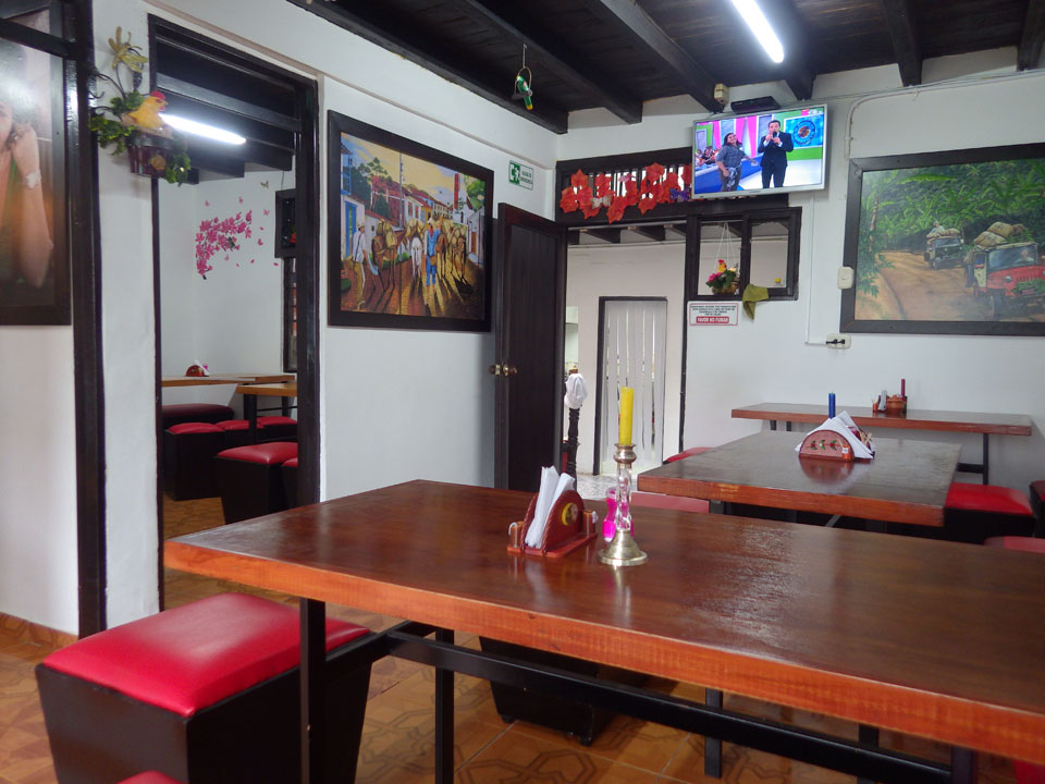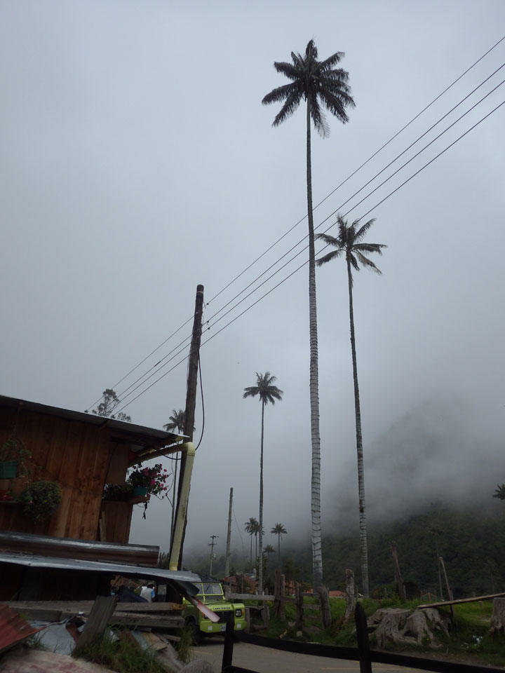 Viele Palmen sah ich dann, Regenschwaden zogen durch’s Tal, Der Weg hier war echt gut und einfach. Schließlich kam ich wieder am Startpunkt an. Die Leute warteten auf einen, mich, dass der Jeep mit 8 Leuten dann voll besetzt wird. Auf ging die Fahrt zurück. Jetzt gegen 16:00 hatte ich Hunger. In einem Restaurant am Plaza waren mir die Preise zu hoch. So ging ich in’s gleiche wie gestern. Wieder das Almuerzo für 6000 COP und ich wurde satt. Im Supermarkt ein kleiner EInkauf, dann im Hostel zahlte ich das Zimmer und 2x Frühstück für 72000 COP. REcht günstig, nur eben klappte das Internet immer noch nicht.