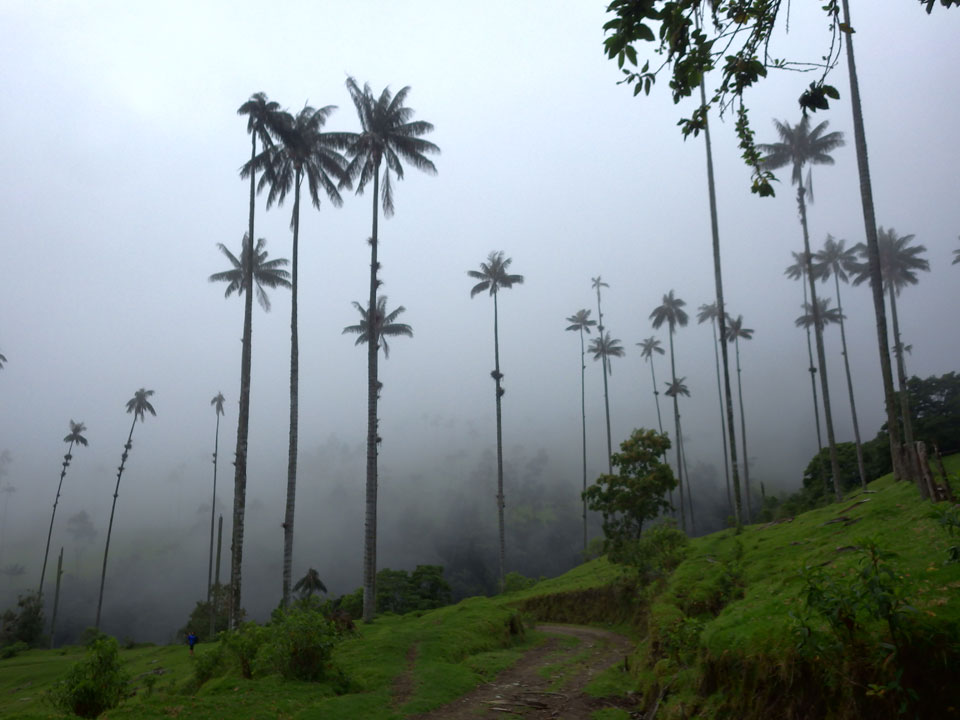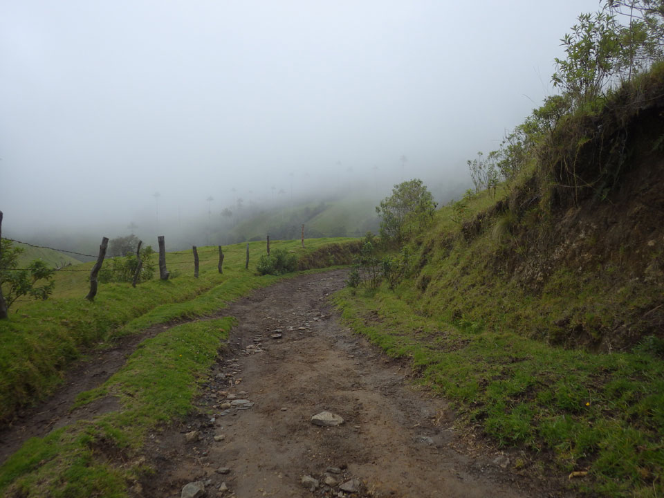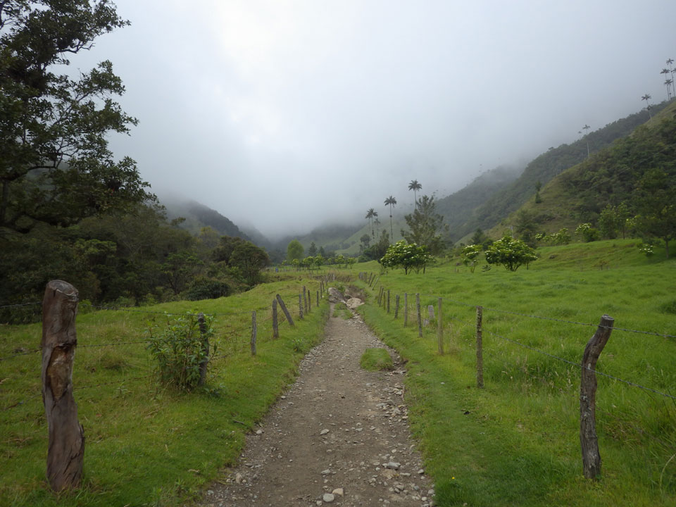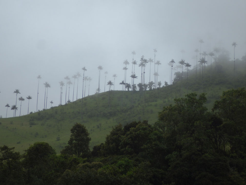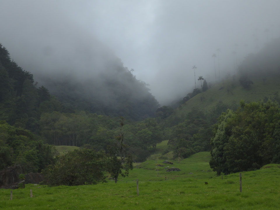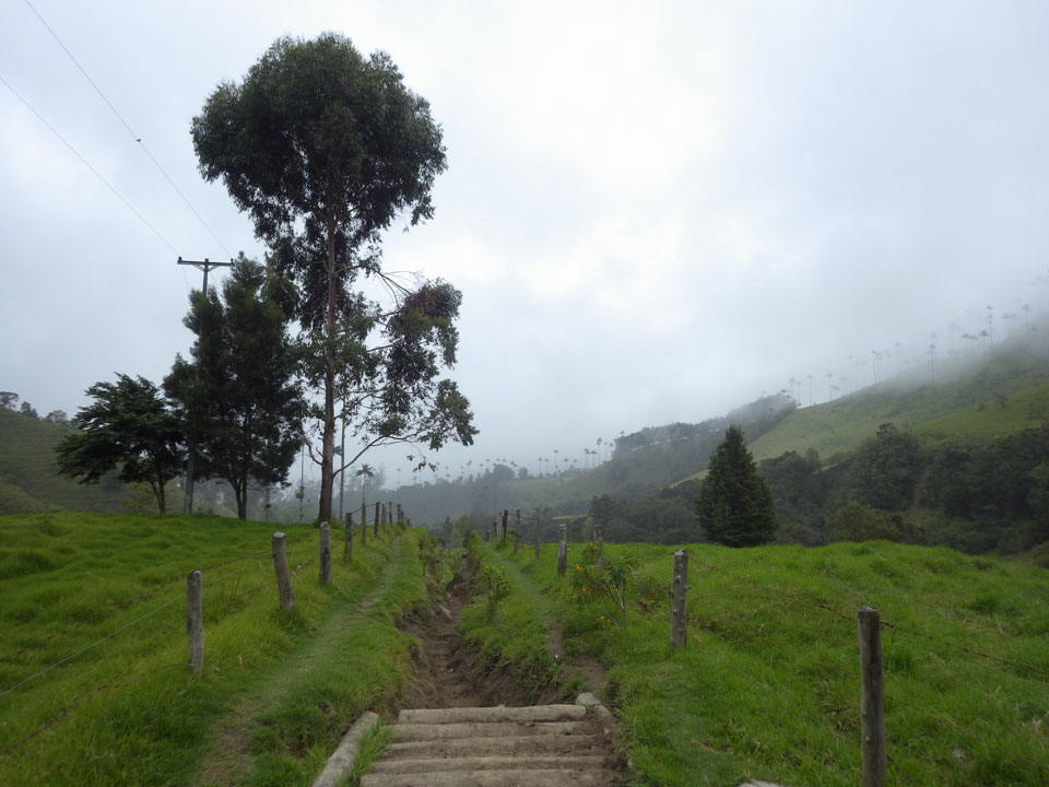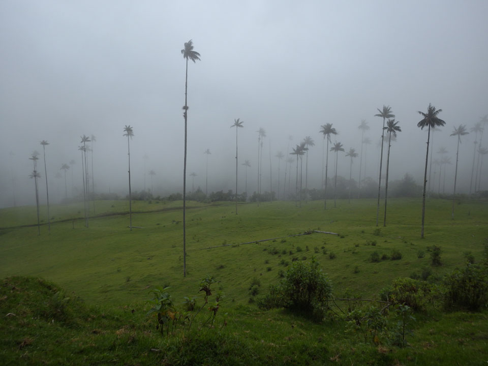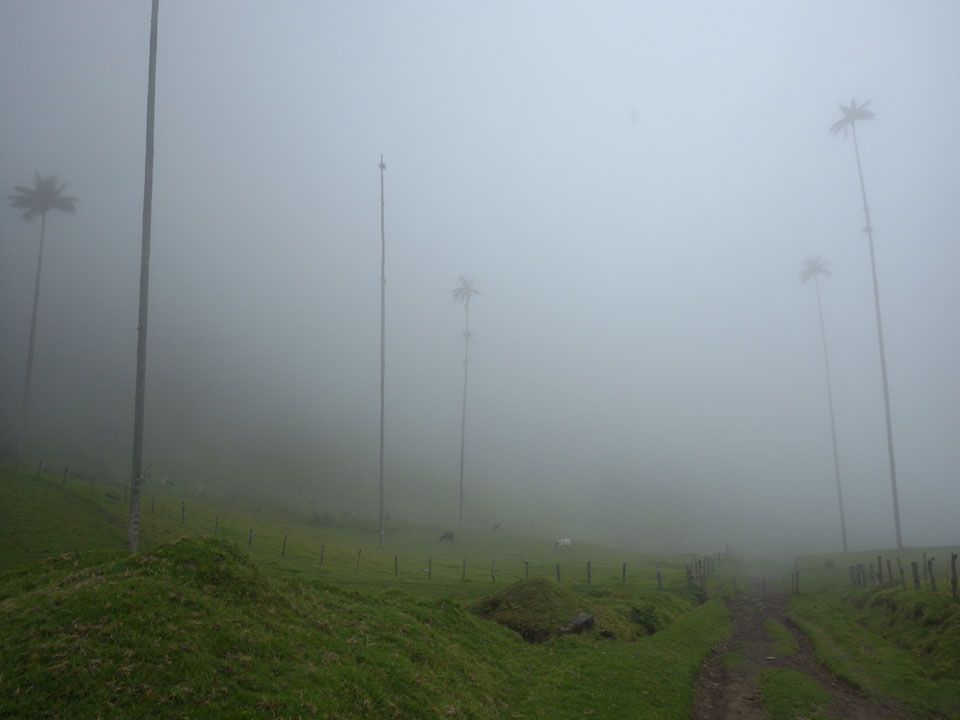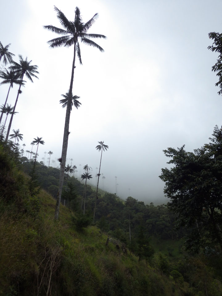 Hier in Cocora stehen extrem hohe Palmen. Das Wetter war feucht nass und ich war froh, dass ich meinen Plastik Poncho aus Tayrona von vor 1 1/2 Jahren mit hatte. Der Weg erinnerte mich schnell stark auch an Ciudad Perdida. Dann regnete es etwas und ich verschwand unter meiner Plastik-Plane. So war alles bestens, kam sogar etwas in’s Schwitzen.