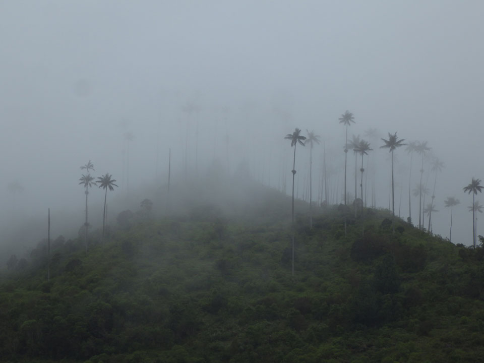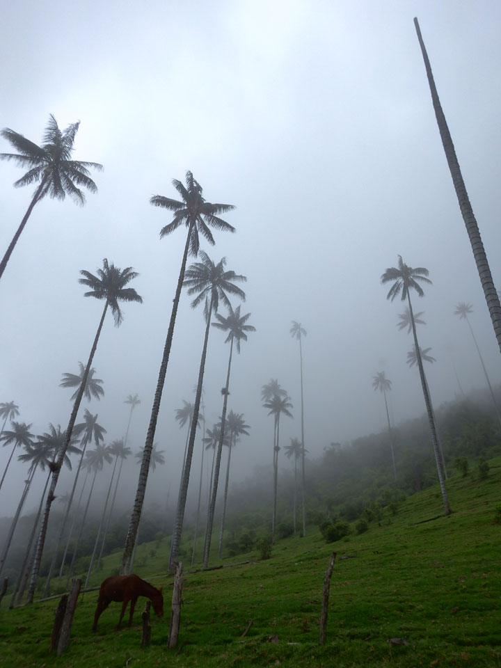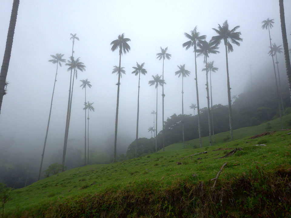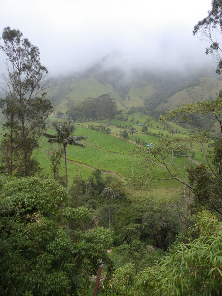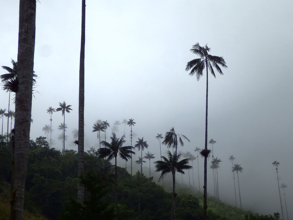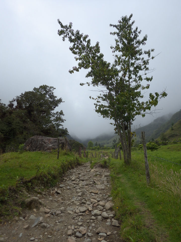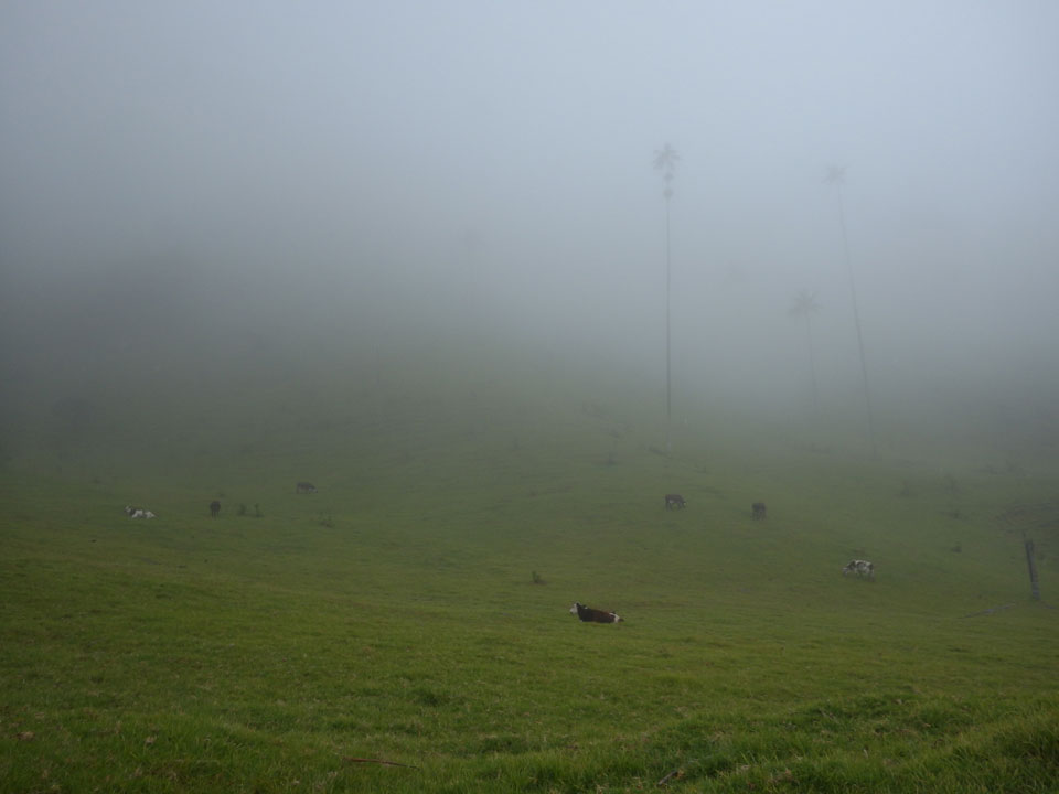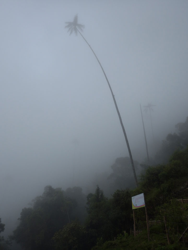 Hier in Cocora stehen extrem hohe Palmen. Das Wetter war feucht nass und ich war froh, dass ich meinen Plastik Poncho aus Tayrona von vor 1 1/2 Jahren mit hatte. Der Weg erinnerte mich schnell stark auch an Ciudad Perdida. Dann regnete es etwas und ich verschwand unter meiner Plastik-Plane. So war alles bestens, kam sogar etwas in’s Schwitzen.