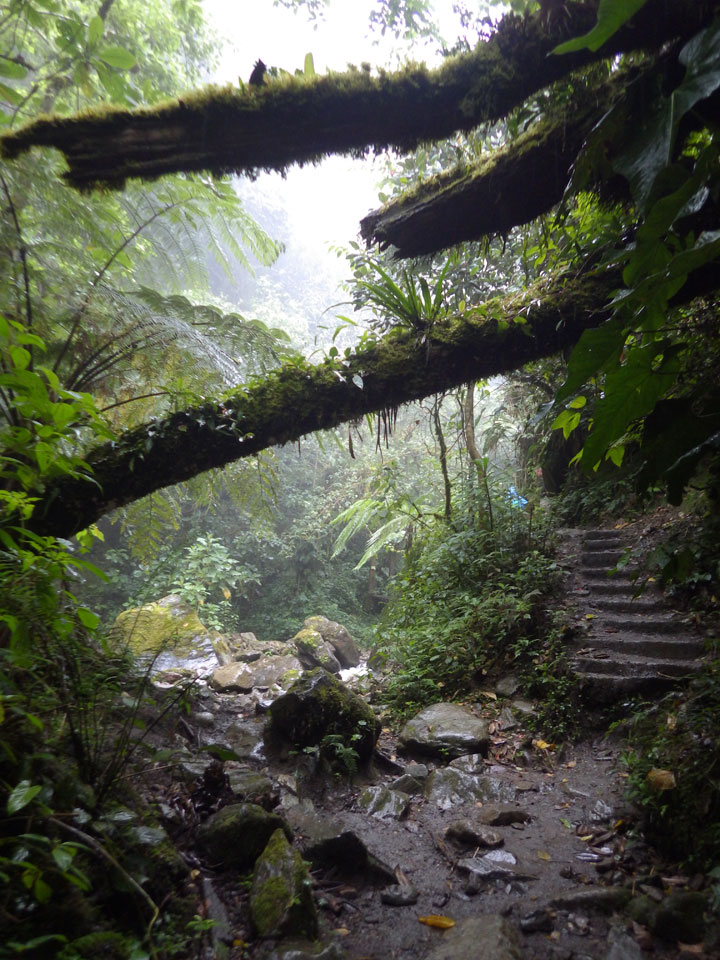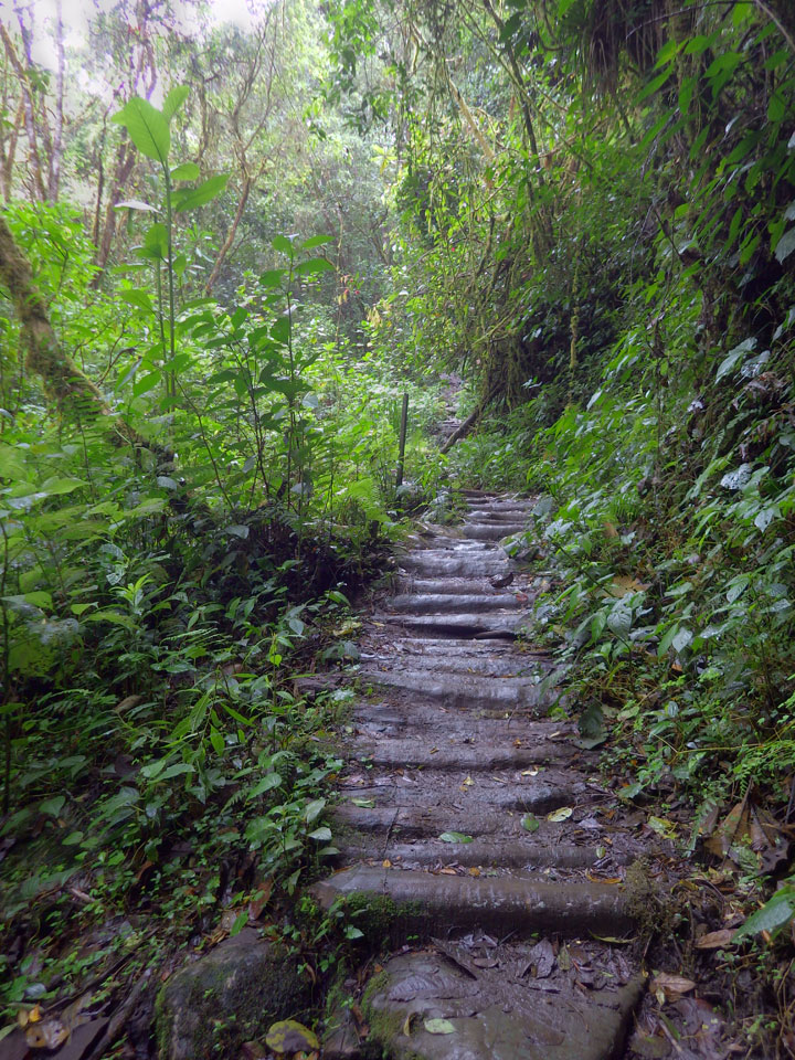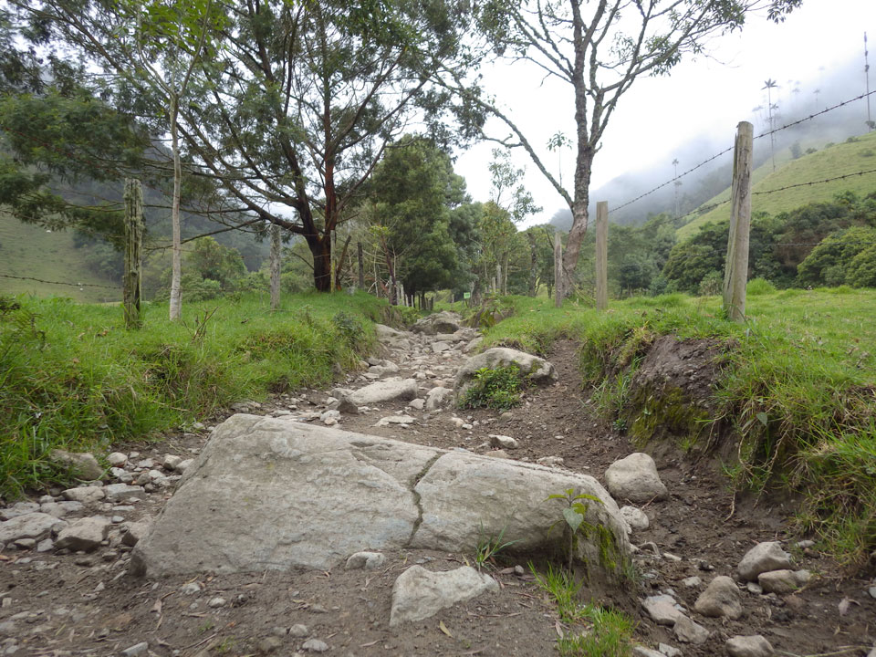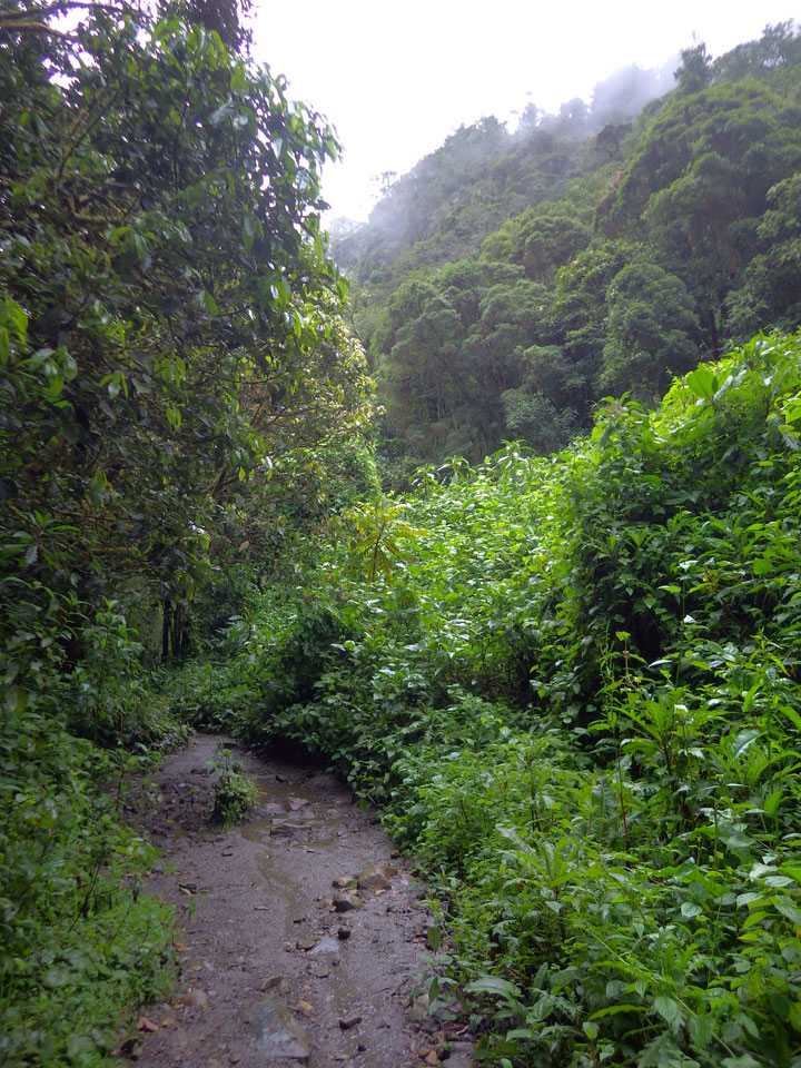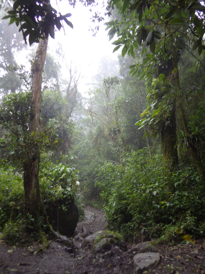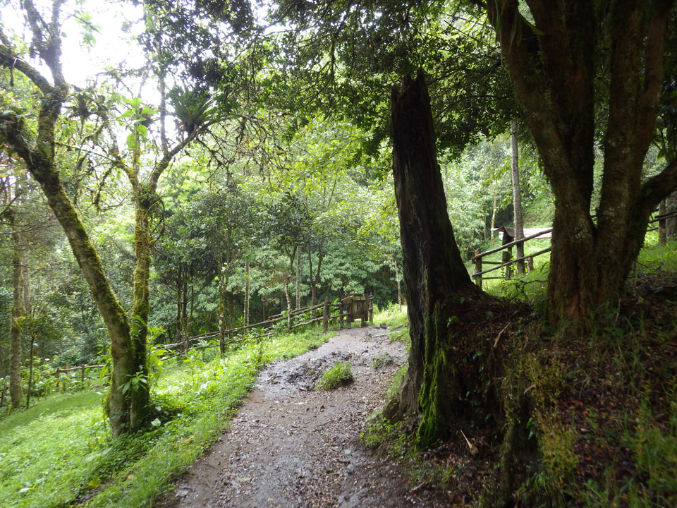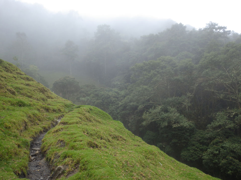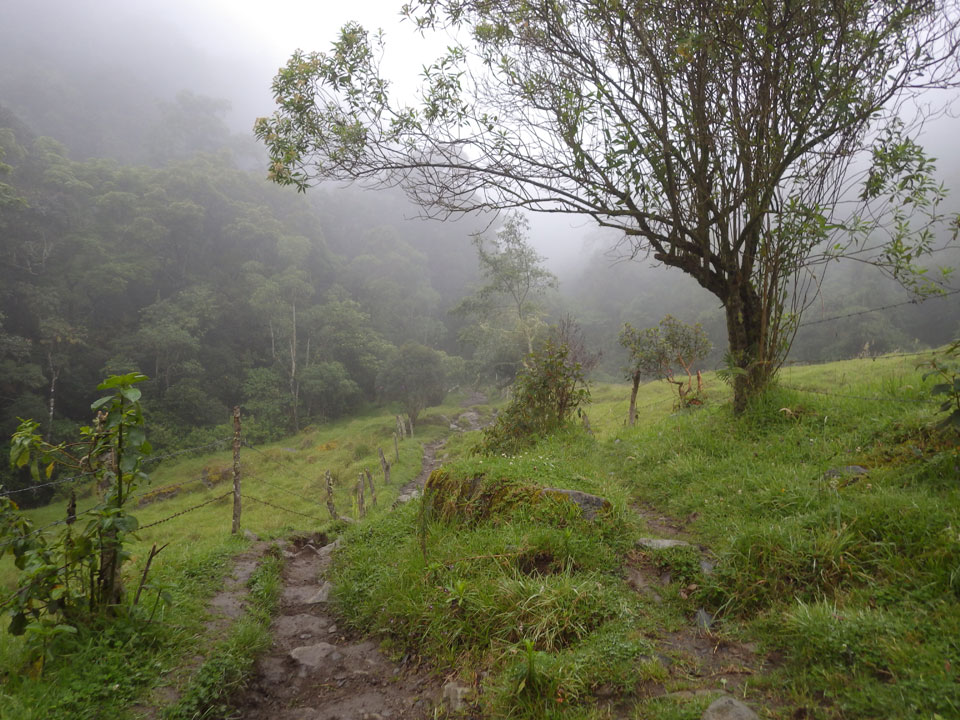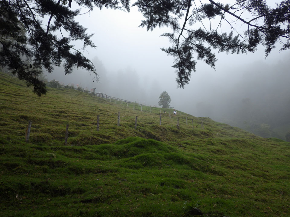 Hier in Cocora stehen extrem hohe Palmen. Das Wetter war feucht nass und ich war froh, dass ich meinen Plastik Poncho aus Tayrona von vor 1 1/2 Jahren mit hatte. Der Weg erinnerte mich schnell stark auch an Ciudad Perdida. Dann regnete es etwas und ich verschwand unter meiner Plastik-Plane. So war alles bestens, kam sogar etwas in’s Schwitzen.