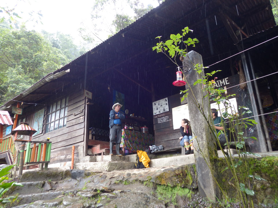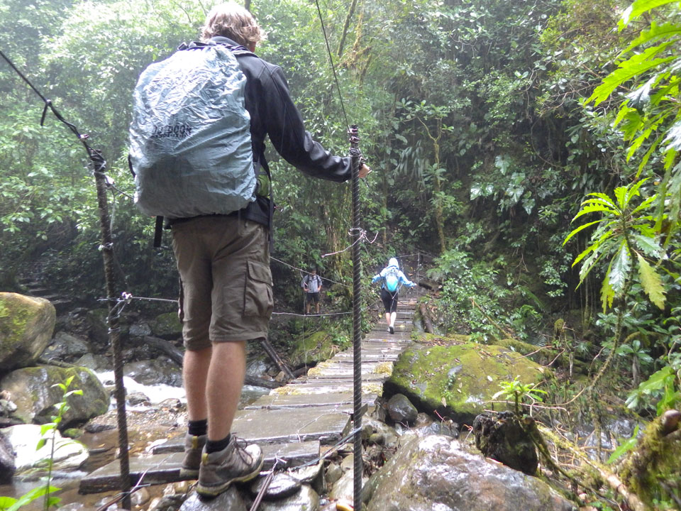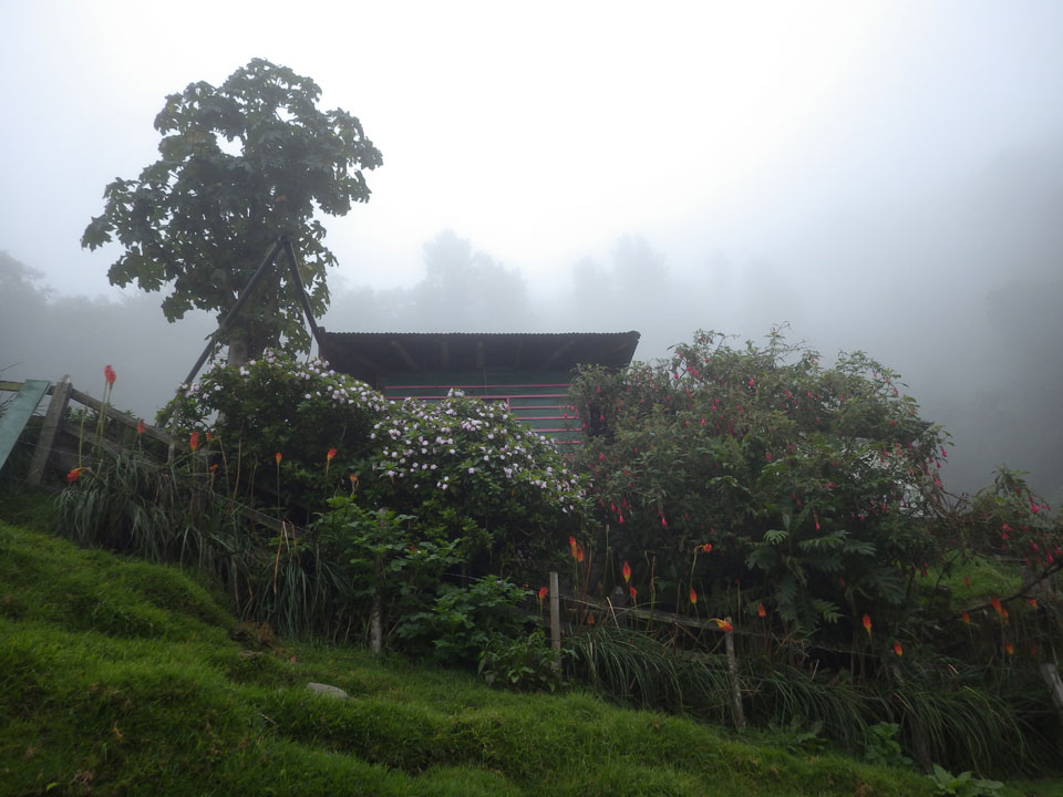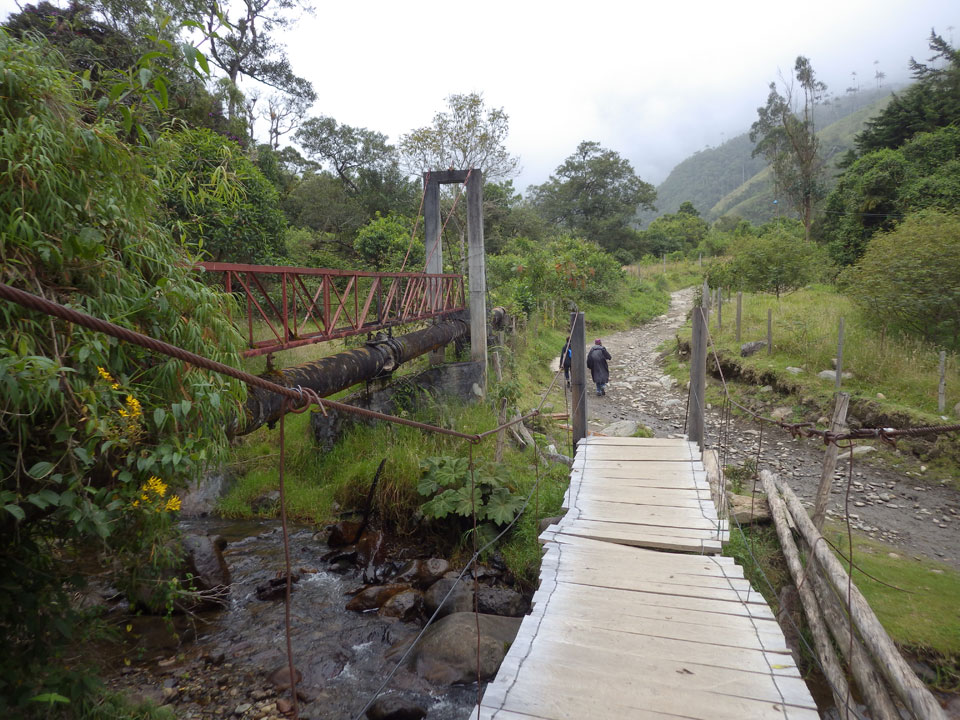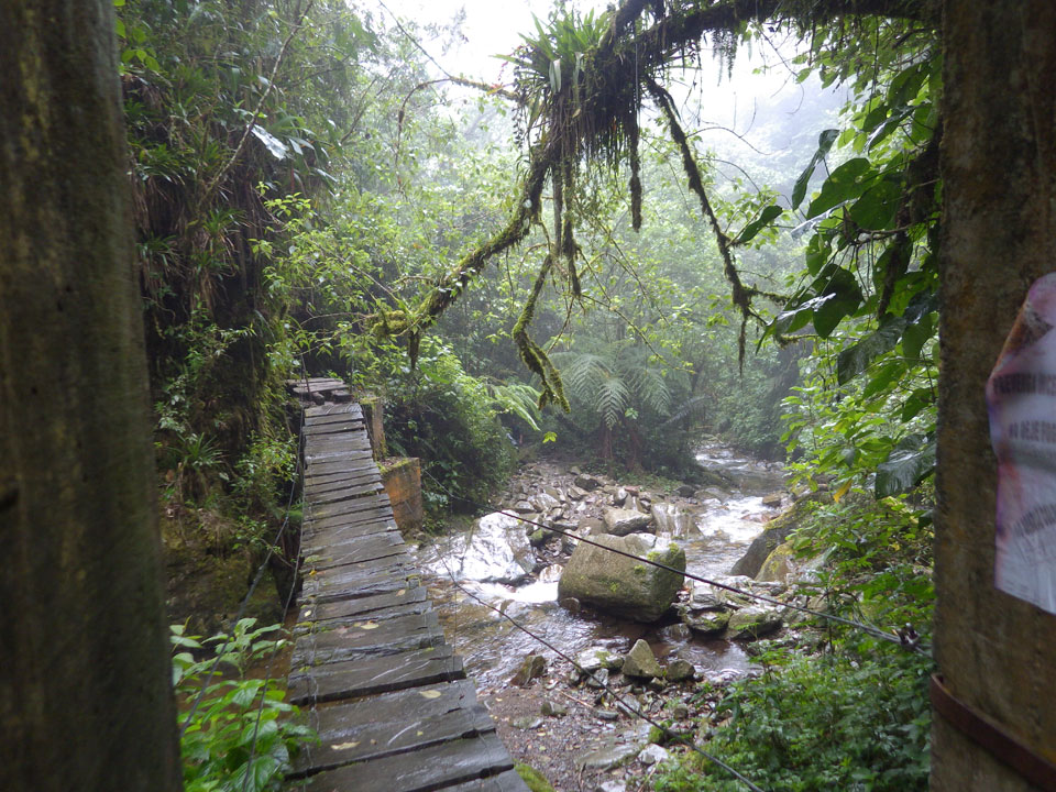 Eine schöne Gegend, über viele wackelige Hängebrücken schließlich kamen wir an einem Stützpunkt an. Da musste man 5000 COP Eintritt zahlen. Um 12 war ich dort. Die bestreiten damit die Track-Pflege. Eine Limo gab’s auch, Queso aber nicht mit der Limo. naja, wieder runter und hoch zu einer anderen Finca. Da war kein Eintritt fällig aber eine Pause hatte ich nötig. Inzwischen war’s schon 13:00. Runter den Berg wieder alleine, wie die meiste Strecke hier. Hatte viel nachzudenken aber es gibt eben einfach nur zu arbeiten und abzuwarten.