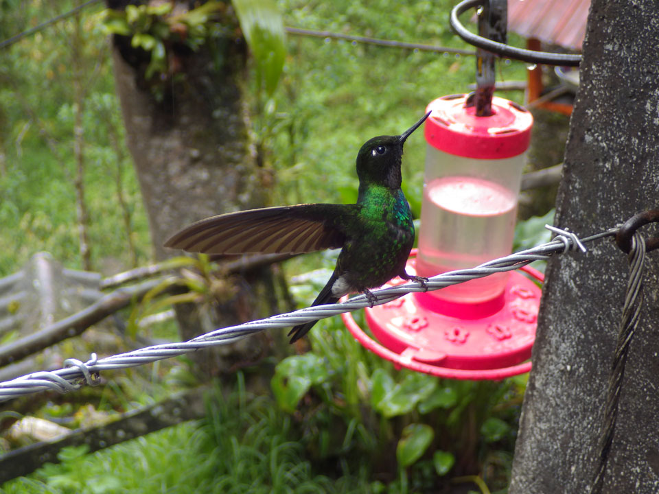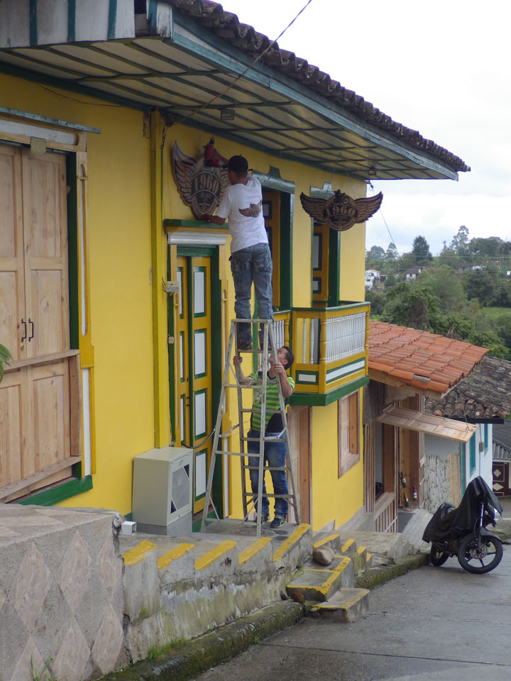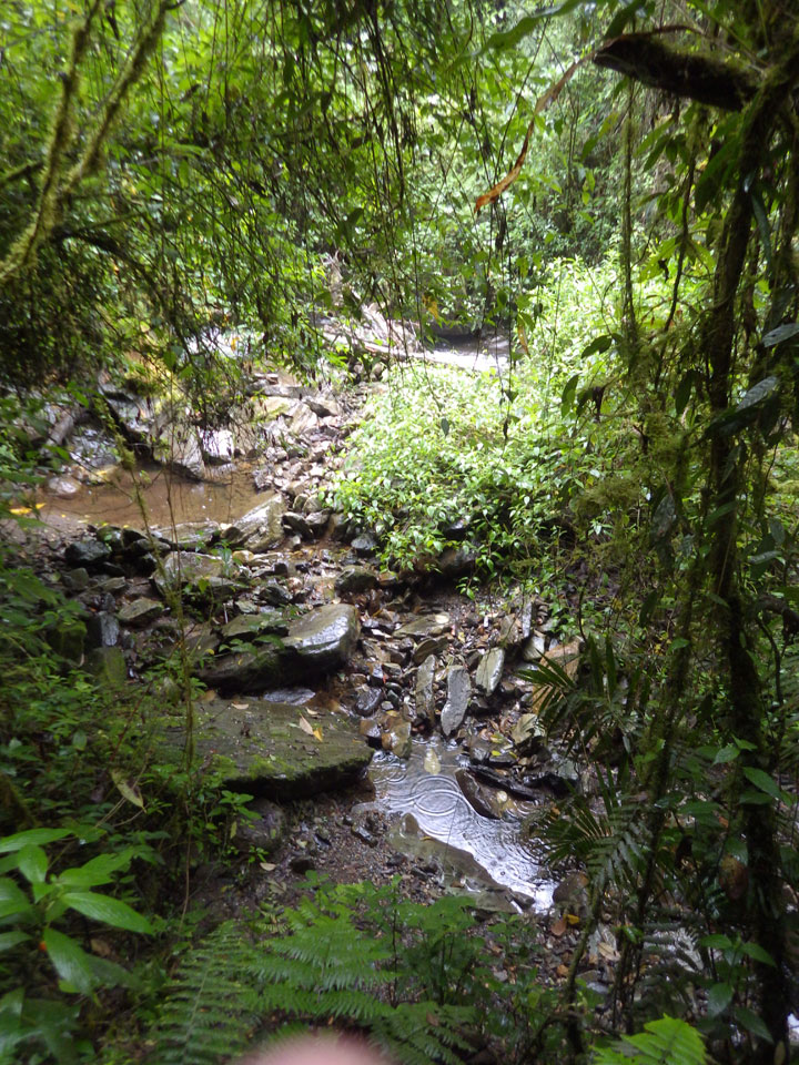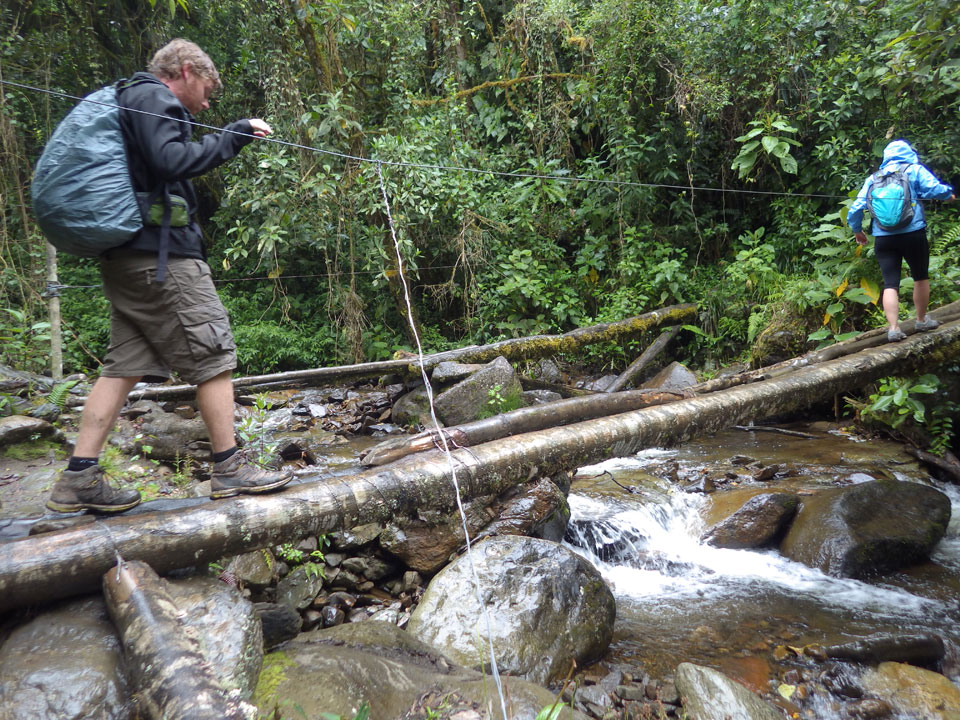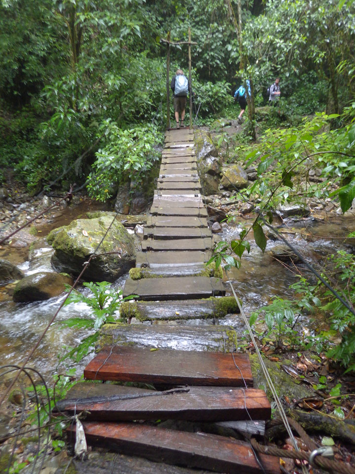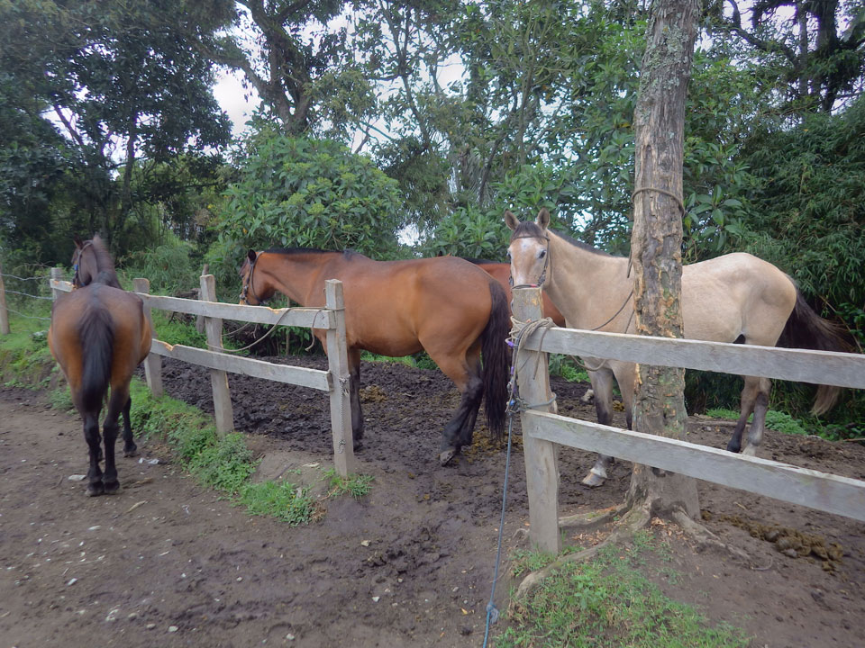 Eine schöne Gegend, über viele wackelige Hängebrücken schließlich kamen wir an einem Stützpunkt an. Da musste man 5000 COP Eintritt zahlen. Um 12 war ich dort. Die bestreiten damit die Track-Pflege. Eine Limo gab’s auch, Queso aber nicht mit der Limo. naja, wieder runter und hoch zu einer anderen Finca. Da war kein Eintritt fällig aber eine Pause hatte ich nötig. Inzwischen war’s schon 13:00. Runter den Berg wieder alleine, wie die meiste Strecke hier. Hatte viel nachzudenken aber es gibt eben einfach nur zu arbeiten und abzuwarten.