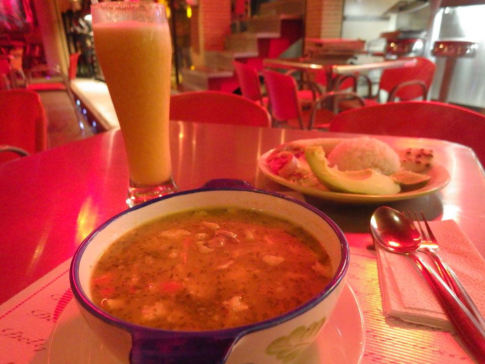 Gegen 23:00 ging ich was essen. Im einem Food-Court sah eine nette Suppe, dann war das doch wieder Darm, den ich gar nicht mag. Der Hunger trieb’s rein. Im Hostel dann wieder saß ich da.