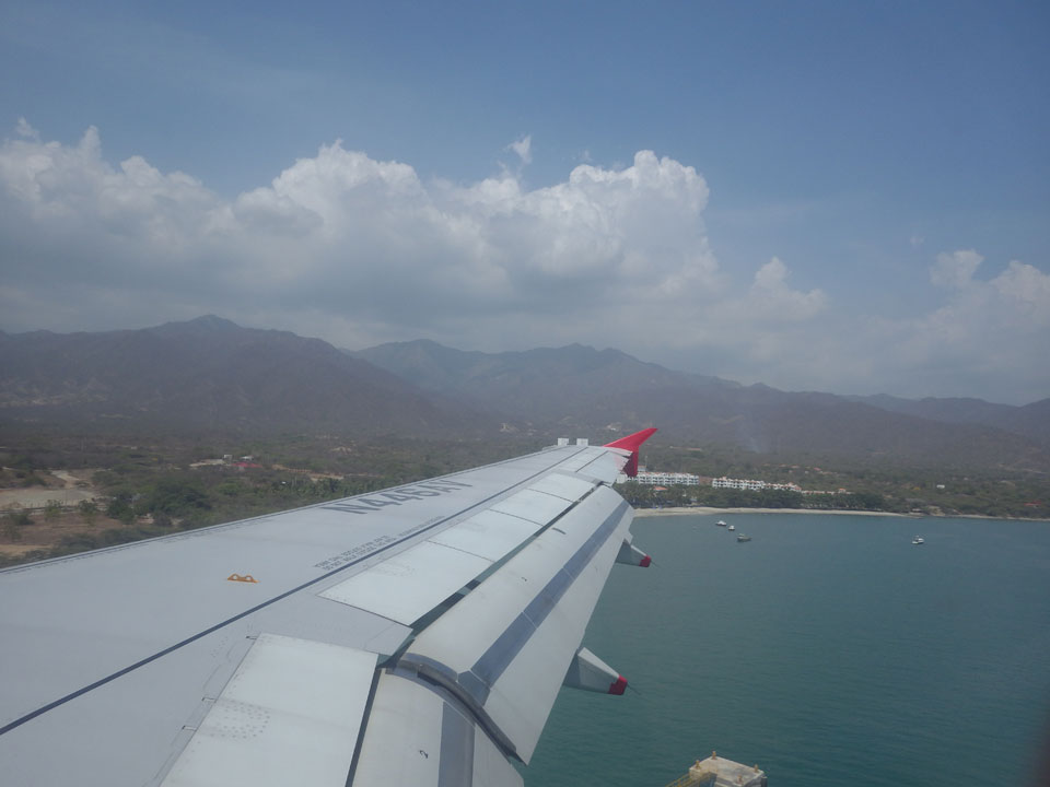 Auf Inlandsflügen ist auch etwas Wasser im Gepäck kein Problem. So hatte ich Internet, checkte Sachen und war dann auf dem 1 Stunden Flug nach Santa Marta.