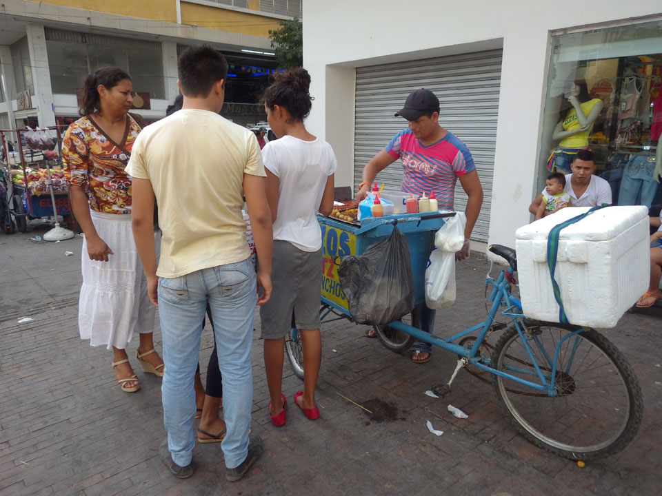 So wurde es nur eine Chorizo am exito. Davon habe ich nun auch erst mal genug. Wieder in’s Hostel und mit einem Taxi nach Taganga. Ein Gewitter startete gerade aber der Taxifahrer war nett, ganz anders als der Typ gestern.