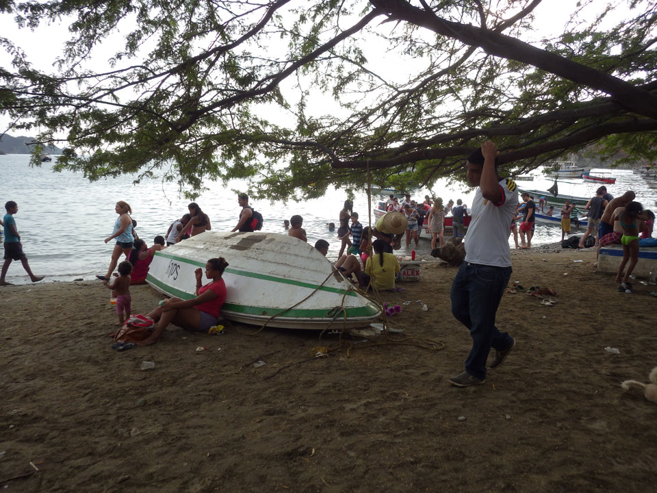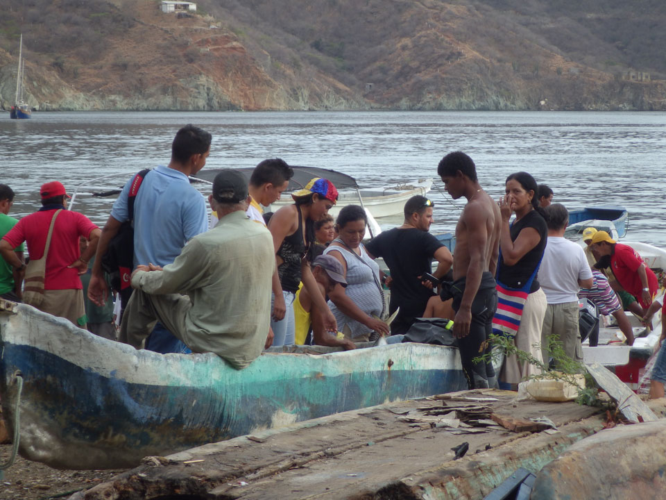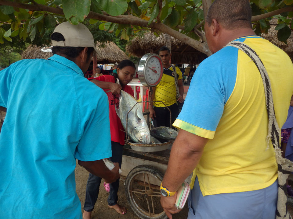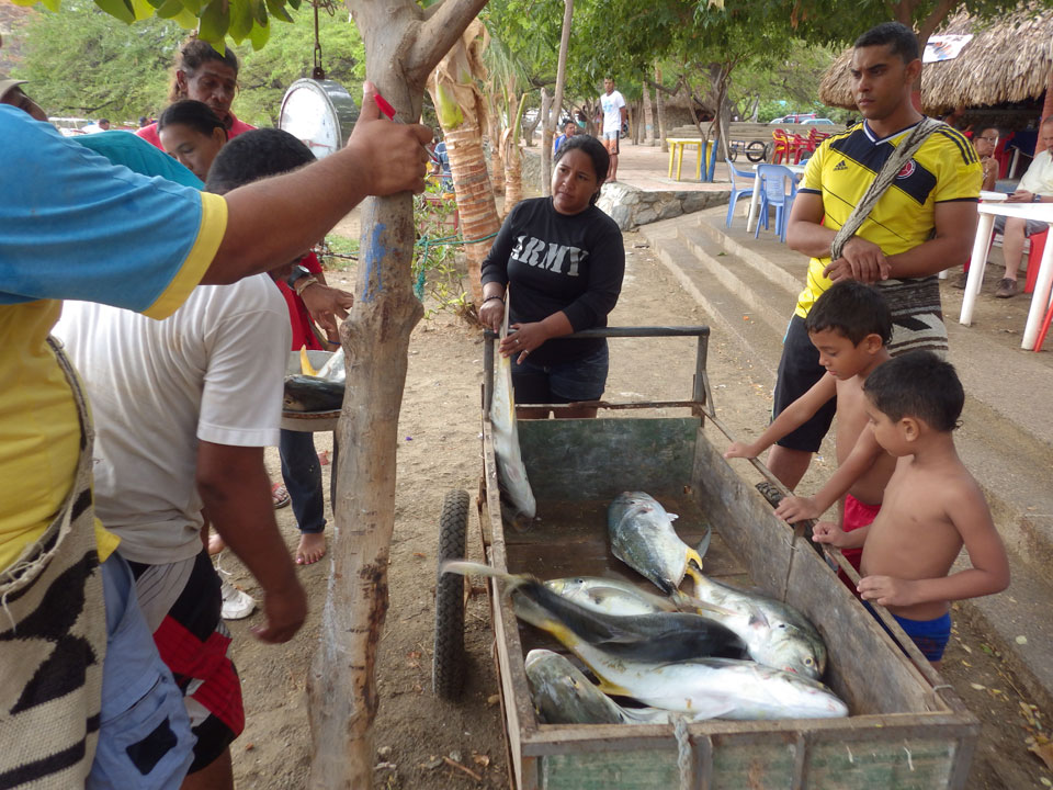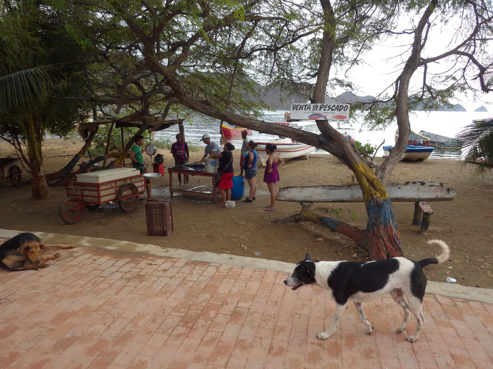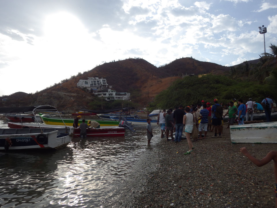 Da gerade mal kein Strom in taganga sprudelte, ging ich zum Strand. Müde und depri heute auch in der schönen Umgebung. Ein paar Fischer brachten den Fang ein, der auch gut gewogen wurde. Taganga hat was von Tumaco – hier nur touristischer und alles viel viel kleiner. Viele Häuser stehen zum Verkauf, die Straßen sind selten asphaltiert. Boom-Zeiten sehen etwas anders aus.