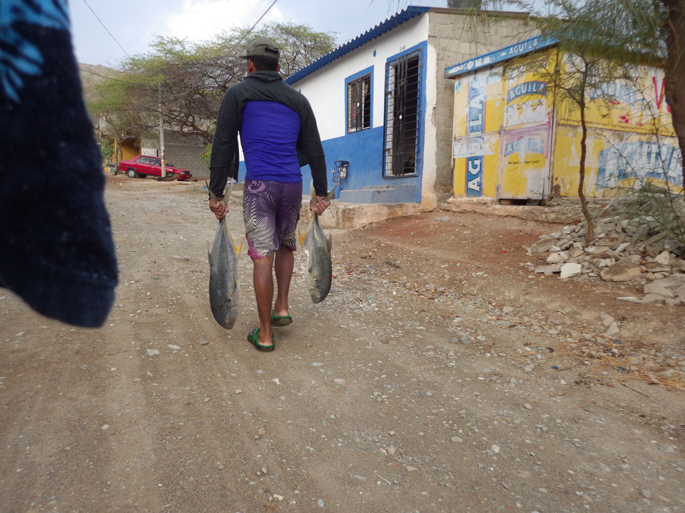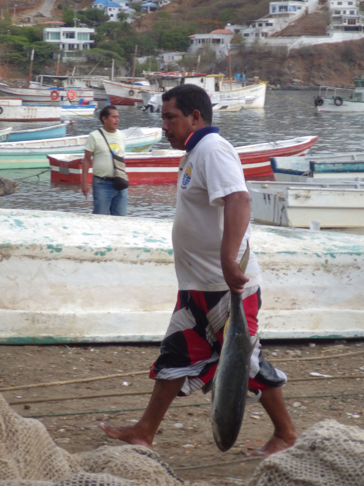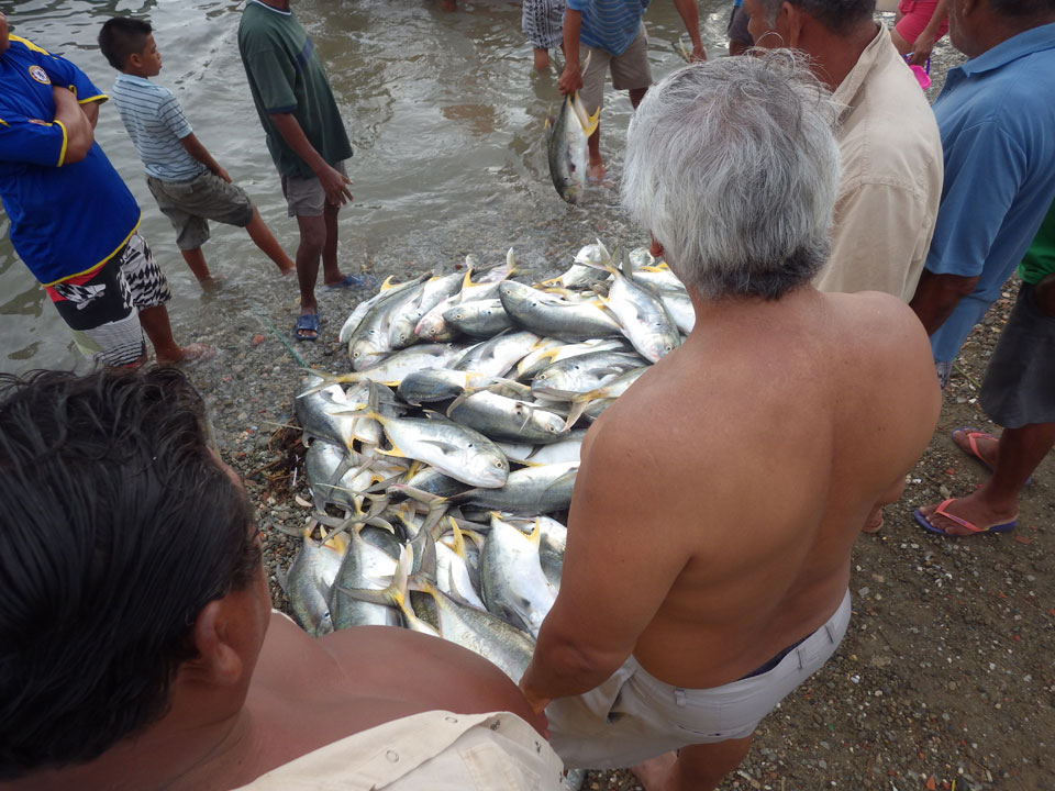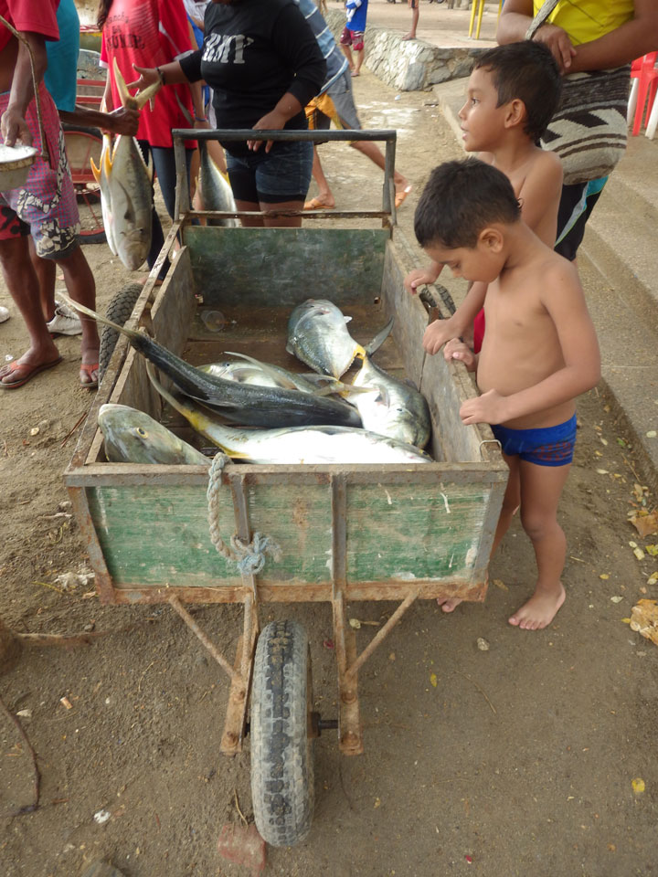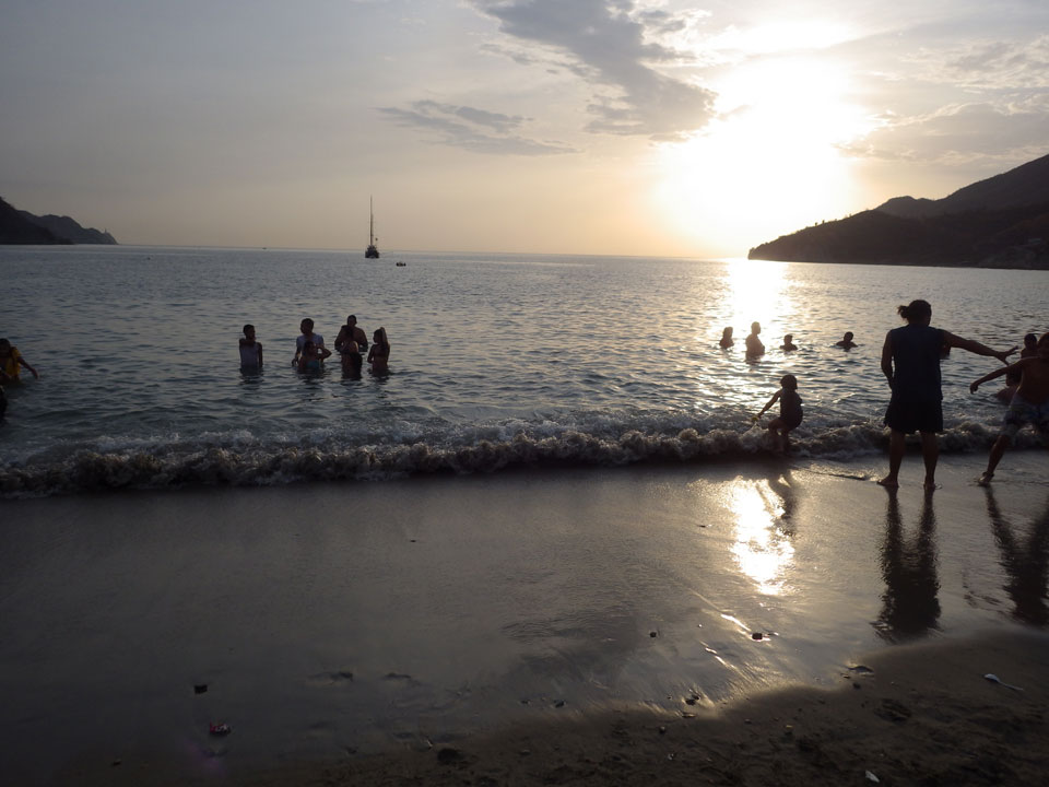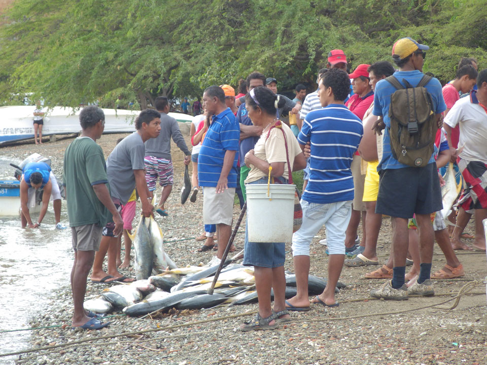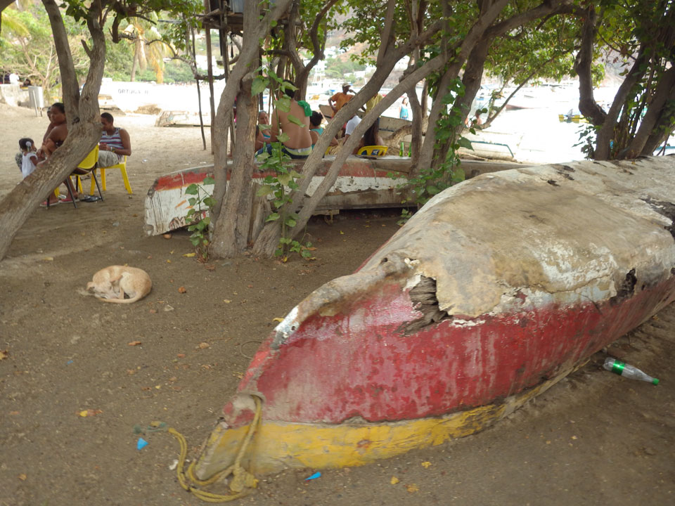Da gerade mal kein Strom in taganga sprudelte, ging ich zum Strand. Müde und depri heute auch in der schönen Umgebung. Ein paar Fischer brachten den Fang ein, der auch gut gewogen wurde. Taganga hat was von Tumaco – hier nur touristischer und alles viel viel kleiner. Viele Häuser stehen zum Verkauf, die Straßen sind selten asphaltiert. Boom-Zeiten sehen etwas anders aus.
