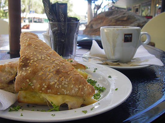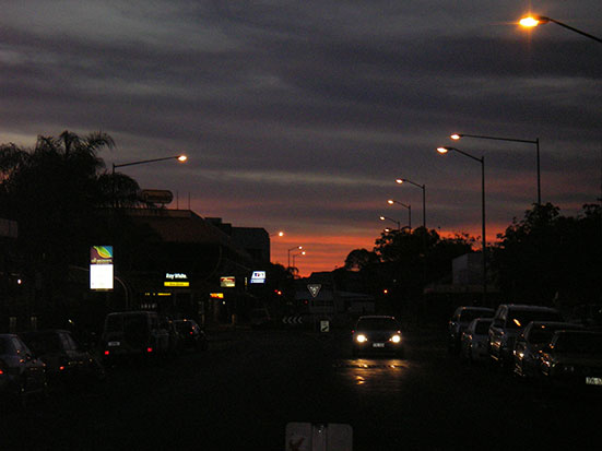 Gegen Nachmittag ging ich mal zum Friseur. Das letzte Mal war ich in Korea – zu lange her, zu lange Haare. Während meine Haare auf Länge 3 gekürzt wurden, erfuhr ich, dass die Cowboys hier „Ringers“ heißen. Wahrscheinlich deshalb, weil sie mit ihrem Lasso Ringe werfen und die Kühe einfangen. Bojangles Bar und alles sonst kannte man auch. Biker und Ringers, das sind die Locals von Alice Springs. Nach dem $15 Schnitt setzte ich mich in ein Straßencafé, hatte ein getoastetes Sandwhich bis der Amerikaner vorbeikam. Dann ging ich ins Internet und baute etwas am Blog. Jetzt bloß nicht aufgeben, auch wenn ich in der Hitze megafaul werde.