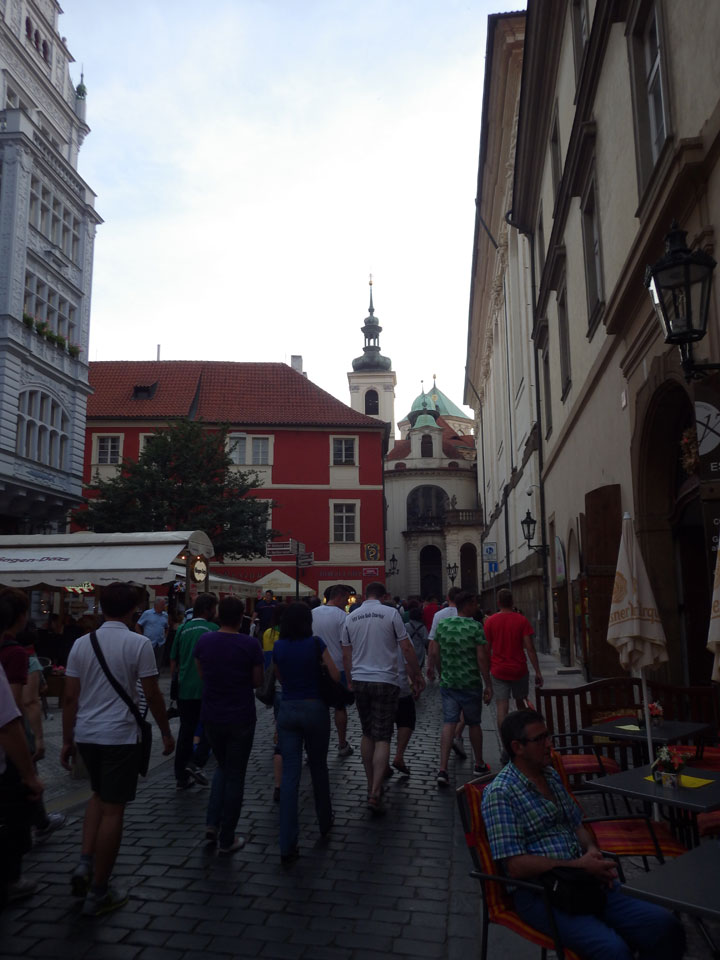Viele Touristen aus der ganzen Welt bevölkern die Innenstadt. Ich schoss vieel Photos, relaxte auch mit Heuschnupfen und ging dann kurz vor 18:00 mal zum Inder, der echt scharfes Curry hatte. Ein älterer Amerikaner fing ein Gespräch an, schaute sich Teresen oder so an, ein Camp aus der Nazizeit mit Familiengeschichte. Das Hauptding war aber das Fußballspiel.