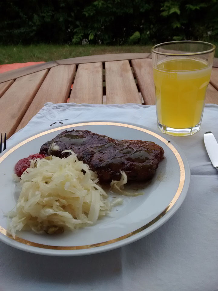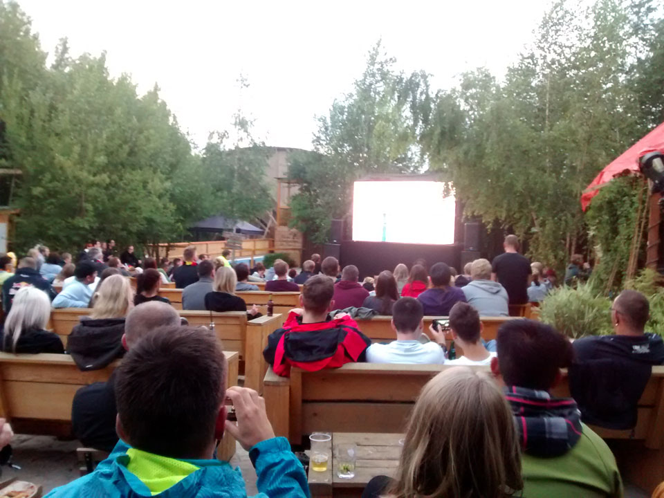 Abends dann machte ich mir ein Rumsteak. Das schmeckte gut – von Rewe €3,49. Dann ging’s unter die Dusche und zum Finale. Mein Bruder war mit seinen Bekannten in der Spinnerei. Das erste Mal war ich dort, eine etwas niedrig gepixelte LED-Wand zeigte den Start des WM-Finales.