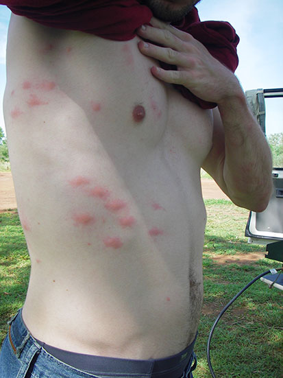 Gegen 7 Uhr morgens war es hell und heiß. Wir machten los. Kein Zähneputzen, einfach los. Alle im Auto schweißgebadet, fertig und zerstochen. Mich hatten die Mücken gut 50 Mal angezapft. Meine ganze rechte Seite war gut gemustert. Zum Glück kein Jucken.