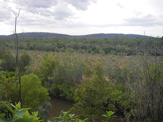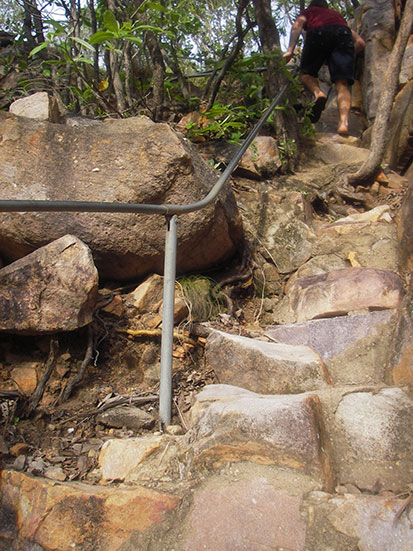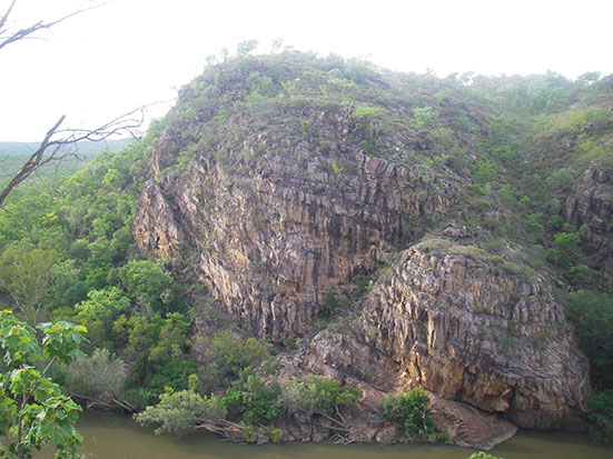 In Katherine informierten wir uns über die Katherine Gorges. Einkauf, ATM, Katherin hatte sogar Handynetz. Die Irin fuhr die ca. 30km raus aus der Stadt, wo es ein paar imposante Felslandschaften zu bewundern gibt. Inzwischen war es Abend. Wir malten uns ein nettes Abendessen auf dem Fels aus. Ich nahm den Beutel und schleppte ihn rauf auf den Fels. Hitze und Fliegen, nervtötend. Hoch oben war die Aussicht gut. Mich pieksten wieder ein paar Viecher und ich hatte die Nase voll – mit Fliegen und Blutsaugern an den Füßen. Wieder runter und zu einem besseren Ort für ein Picknick.