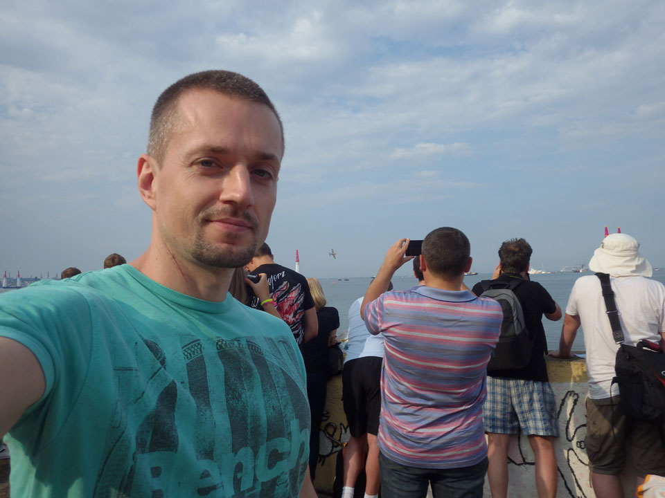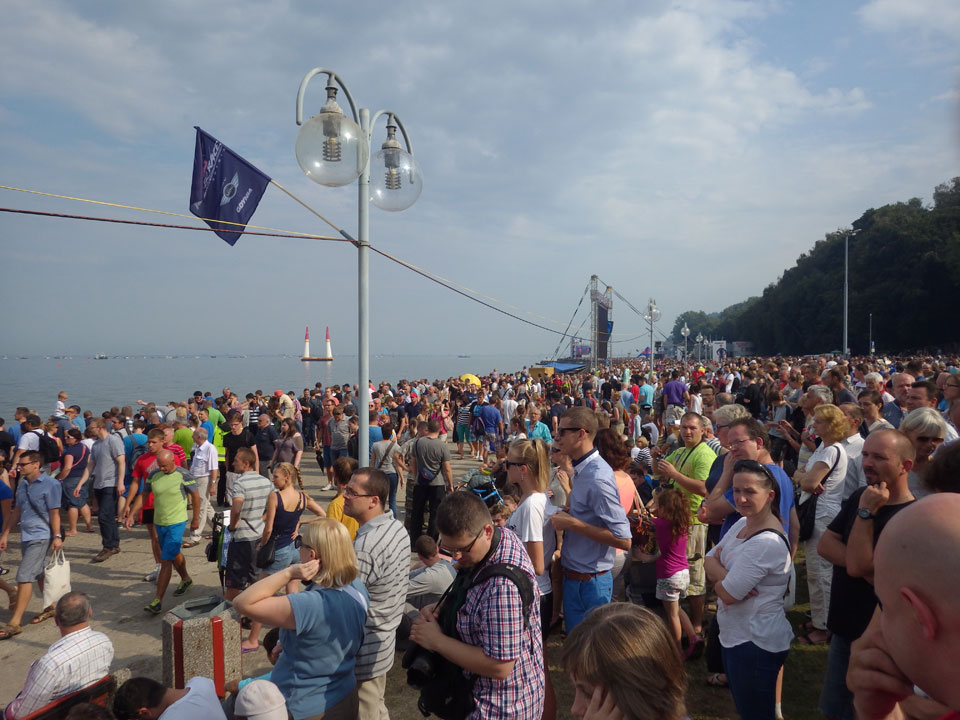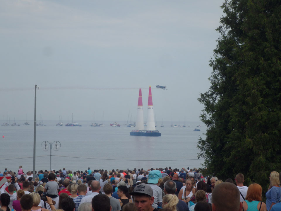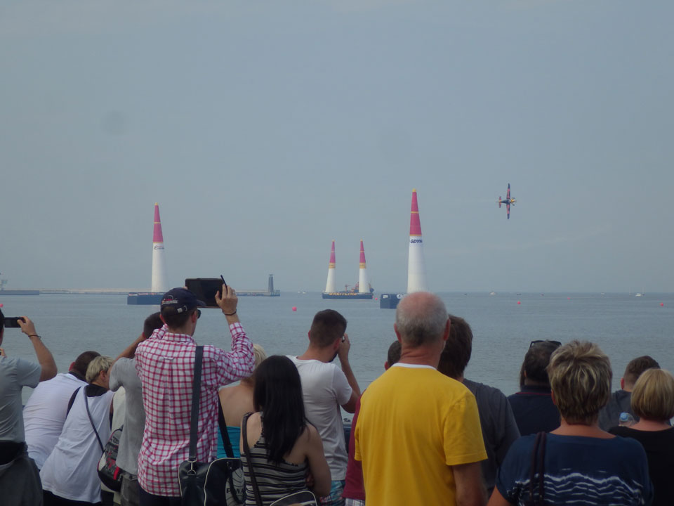 Das Hostel ausgebucht und ein paar Leute aus Warschau kamen extra wegen Red Bull Air Race. Ich fuhr dann nachmittags auch im vollen Zug nach Gdynia und schaute mir das an. Die ganze Tricity Gegend war auf den Beinen.