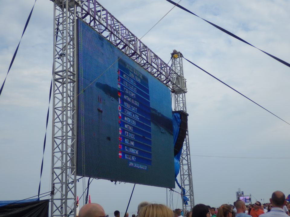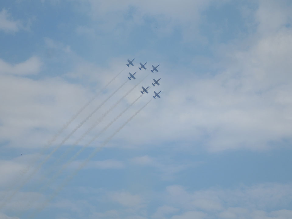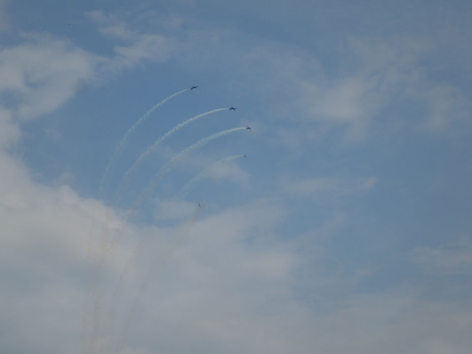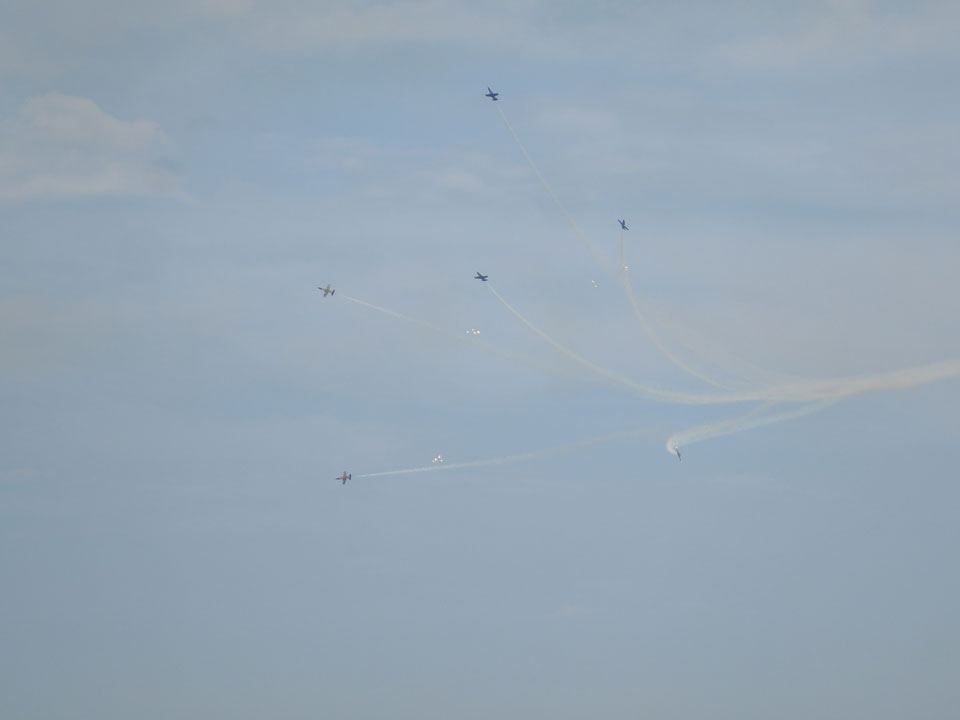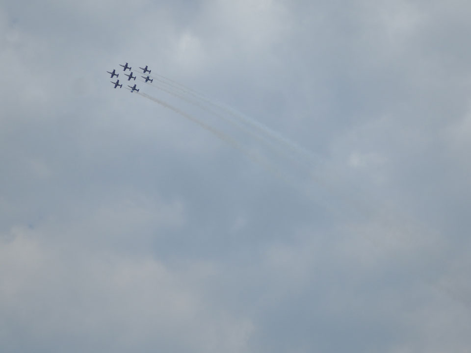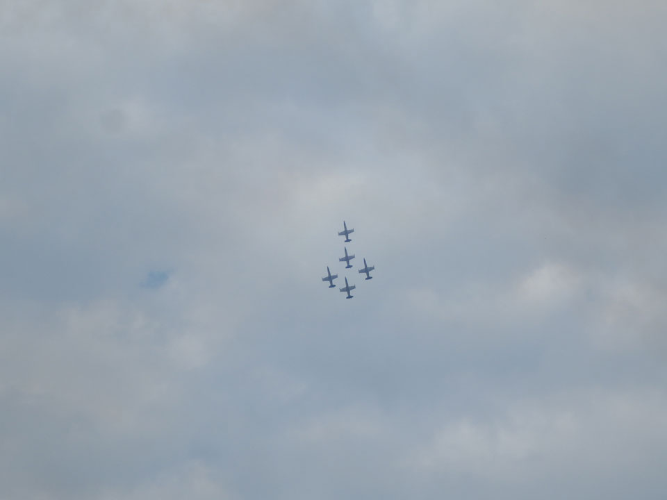 Irgendwie ist so ein Rennsport gegen die Zeit und ohne sichtbare Konkurrenten nur halb interessant. Ich fand’s OK, der Kommentator versuchte immer Stimmung in die Bude zu bekommen. Die Flieger drehten halt ihren Runden und die Skills sind schon ganz gut. Die Pausenshow mit Düsenjets war besser.