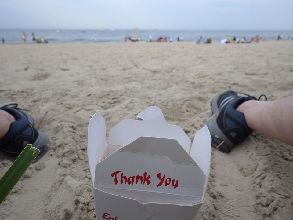 Am Ende hatte ich genug gesehen und fuhr wieder zurück nach Sopot. Am Strand etwas Essen, Proviant für die Fahrt morgen noch.