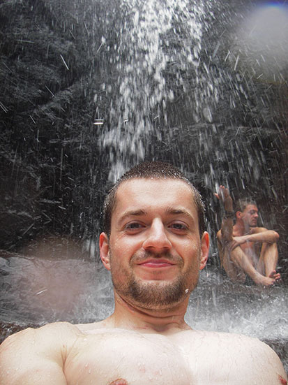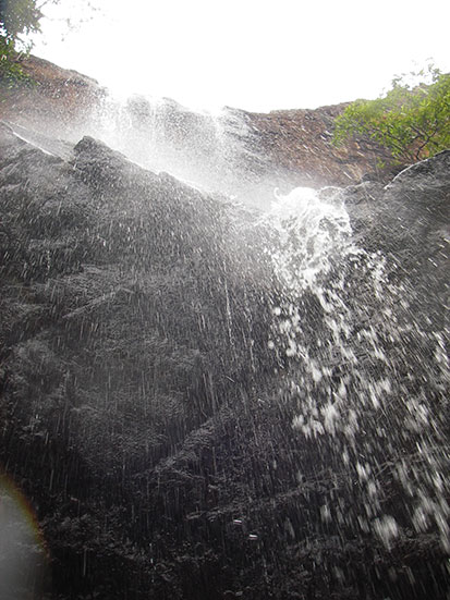 Als nächstes war ein schöner Wasserfall angesagt. Ich nahm mal meine Badehosen und sah dann doch, dass er nicht zum Baden gedacht war. Hoch über dem Fall sah man nichts weiter als grünen Wald und Felsen in der schönen Landschaft. Schön aber unnütz, wenn man baden will.