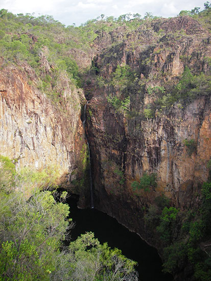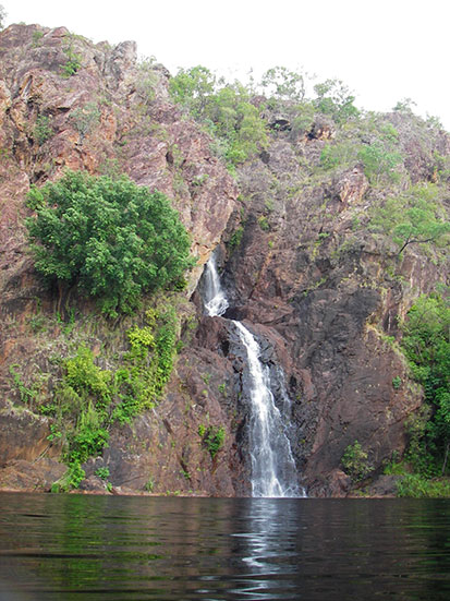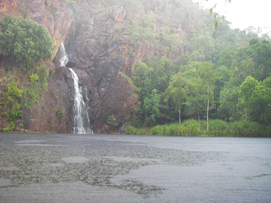 Wallabis hüpften am Wegesrand. Zum Abend zogen ein paar Gewitterwolken auf. Im Reiseführer wurden die Wangi Falls als eine der wichtigsten Wasserfälle hier im Litchfield Park. Und was für einer!