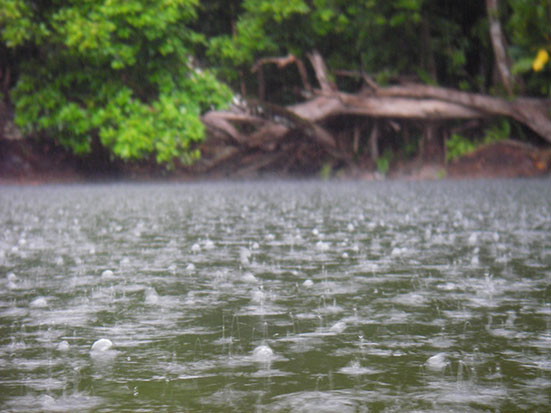 Wunderschön gelegen, groß und genau zur richtigen Zeit. Auf Schildern wurde vor Crocs gewarnt. So hatte ich doch bissel Bammel. Der Amerikaner schwamm direkt zum Wasserfall, ich zögerte erst und machte dann doch schnell die ca. 80m. Unter mir ein paar Luftblasen und schwarzes Wasser. Etwas unheimlich. Das Wasser fiel hart in die Tiefe. Glitschiger Felsen und es war es doch wert. Da saß ich nun unter der Dusche und ließ es auf meinen Rücken prasseln. Dann wieder zurück, der Regen startete. Im Wasser macht einem so ein Schauer natürlich nichts aus. Auf einer Sandbank mitten im See konnte man gut stehen. Als dann ein paar Blitze in den Wolken zuckten, verkrochen wir uns doch ins sichere Auto.