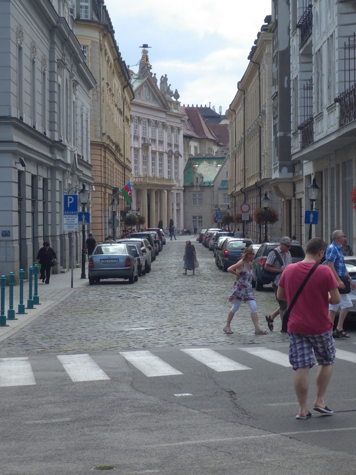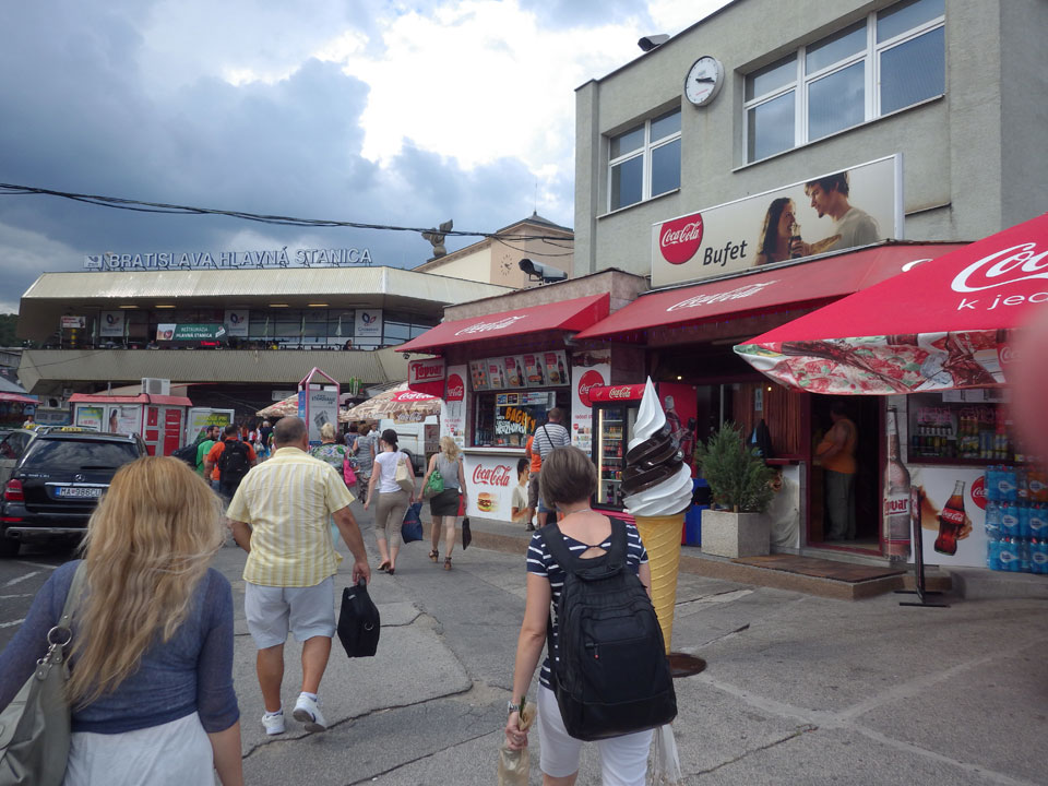 Schwüle Hitze in Bratislava. Ich verdrückte meine restlichen Frühstückssachen. War ganz gut, dass ich Nescafe dabei hatte. Langsam auf den Weg nach Bratislava. Noch ein Sadwich zum Mittag und schließlich mit dem Bus zum Bahnhof.