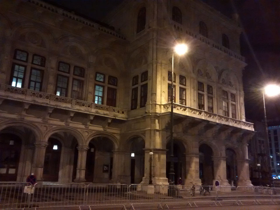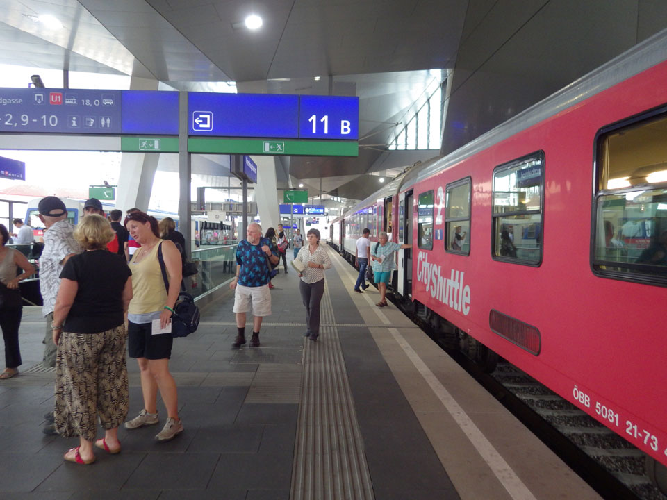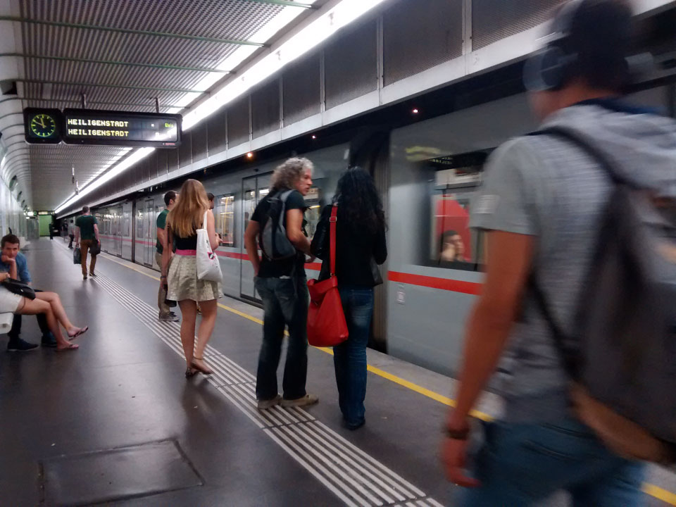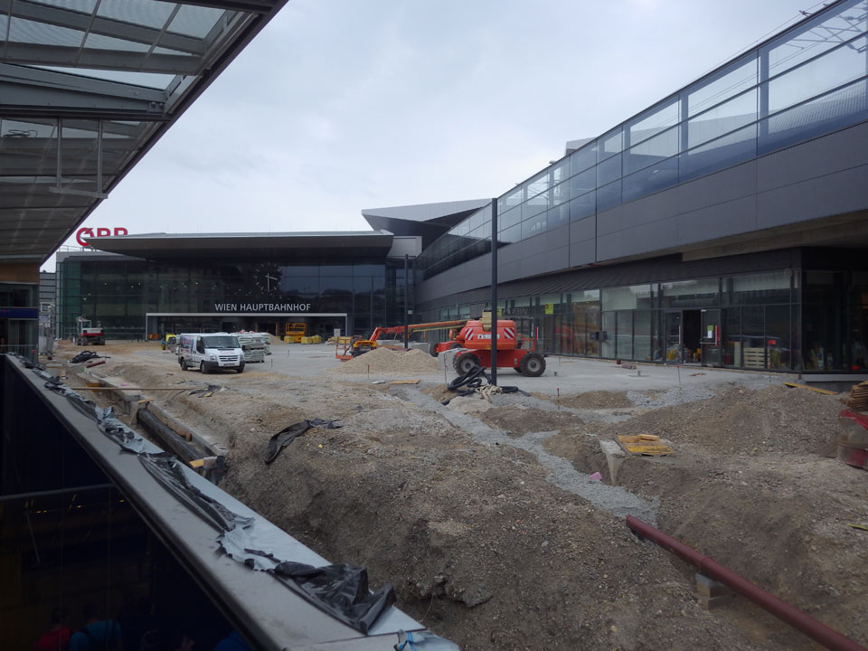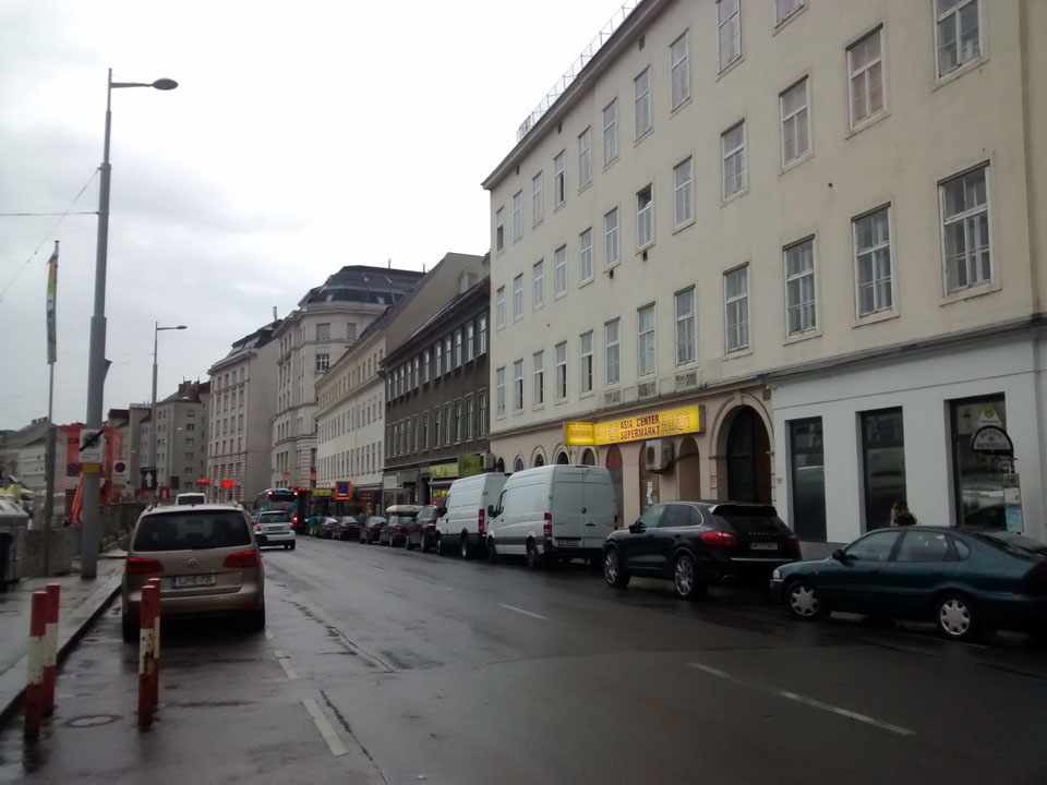 Das Ticket -hin und zurück- für um die €13. Ein Zug sollte starten, doch je näher 15:43 ohne Bahnsteig da stand, desto unriher wurde ich. So fragte ich nach, der Zug sei gecancellt. Na sowas. Über Internet fand ich eine andere Verbindung über ’nen Dorfbahnhof. Gegen 18:00 war ich dann endlich in Wien. Regen dort, ins Hostel am Naschmarkt fand ich aber ganz gut mit der U-Bahn und GPS.