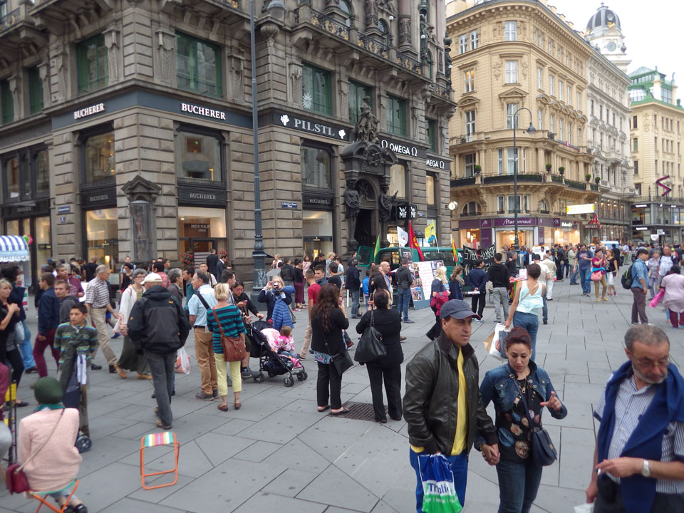 Wies ist massiv mit alten Häusern bebaut. Die Oper, Heldenplatz, Hofburg usw.- Ich erinnerte mich etwas an ein paar Sachen. So richtig wohl fühle ich mich hie nicht – ist eben alles etwas bieder. Zum Rumlaufen ging’s aber gut, Touristen gibt’s auch viele. Eine Weiner Bratwurst an der Opec, dann langsam wieder zurück – vorbei am Hotel Sacher. Eigentlich wollte ich mal wieder die Torte essen. Es standen nur zu viele Leute an.