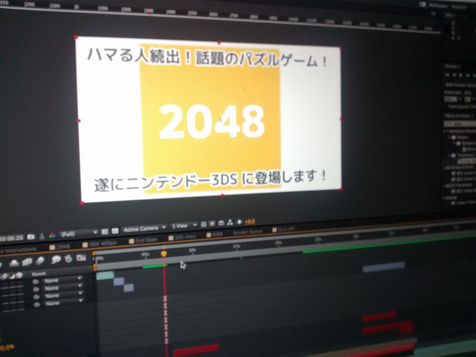 Es kam eine eMail mit Änderungswünschen von Nintendo Japan. Ich änderte die paar Texte ab und renderte den Trailer neu. Die einzig richtige Arbeit für heute. Bis nächste Woche habe ich Zeit, die 3DS Sachen zu beenden. Danach werde ich Web oder Unity machen. Soweit sind die Projekte schon mal sortiert.