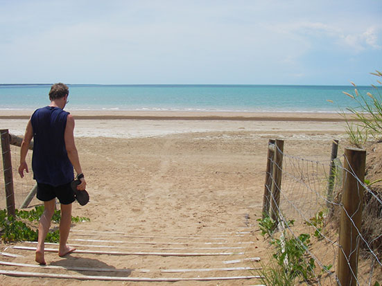 Wir wanderten in schönster Mittagshitze zu ein paar Beaches. Darwin hat einiges zu bieten. Jetzt zur Hochsommerzeit scheinen viele Gegenden wie ausgestorben. Der Box Jellyfish kann tödlich enden und schwimmt bevorzugt im Wasser. Damit sind die heißen Strände für keine Erfrischung gut.