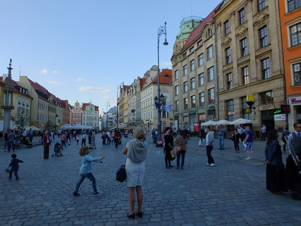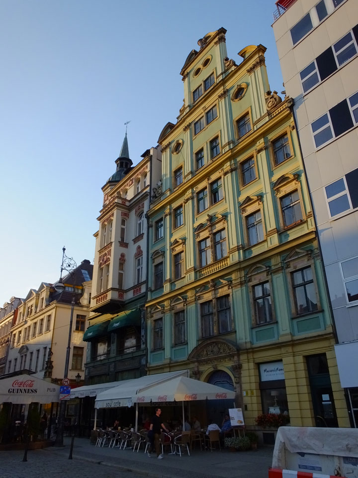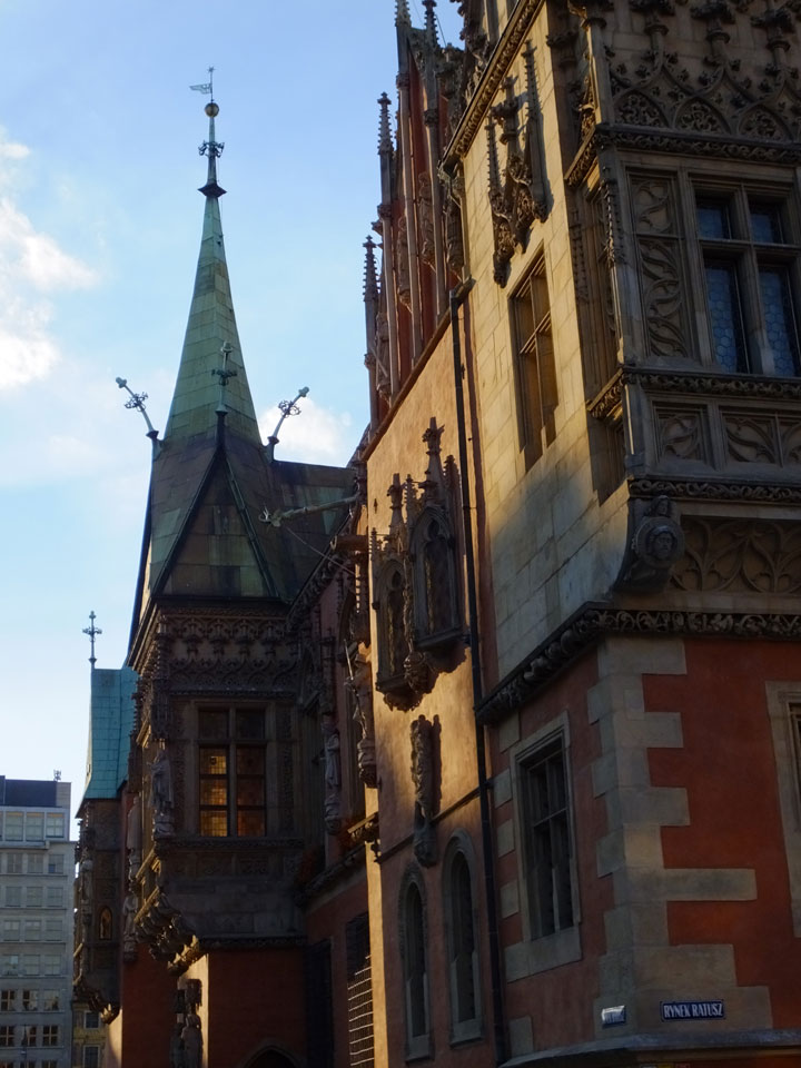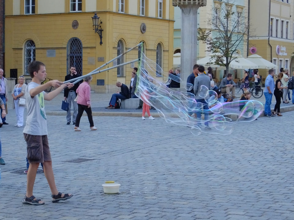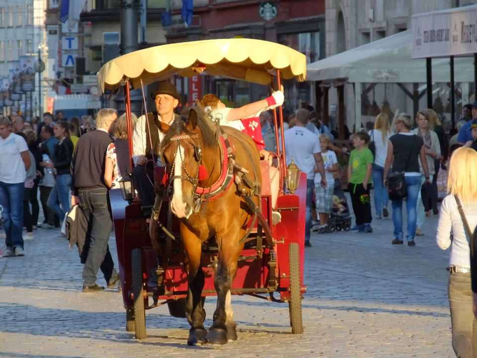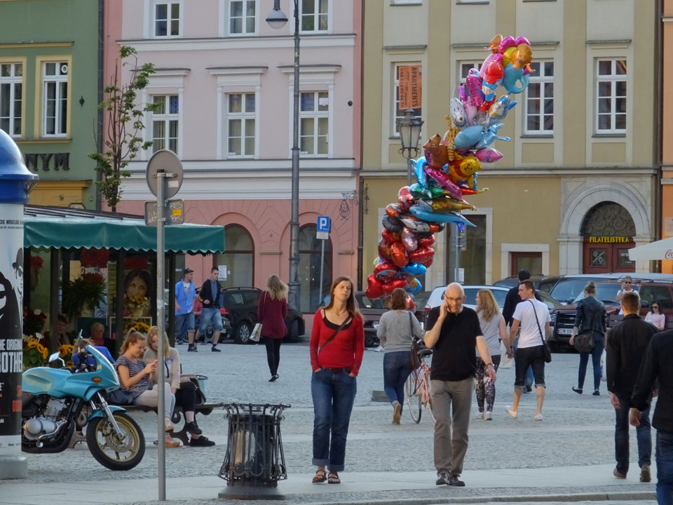Der EXR-Chip hat seine Eigenheiten aer die Fuji hat sogar Processing-Braketing und Dynamic-Range Braketing. Ich schoss einige Photos zum Testen. In Breslau gibt immer viel zu sehen. Mit den 1000mm und 6fps Continous denke ich, dass DR400, Astia, Soft -2, Tone -2, Color +2 und DR 400 die besten Ergebnisse macht – vielleicht auch DR200 für mehr Helligkeit. Am Ende entschied ich mich für DR200. Bei 400 werden nur die Highlights runtergedrückt, die Schatten bleiben bei beiden non-Standard Film-Simus stark dunkel. Kann man nichts machen. Auf Standard kriegt man die meisten Daten, hat dann aber eine Art Grauschleier drüber, wenn auch mit den meisten Schatten-Details. Der Schleier verschwindet mit Astia, auch wenn diese Film-Simulation ein paar Probleme mit fettem Kontrast hat.