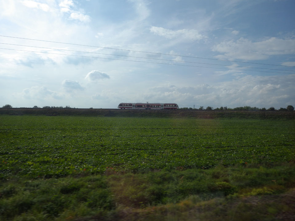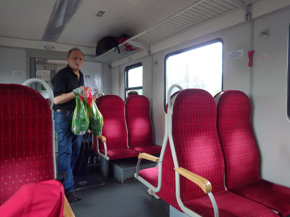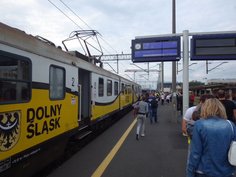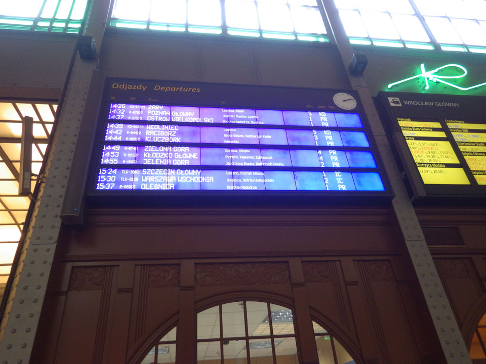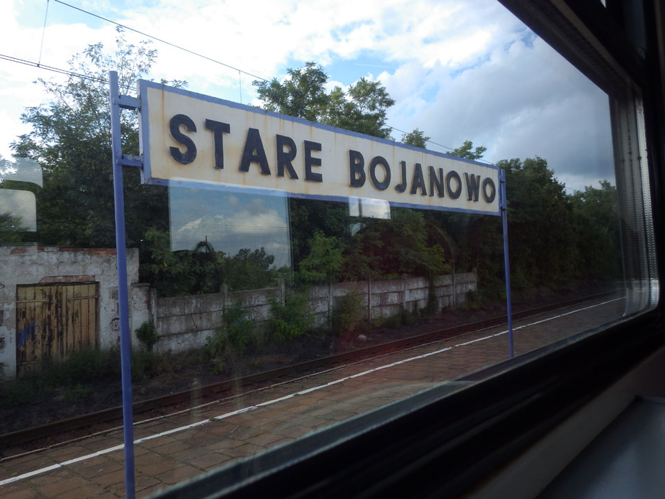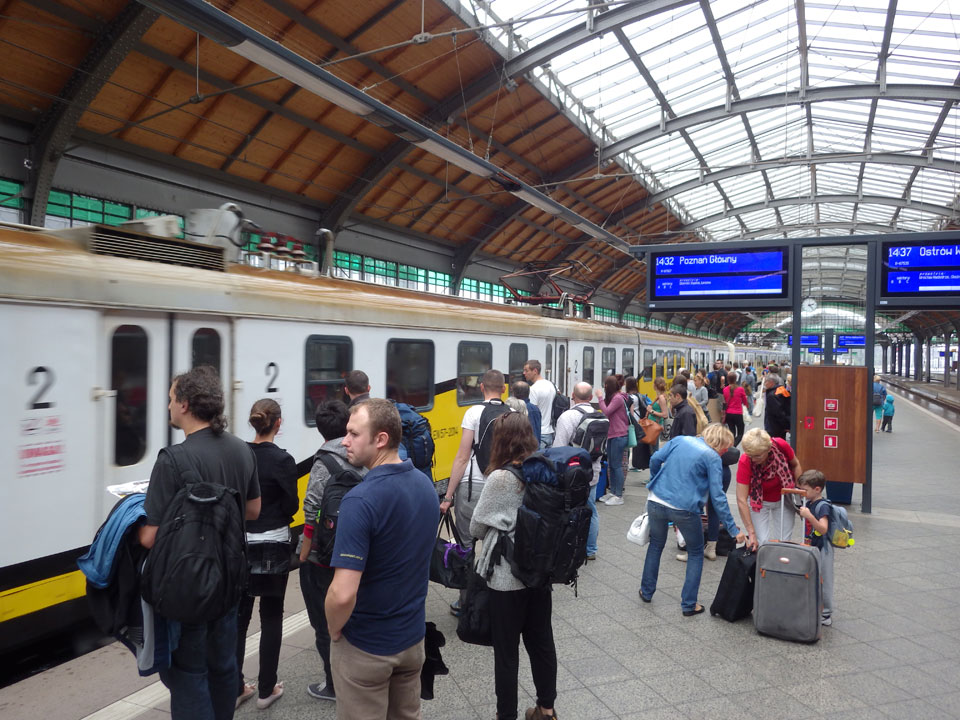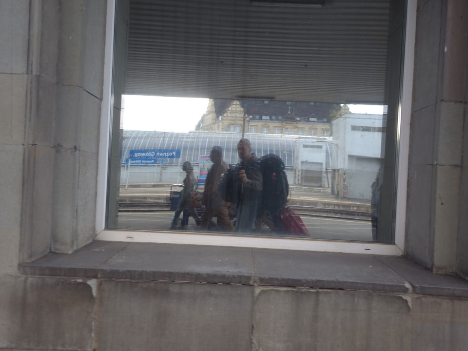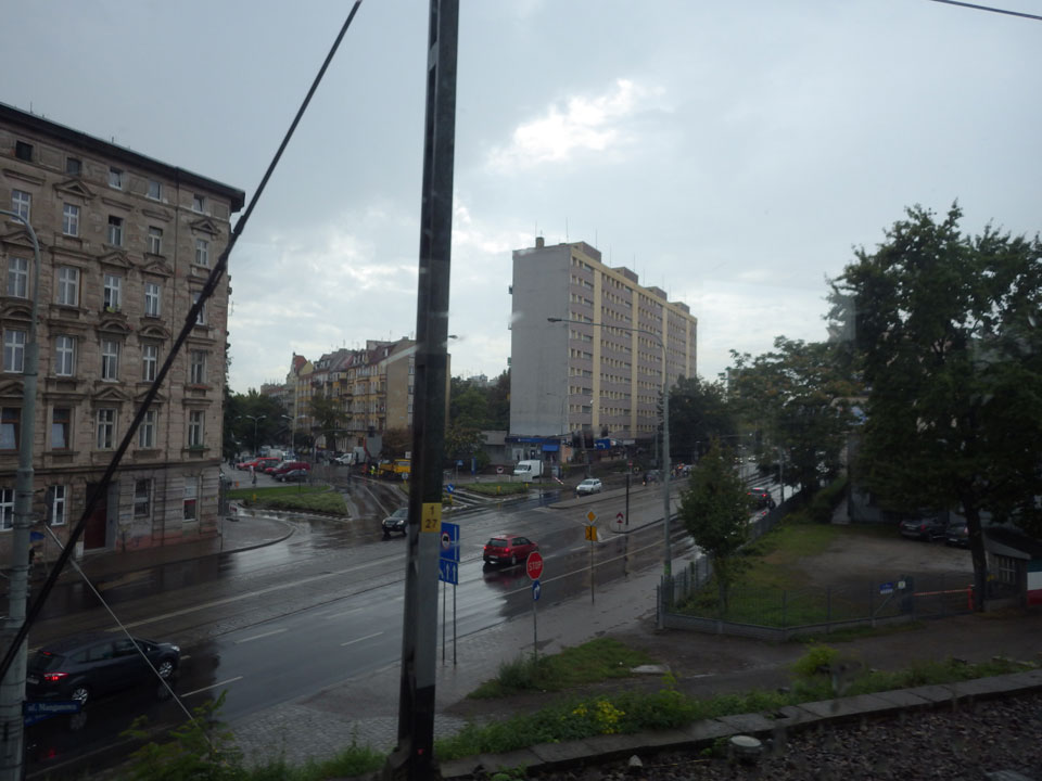 Ich wollte dann 14:32 mit dem Regionalzug nach Poznan fahren – 3:10h Fahrt. Es regnete und ich huschte in’s erstbeste und einzige Taxi (10,30 -> 13 PLN). Dann echter Platzregen am Bahnhof, die paar Meter wurde ich echt heftig nass. Ich kaufte das Ticket und der Zug kam auch gleich. Es klappte super.