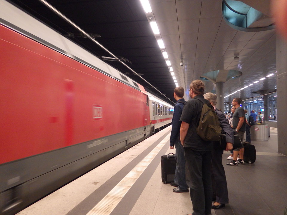 Bissel zu wirbeln nach 5, damit ich gegen 6 dann auf dem Weg zum Bahnhof war. Hatte genügend Zeit, 1. Klasse im IC nach Berlin. Dieses Mal sah ich keinen Unterschied zu 2. Klasse. Das Abteil war dann auch mit 5 von 6 Plätzen voll – 1 Pole, 3 junge Amerikaner.