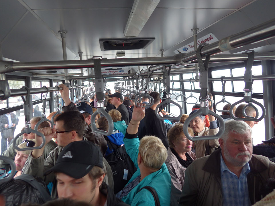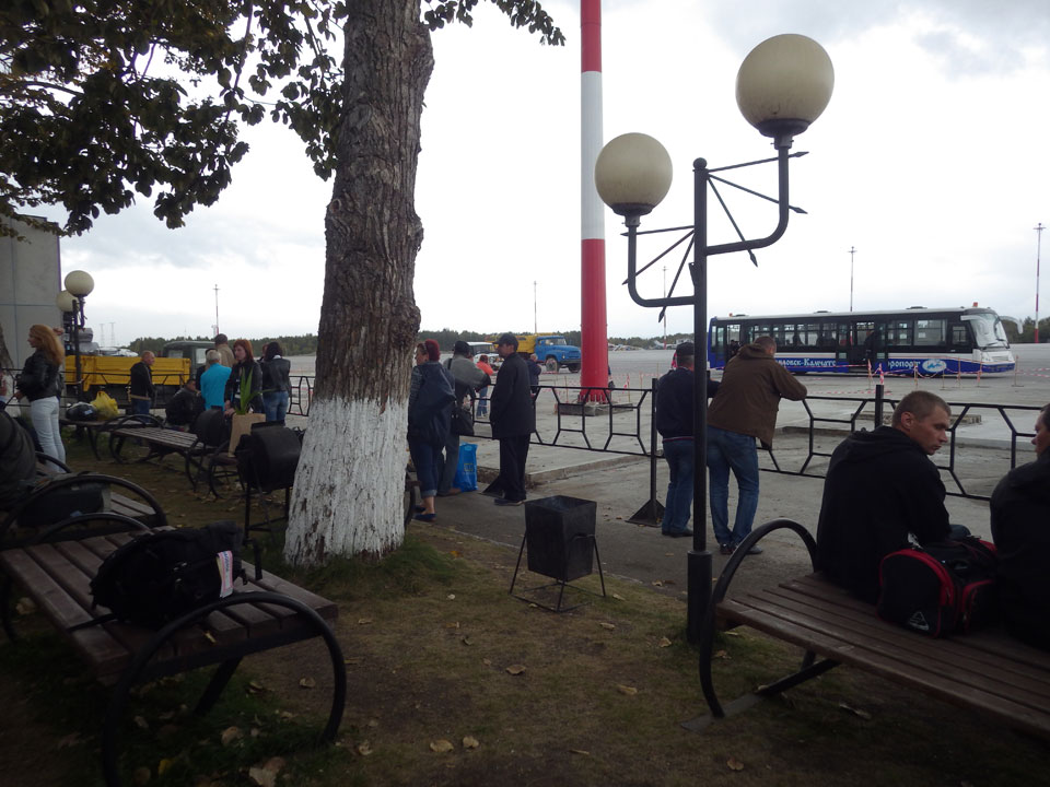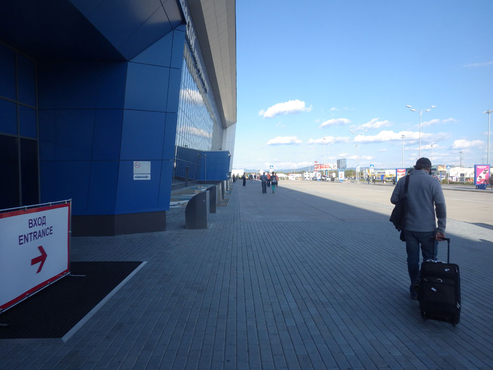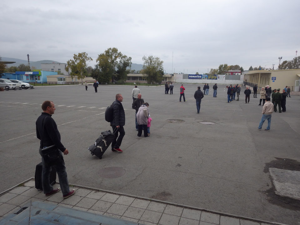Wir checkten ein. Der einzige, der keinen neune Haarschnitt bekam, war ein Amerikaner, der von einer Russin die Telefonnumer zugesteckt bekam. Der Flug ging los. Ein paar Turbulenzen gab’s auch – alles ging gut und wir applaudierten als einzige. Normalerweise sind die Russen applaudierfreudiger aber das hier war kein Urlaubsflug.