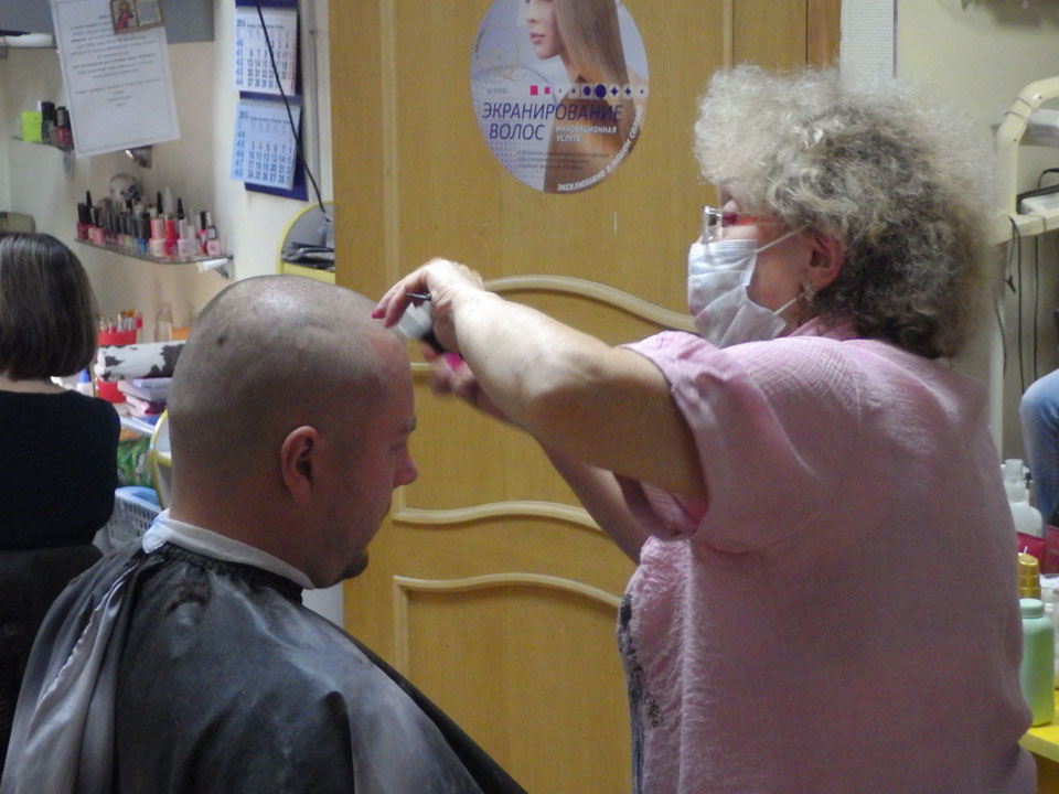 Er bekam ’ne Vokuhila, was einige Zeit dauerte. Danach der Finne mit einem Update und ich ließ mir auch die Haare lustig schneiden – Mohawk. Da musste ich schon oft lachen, wie das aussah. Für 400 Rubel mal was neues. Danach ging’s zum Imbiss in eine Kantine und so war die ganze Zeit schon ‚rum.