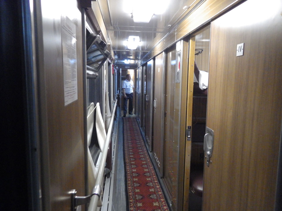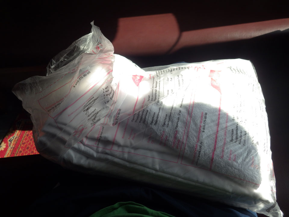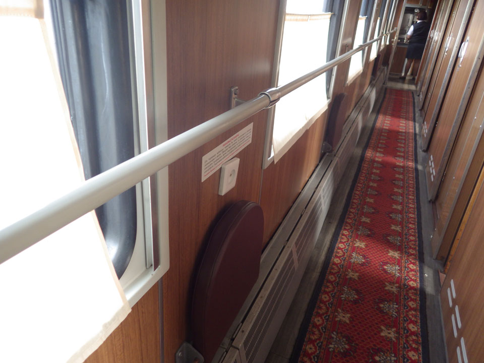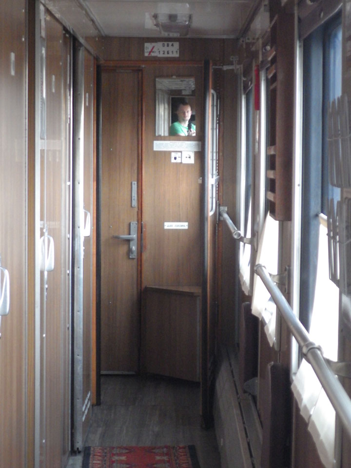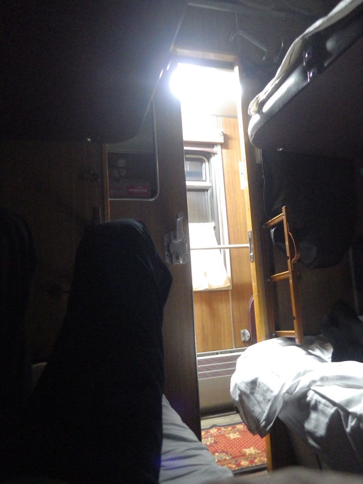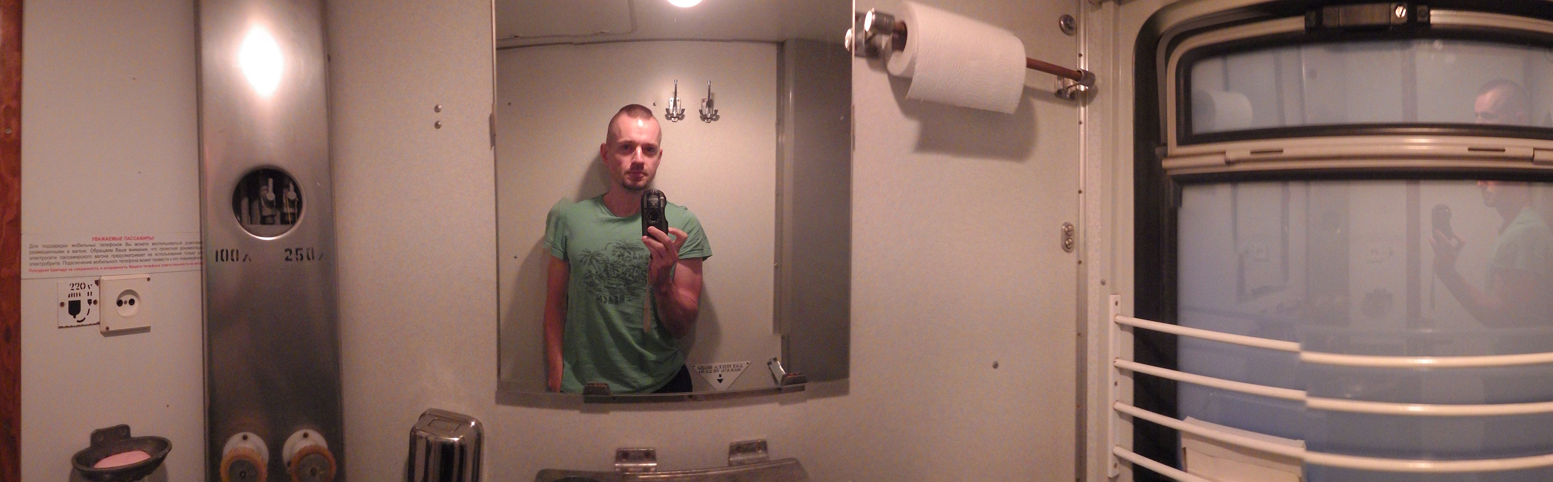 Natürlich war ich knülle aber auch gut gelaunt. Mein Zug auf der berühmte Trans-Sibierische Eisenbahn startete um 11:02 (4:02 Moscauer Zeit). Am Wagon wurde ich schon begrüßt, man kannte schon meinen Namen. Das Papierticket brauchte ich nicht mal. Guter Platz, Nummer 23, wobei die Steckdose entweder am Toiletten-Ende ist – oder zwei Abteile weiter vorn.
