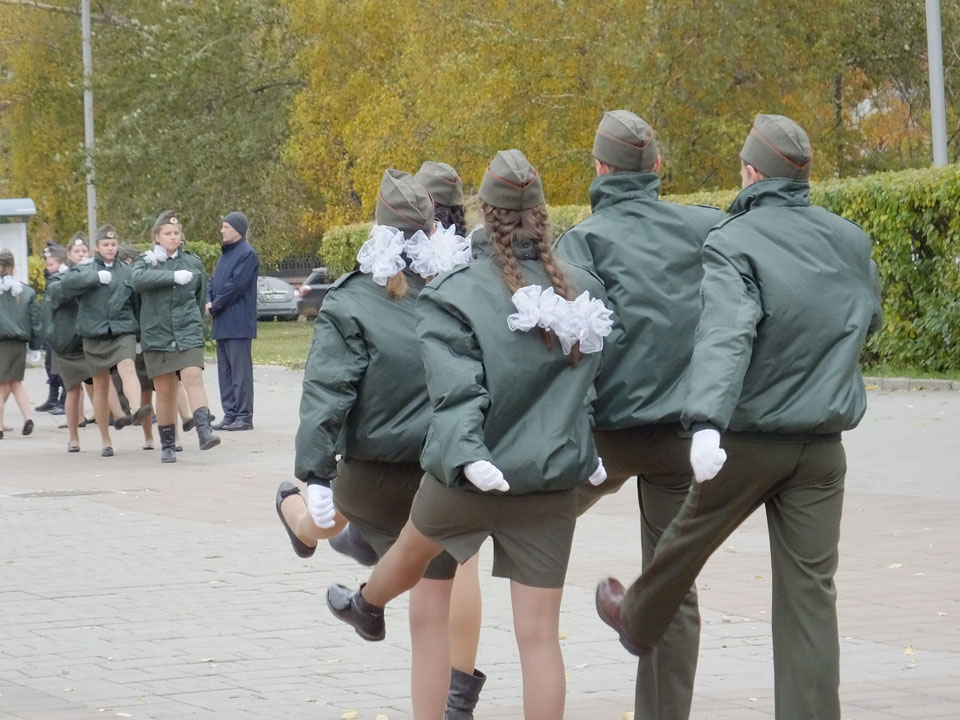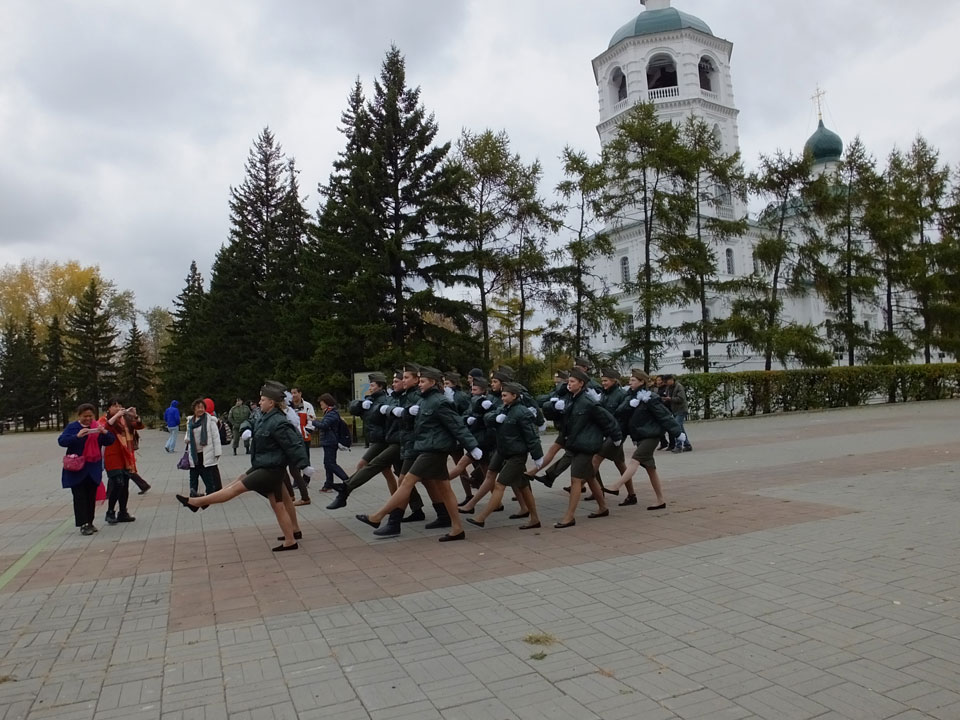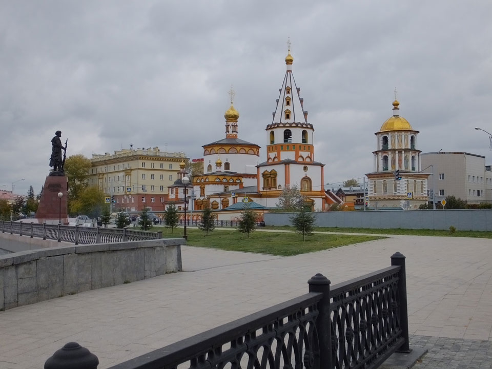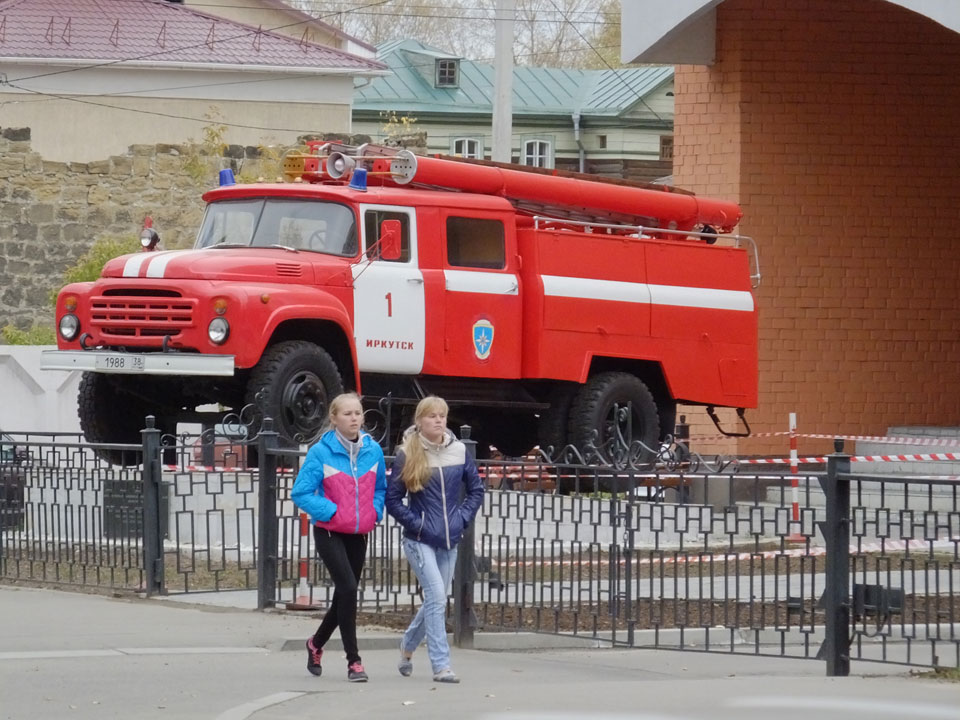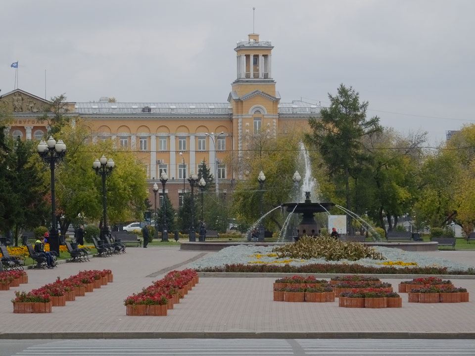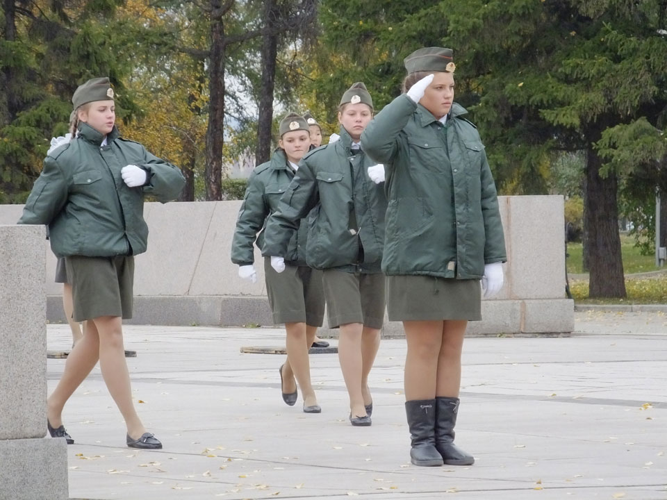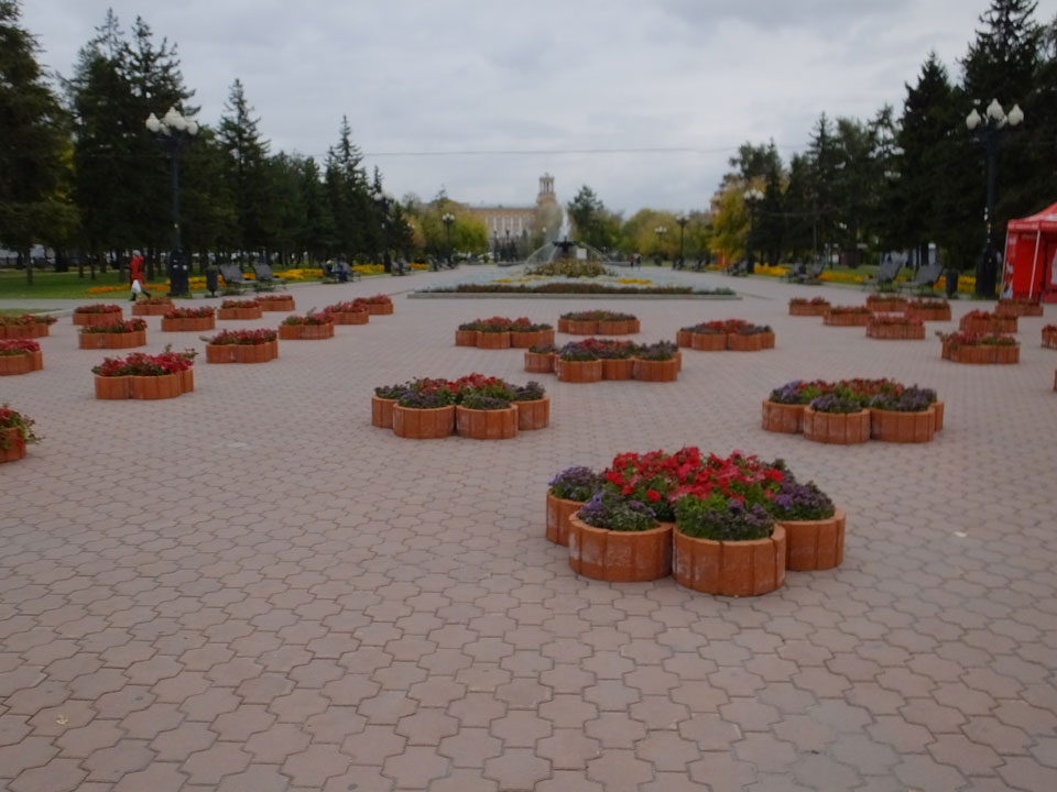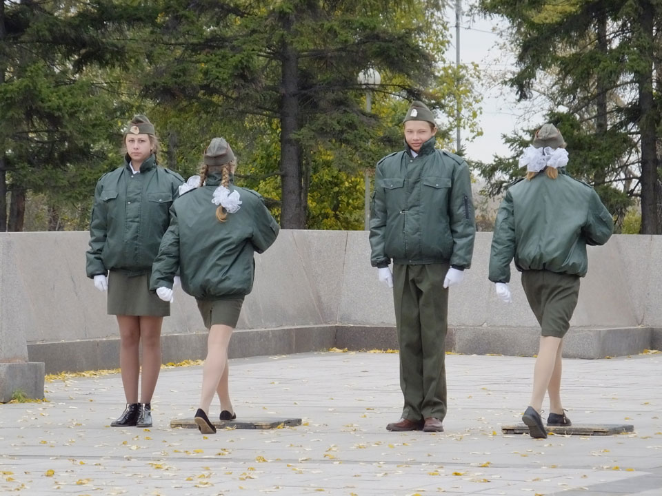Nachmittags dann raus in’s heute graue Irkutsk. Gestern noch im T-Shirt in strahlender Sonne, heute bitterlich kalt. Ich stieg in Irkutsk umher, ging bis an den Fluss und sah so eine Art Mahnwach-Ablösung von jungen Mädels. Bedeckter Himmel und Herbstwetter machten den Stadtrundgang nicht gerade zum Vergnügen. Bei dem Wetter hatte ich auch keine Lust runter zum See zu fahren. Dauert eben auch komplett 2-3 Stunden.