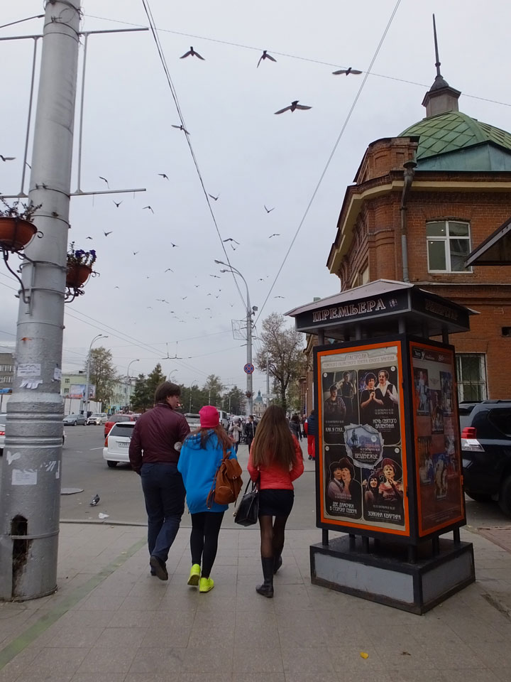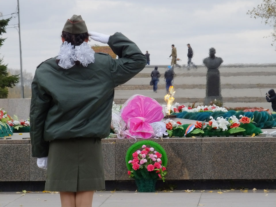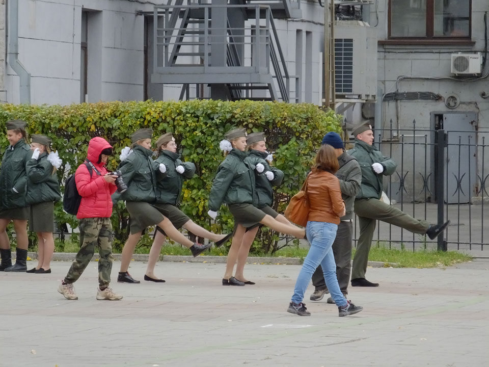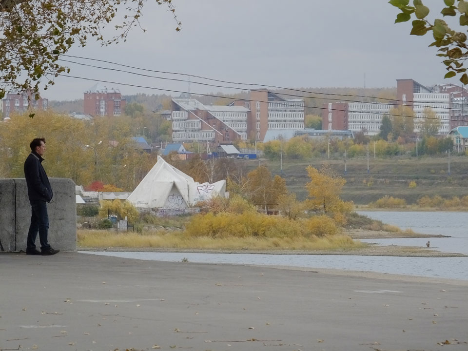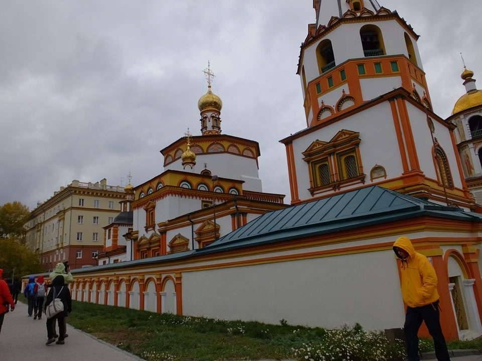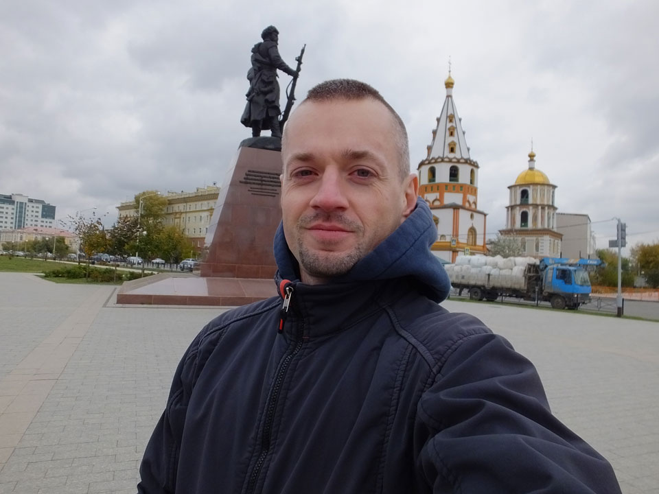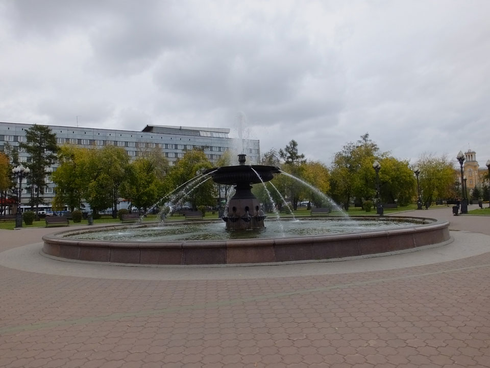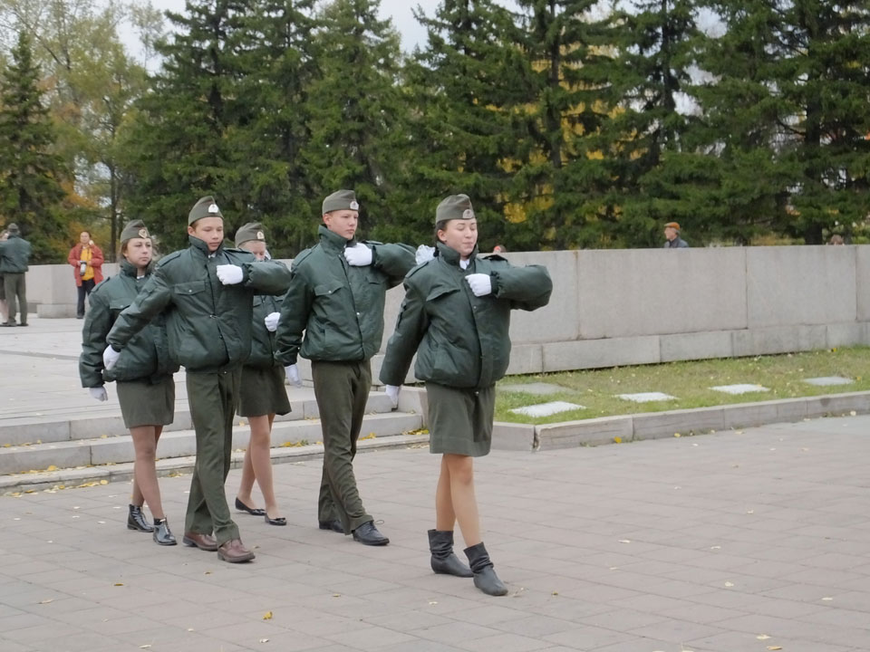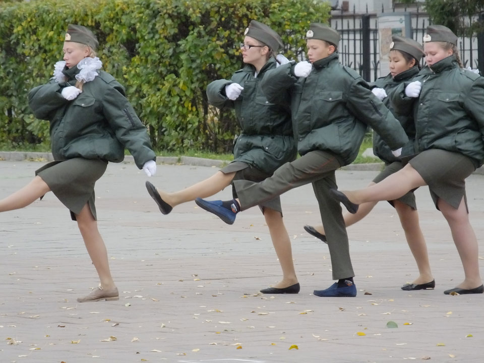 Nachmittags dann raus in’s heute graue Irkutsk. Gestern noch im T-Shirt in strahlender Sonne, heute bitterlich kalt. Ich stieg in Irkutsk umher, ging bis an den Fluss und sah so eine Art Mahnwach-Ablösung von jungen Mädels. Bedeckter Himmel und Herbstwetter machten den Stadtrundgang nicht gerade zum Vergnügen. Bei dem Wetter hatte ich auch keine Lust runter zum See zu fahren. Dauert eben auch komplett 2-3 Stunden.