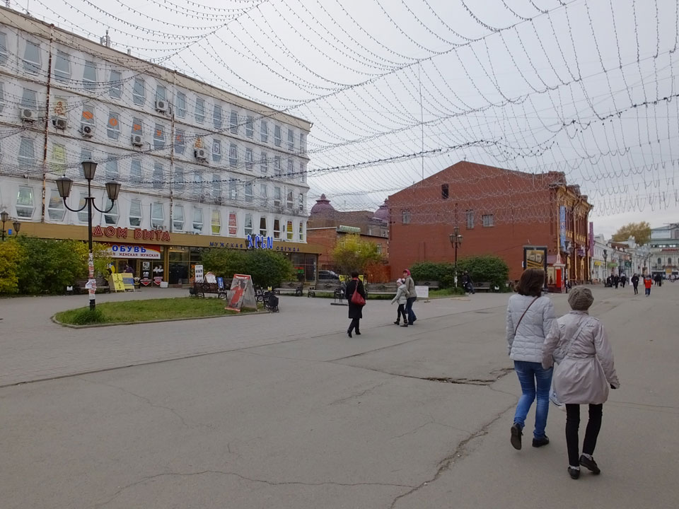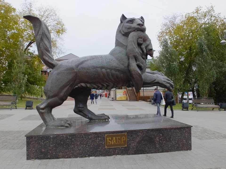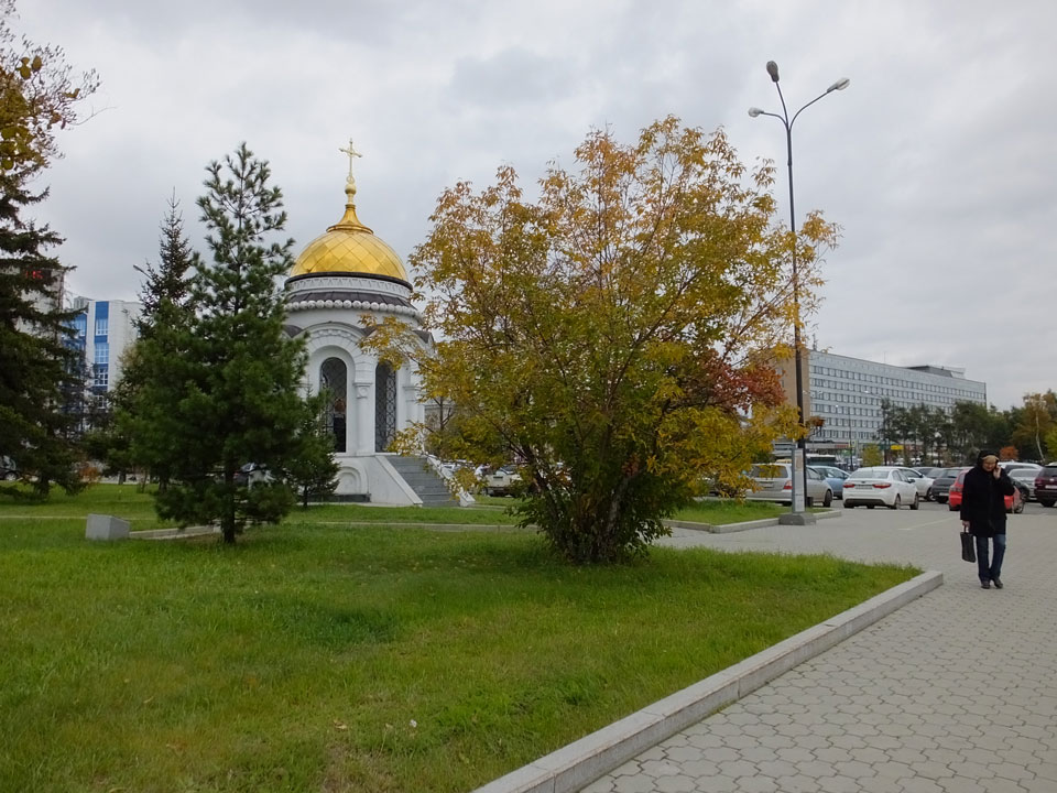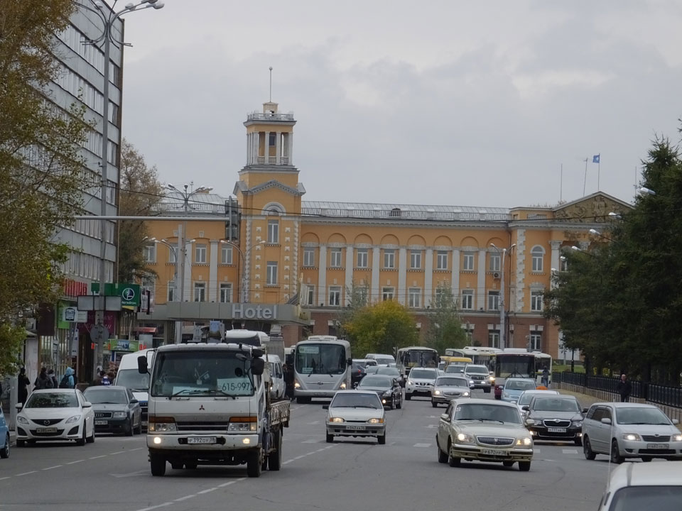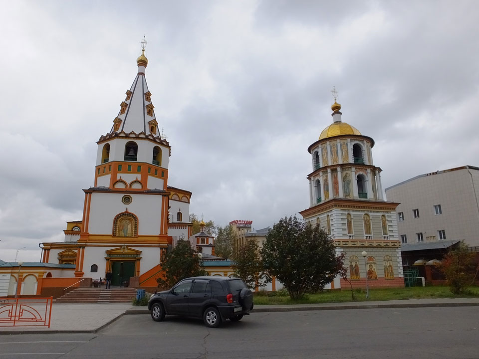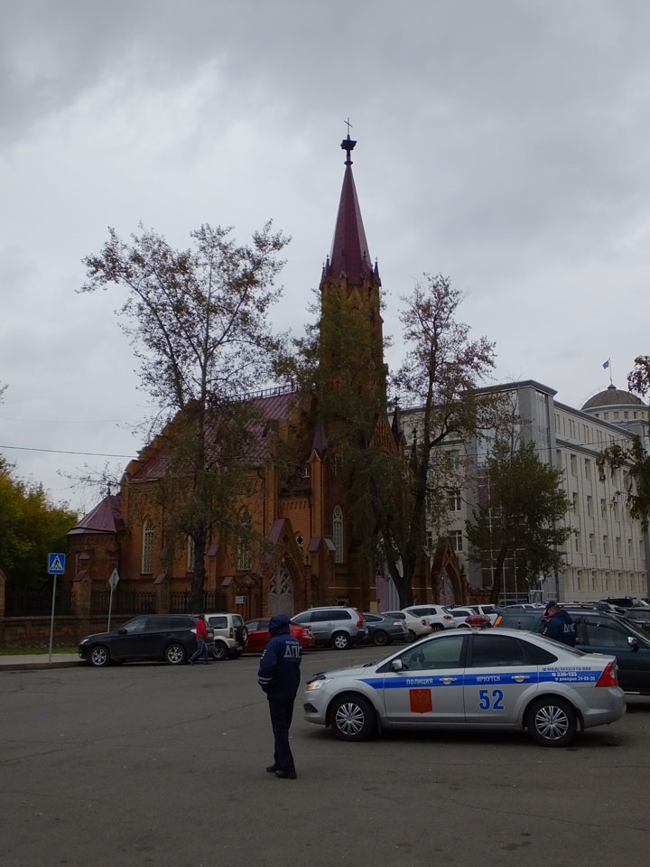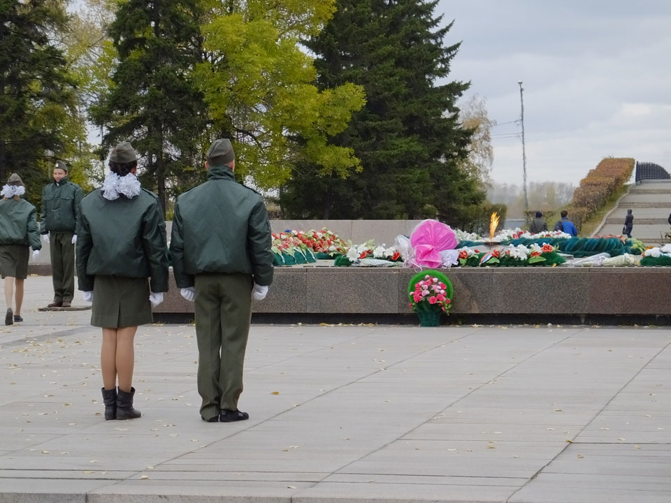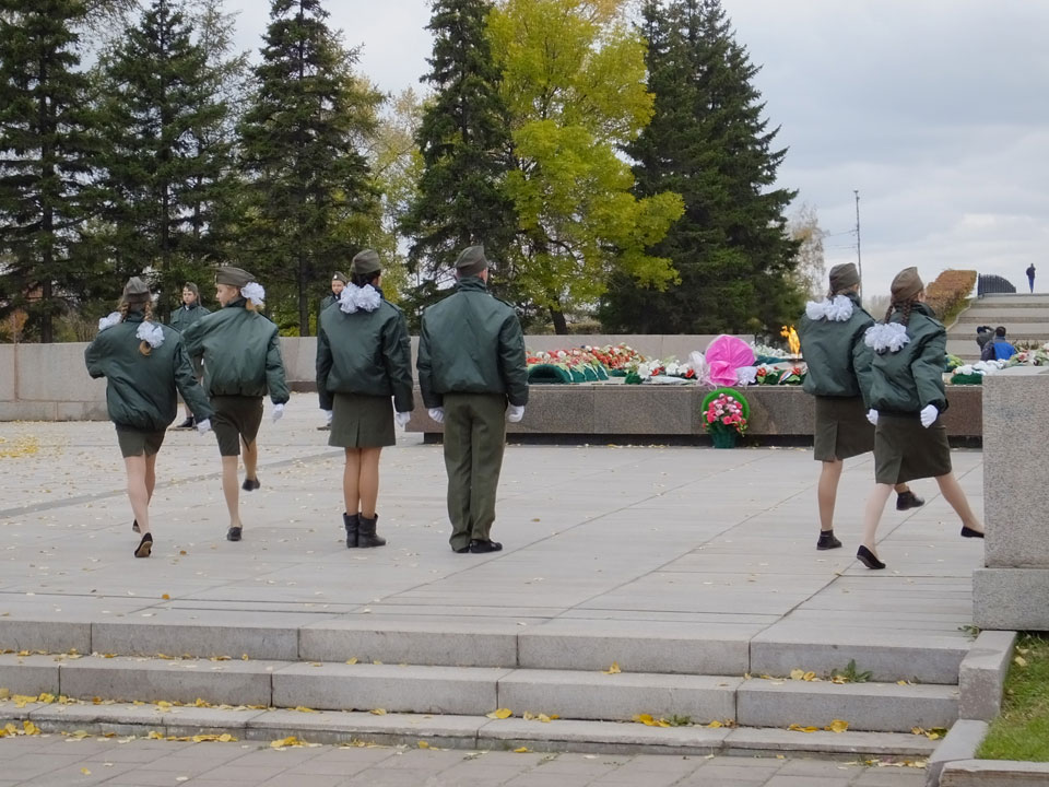 Nachmittags dann raus in’s heute graue Irkutsk. Gestern noch im T-Shirt in strahlender Sonne, heute bitterlich kalt. Ich stieg in Irkutsk umher, ging bis an den Fluss und sah so eine Art Mahnwach-Ablösung von jungen Mädels. Bedeckter Himmel und Herbstwetter machten den Stadtrundgang nicht gerade zum Vergnügen. Bei dem Wetter hatte ich auch keine Lust runter zum See zu fahren. Dauert eben auch komplett 2-3 Stunden.