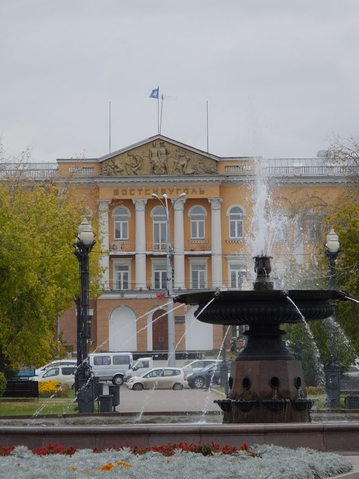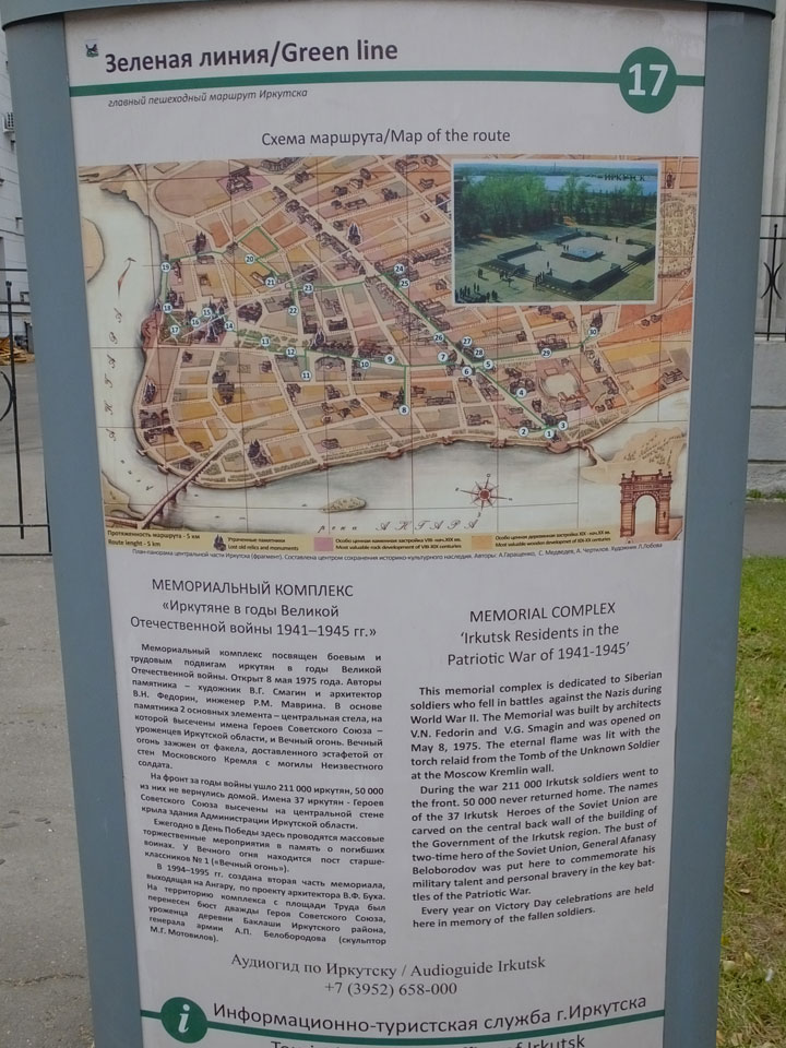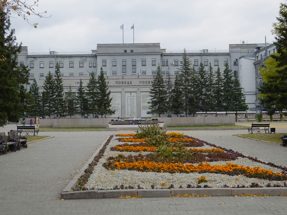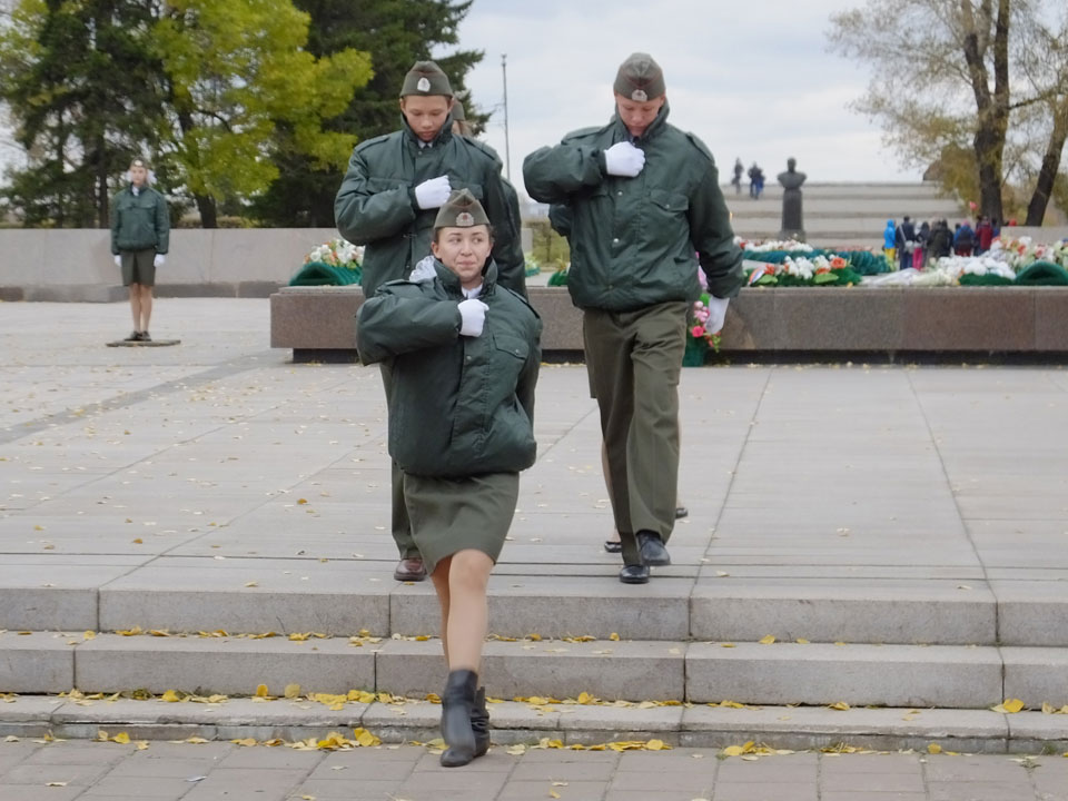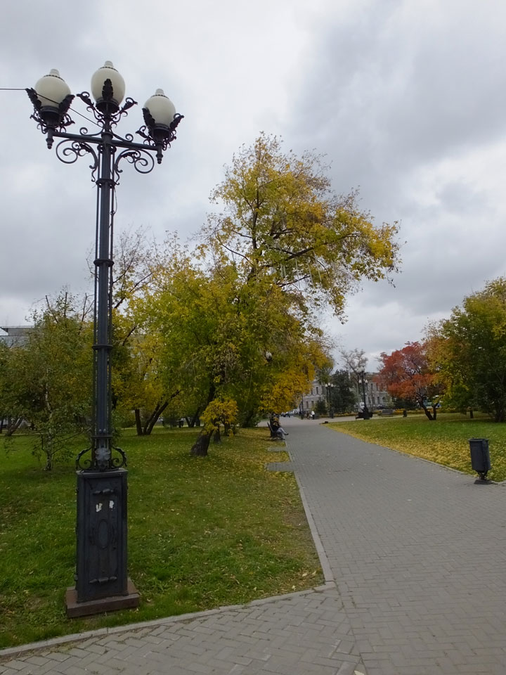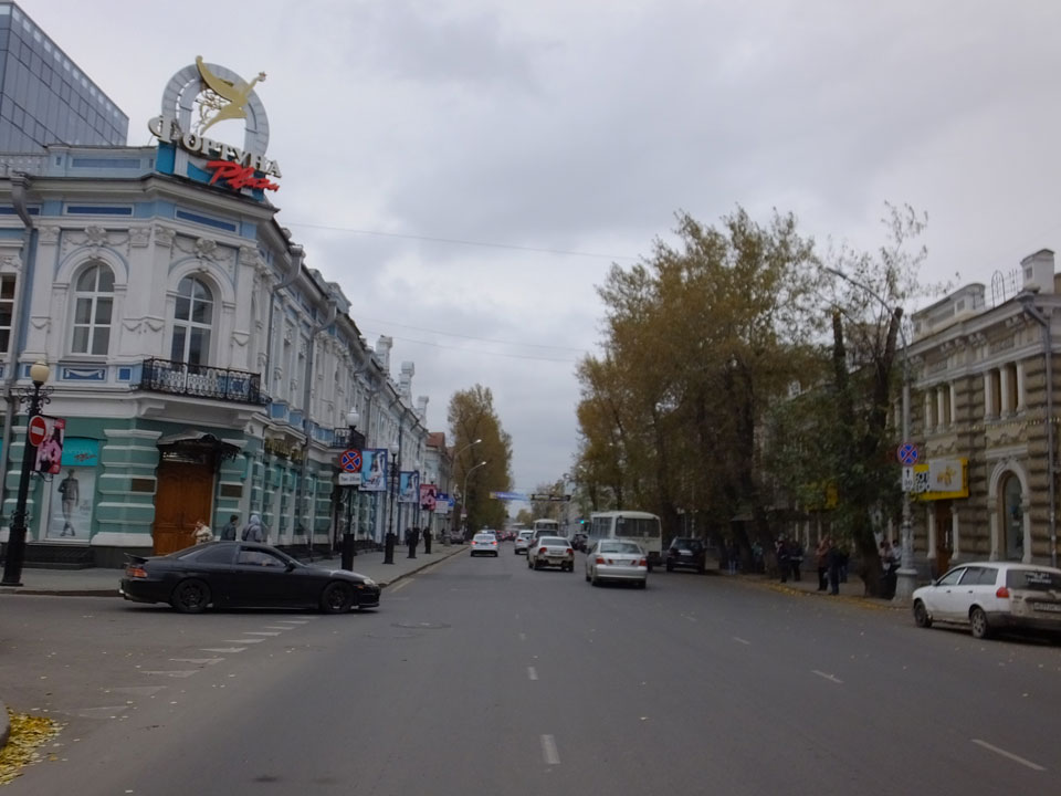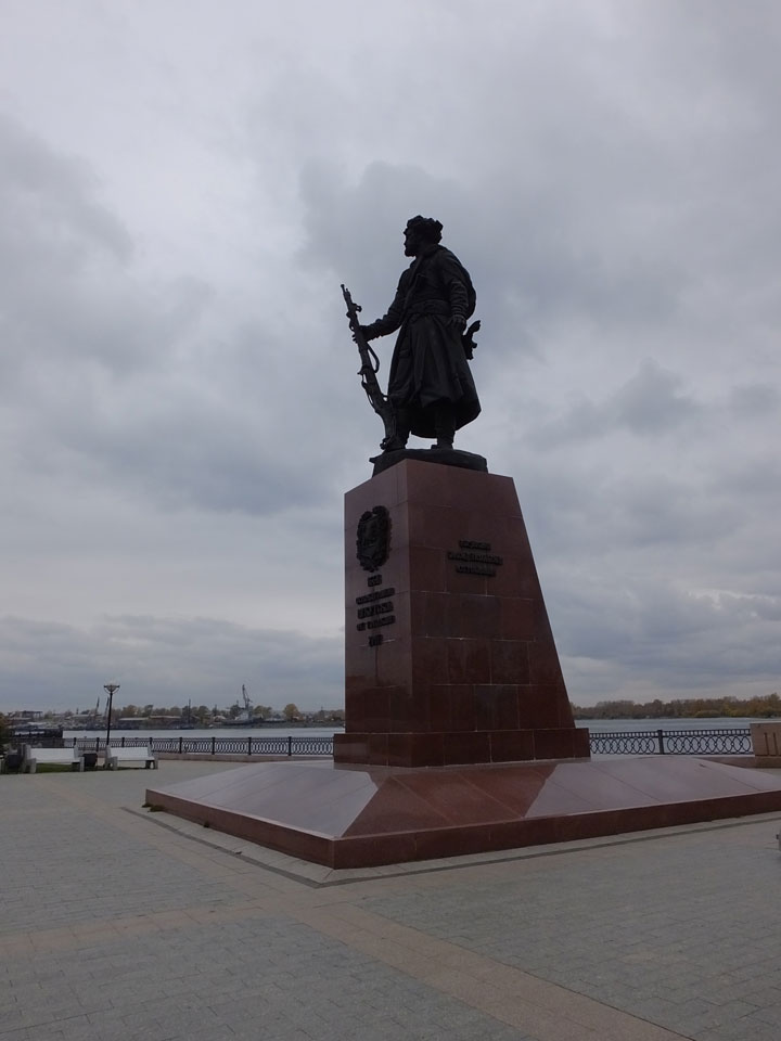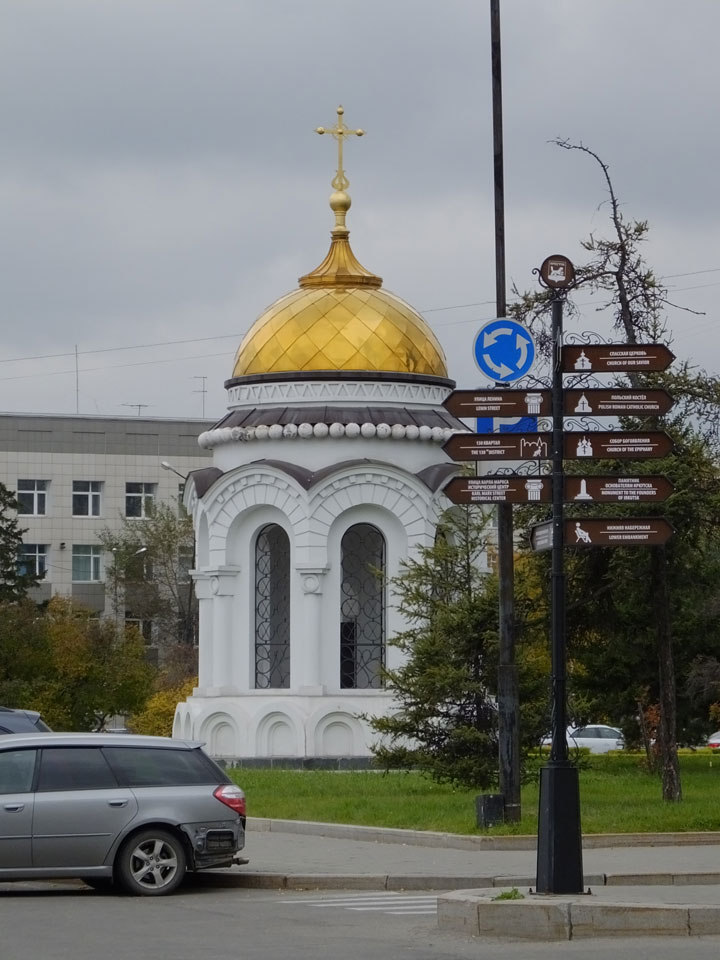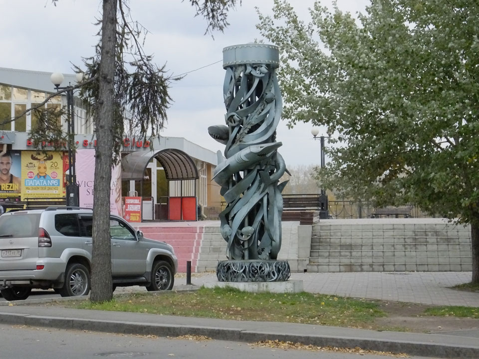 Nachmittags dann raus in’s heute graue Irkutsk. Gestern noch im T-Shirt in strahlender Sonne, heute bitterlich kalt. Ich stieg in Irkutsk umher, ging bis an den Fluss und sah so eine Art Mahnwach-Ablösung von jungen Mädels. Bedeckter Himmel und Herbstwetter machten den Stadtrundgang nicht gerade zum Vergnügen. Bei dem Wetter hatte ich auch keine Lust runter zum See zu fahren. Dauert eben auch komplett 2-3 Stunden.