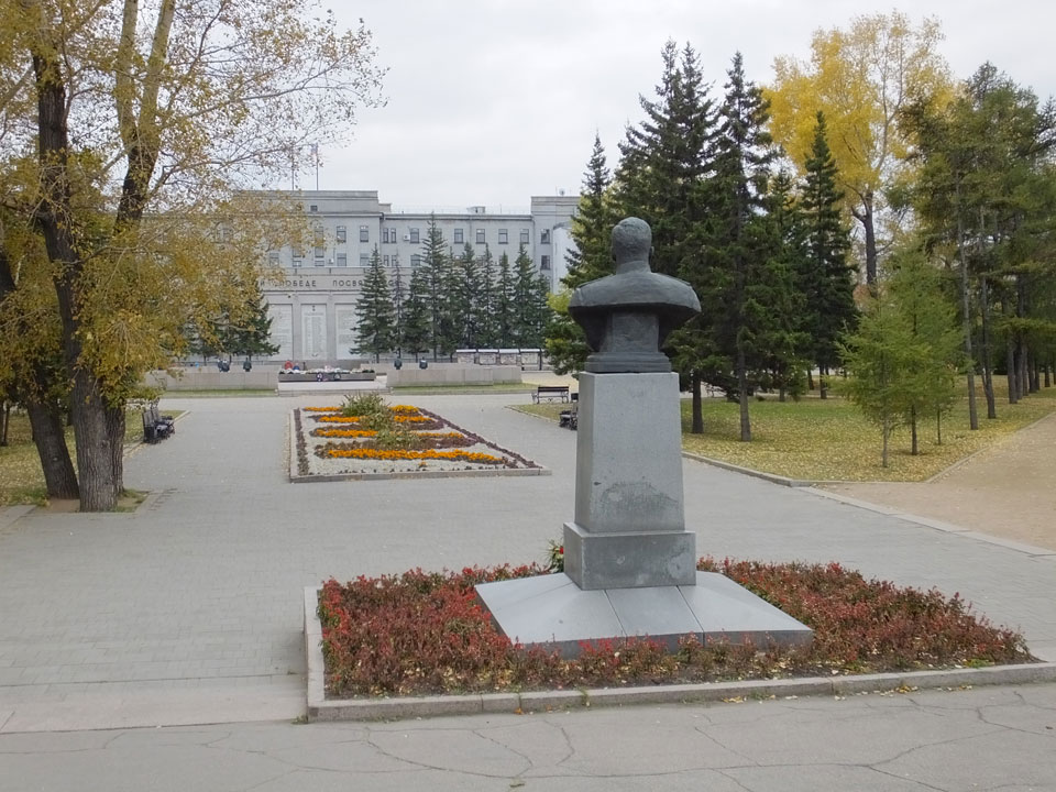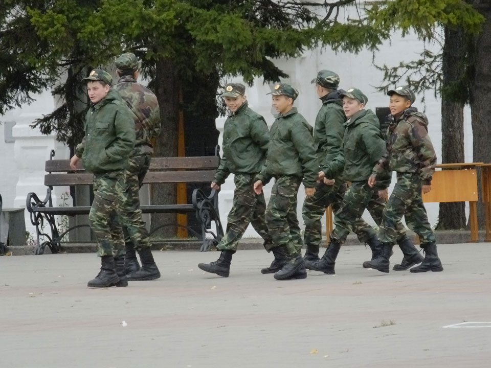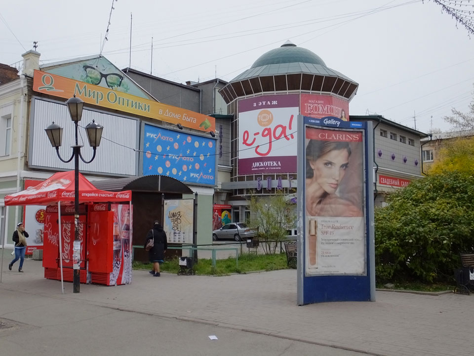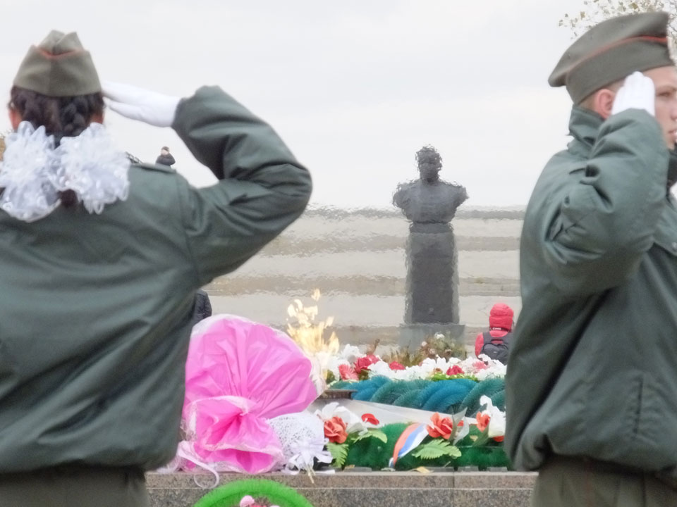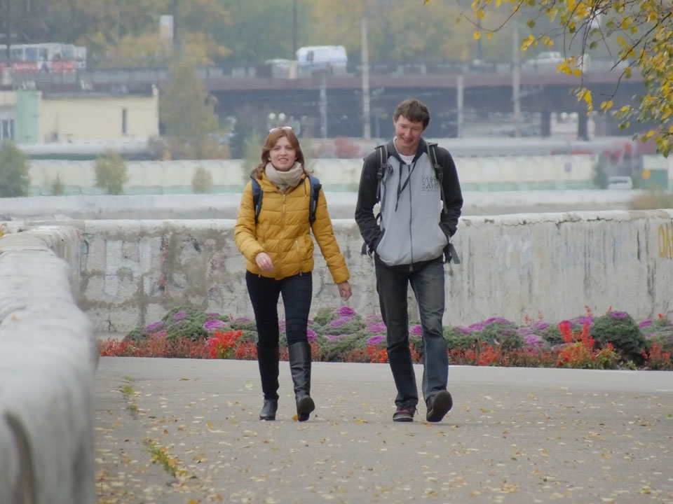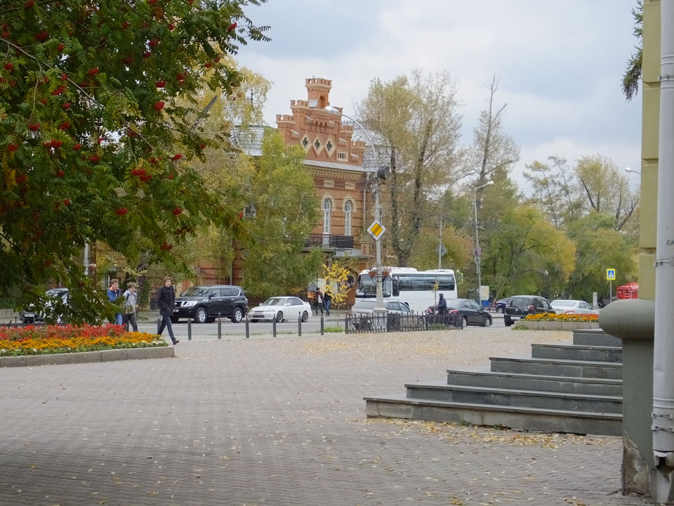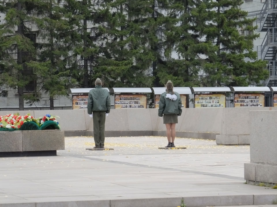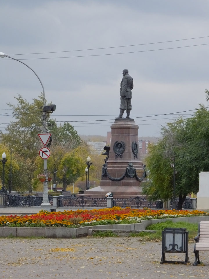 Nachmittags dann raus in’s heute graue Irkutsk. Gestern noch im T-Shirt in strahlender Sonne, heute bitterlich kalt. Ich stieg in Irkutsk umher, ging bis an den Fluss und sah so eine Art Mahnwach-Ablösung von jungen Mädels. Bedeckter Himmel und Herbstwetter machten den Stadtrundgang nicht gerade zum Vergnügen. Bei dem Wetter hatte ich auch keine Lust runter zum See zu fahren. Dauert eben auch komplett 2-3 Stunden.