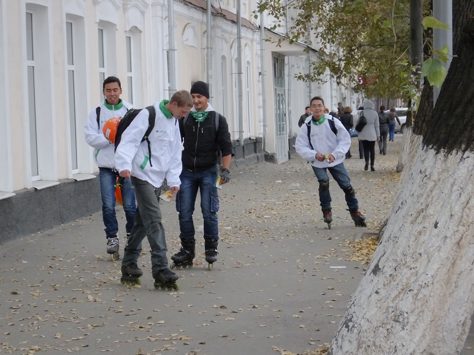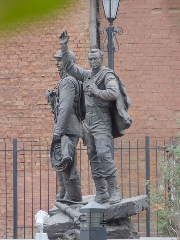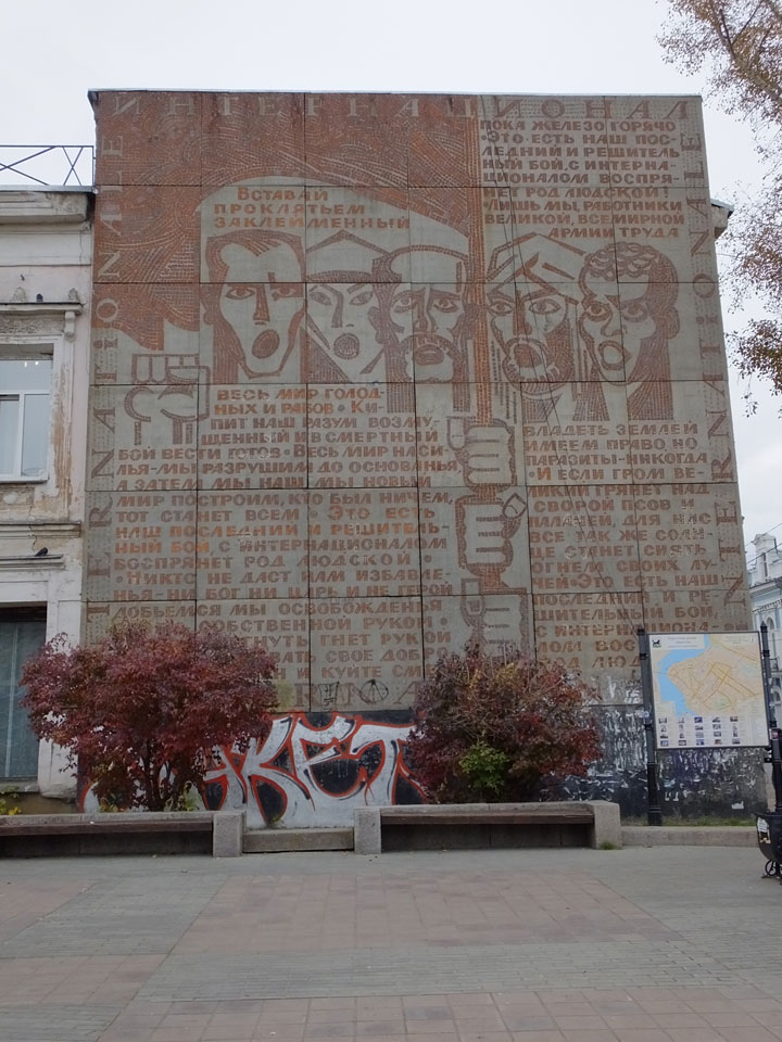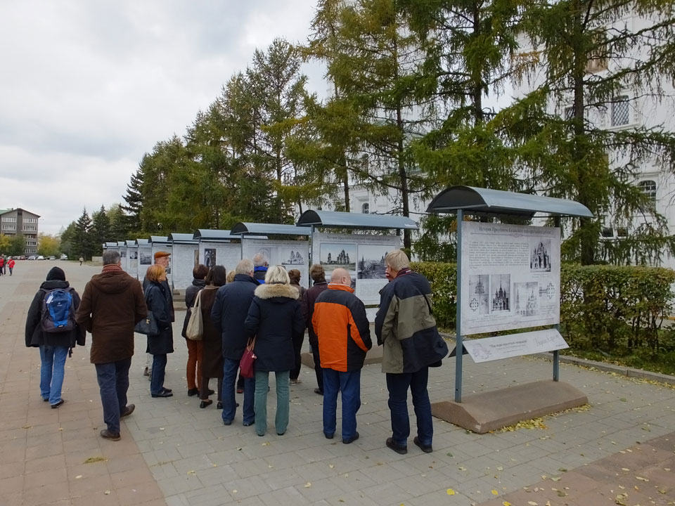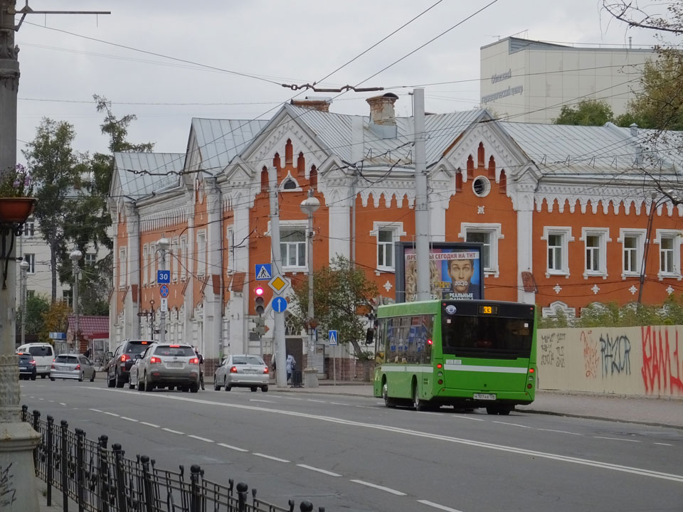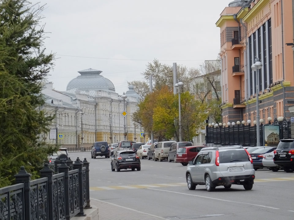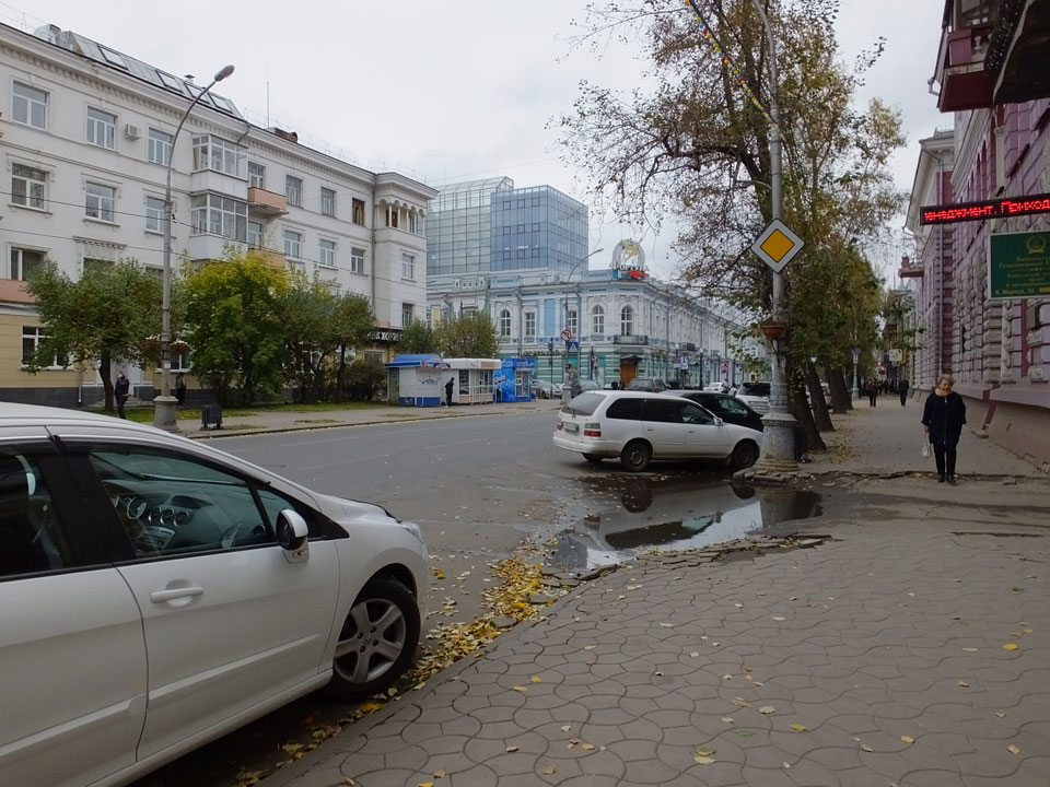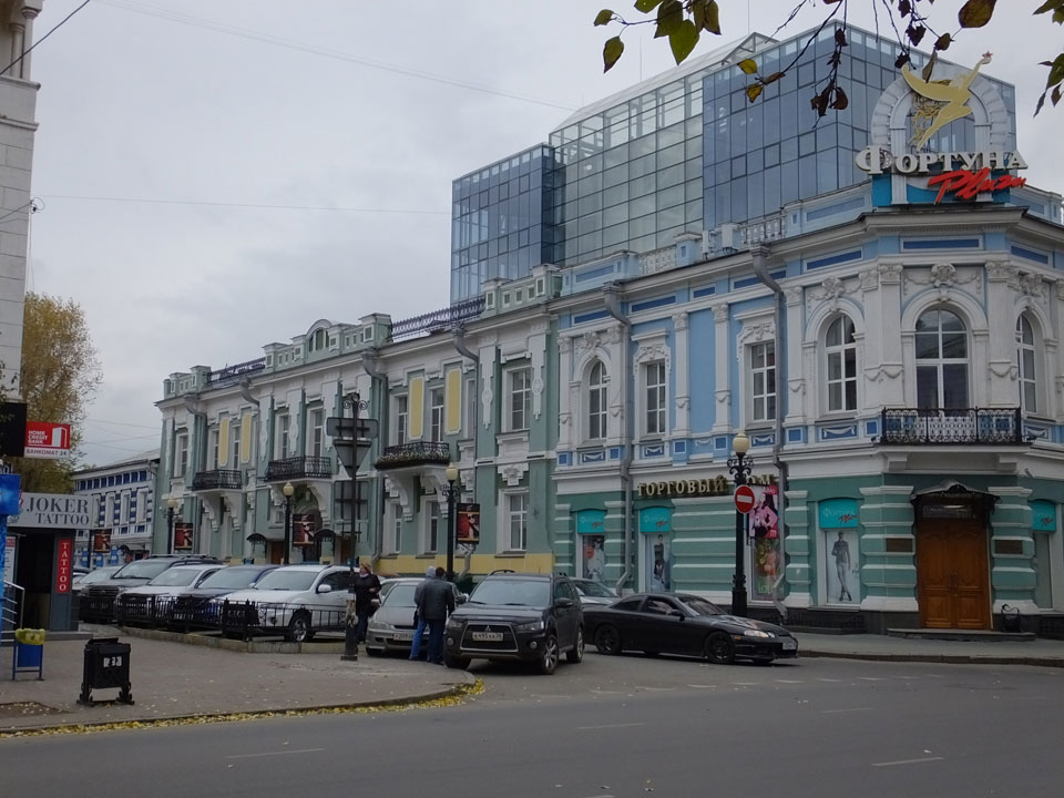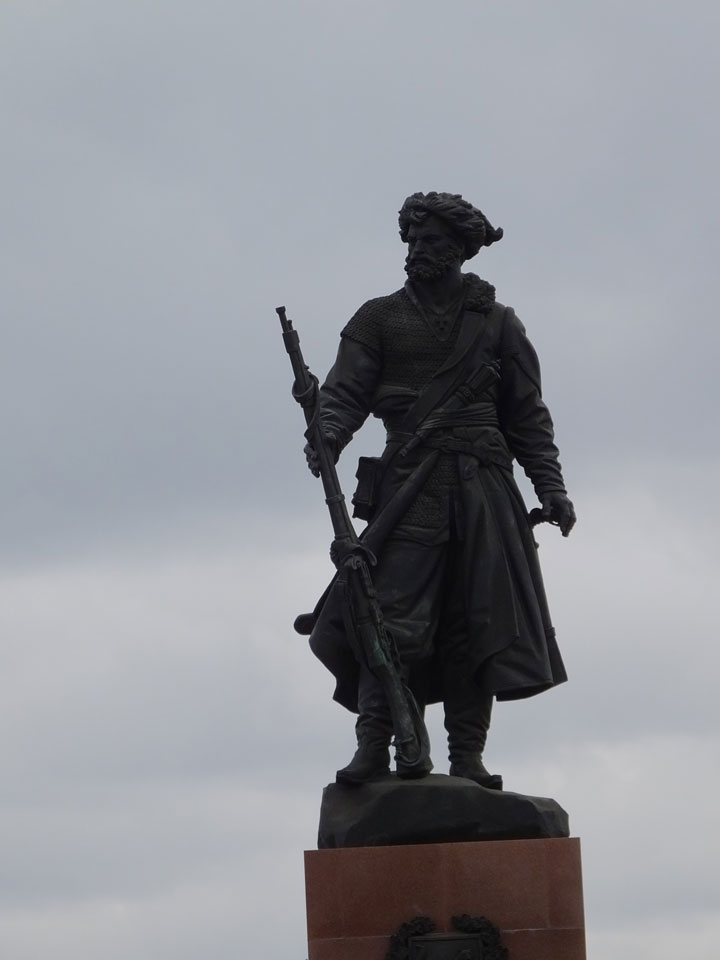 Nachmittags dann raus in’s heute graue Irkutsk. Gestern noch im T-Shirt in strahlender Sonne, heute bitterlich kalt. Ich stieg in Irkutsk umher, ging bis an den Fluss und sah so eine Art Mahnwach-Ablösung von jungen Mädels. Bedeckter Himmel und Herbstwetter machten den Stadtrundgang nicht gerade zum Vergnügen. Bei dem Wetter hatte ich auch keine Lust runter zum See zu fahren. Dauert eben auch komplett 2-3 Stunden.